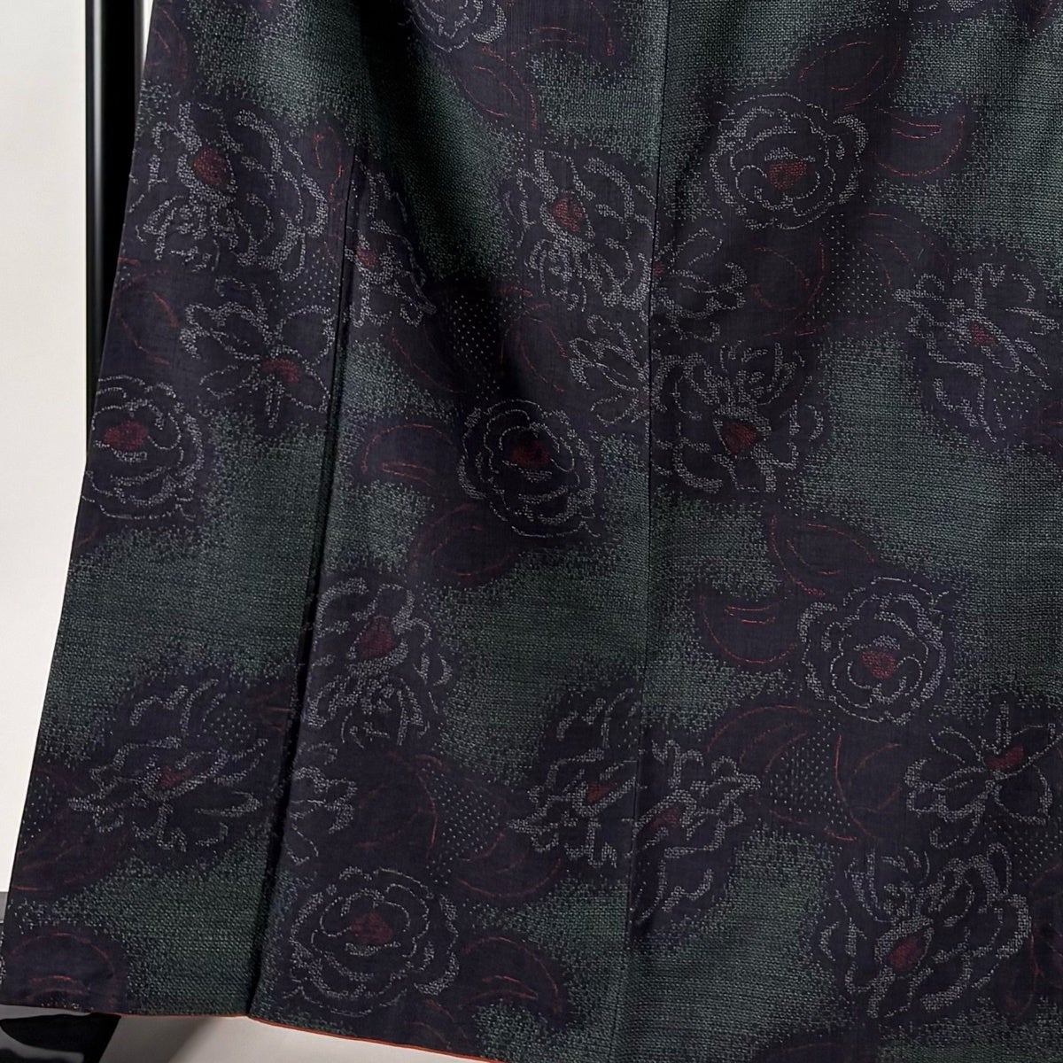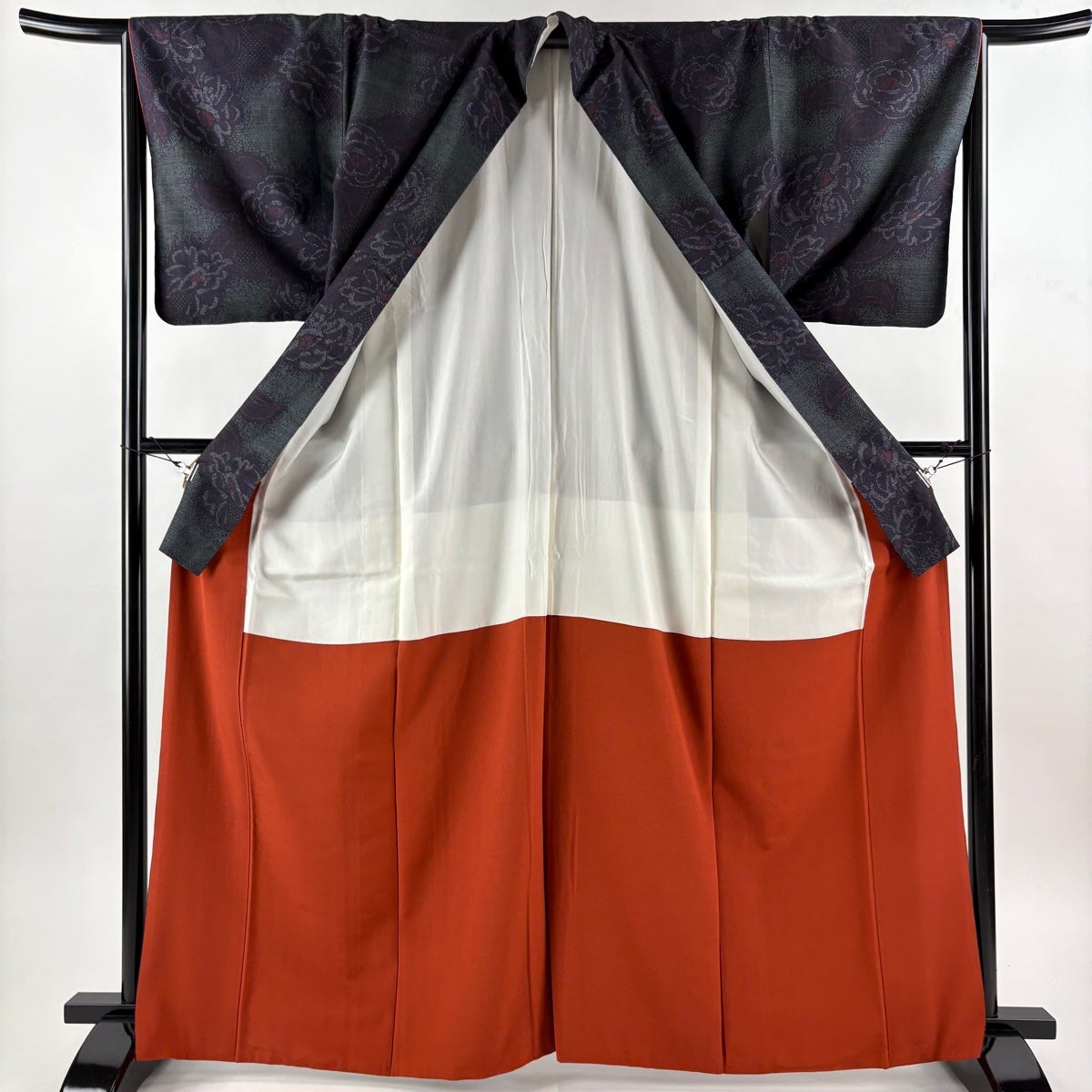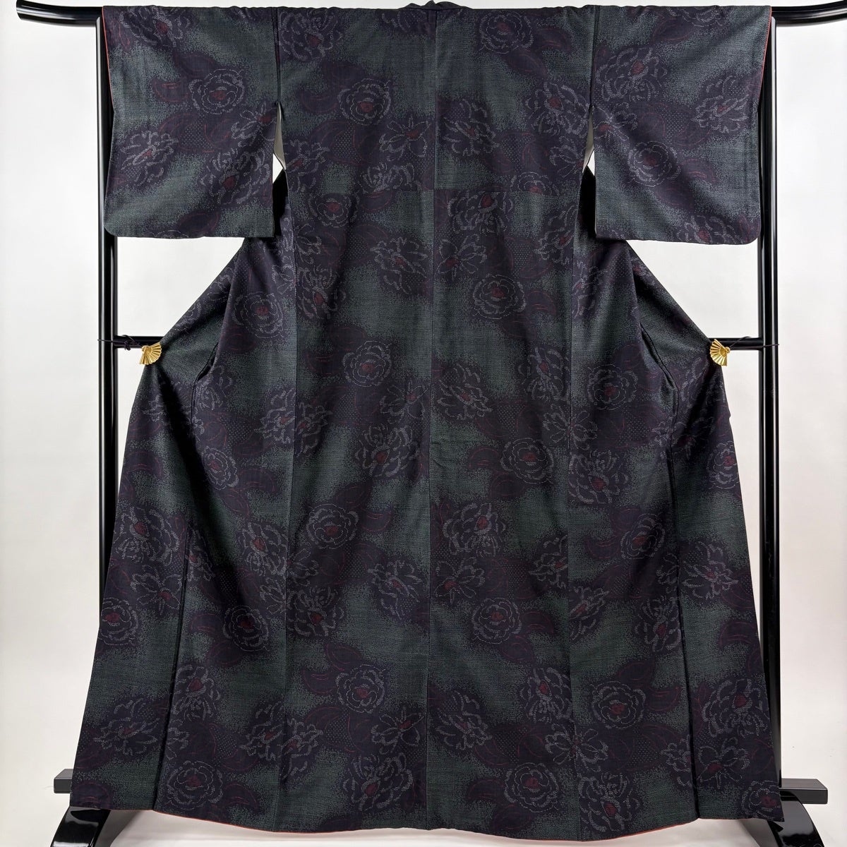 40%OFF 【美品】 色無地 身丈160.5cm 裄丈62cm S 袷 地紋 灰緑 正絹 逸品 K30