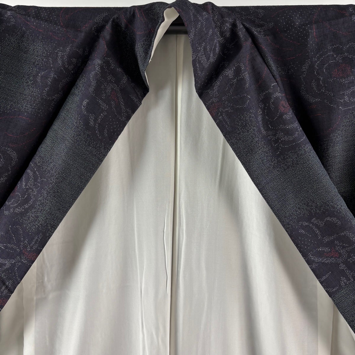 40%OFF 紬 身丈156cm 裄丈64cm M 単衣 綿薩摩 幾何学模様 絣柄 紺色 綿 逸品 K30