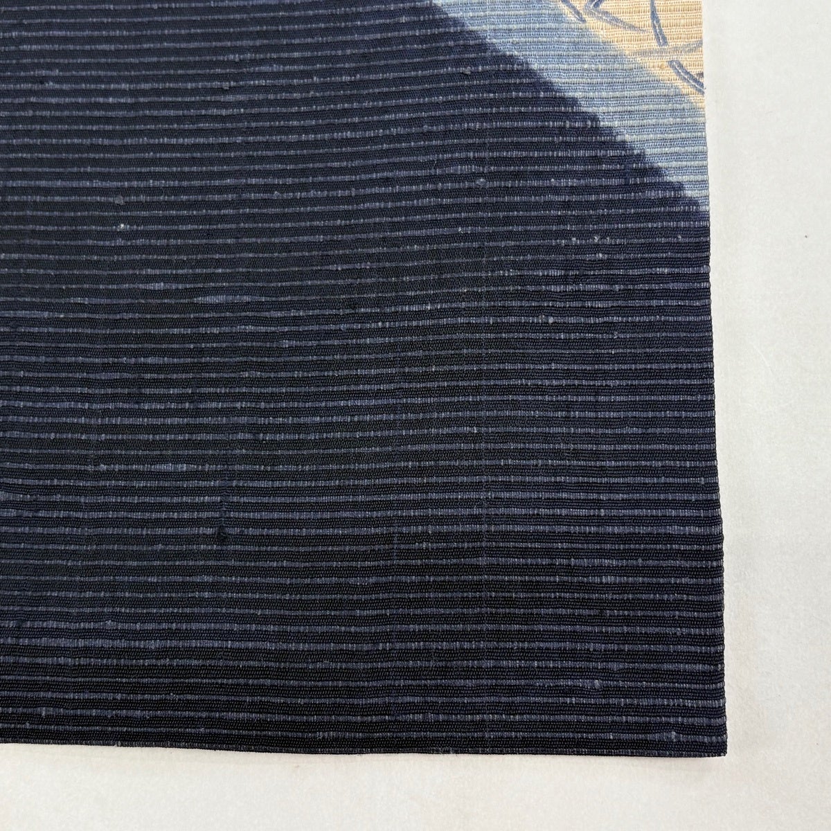 【美品】 袋帯 逸品 桂秀 落款あり 天然灰汁醗酵逹藍染 縞 幾何学 青 六通 正絹