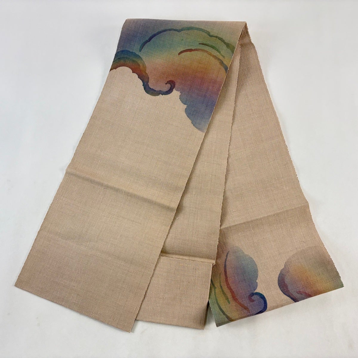 【美品】 名古屋帯 逸品 落款あり 証紙あり 八寸名古屋帯 松葉仕立て 本場結城紬 奥順 雲文 ベージュ 正絹