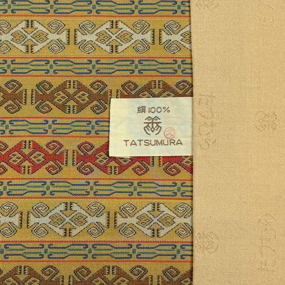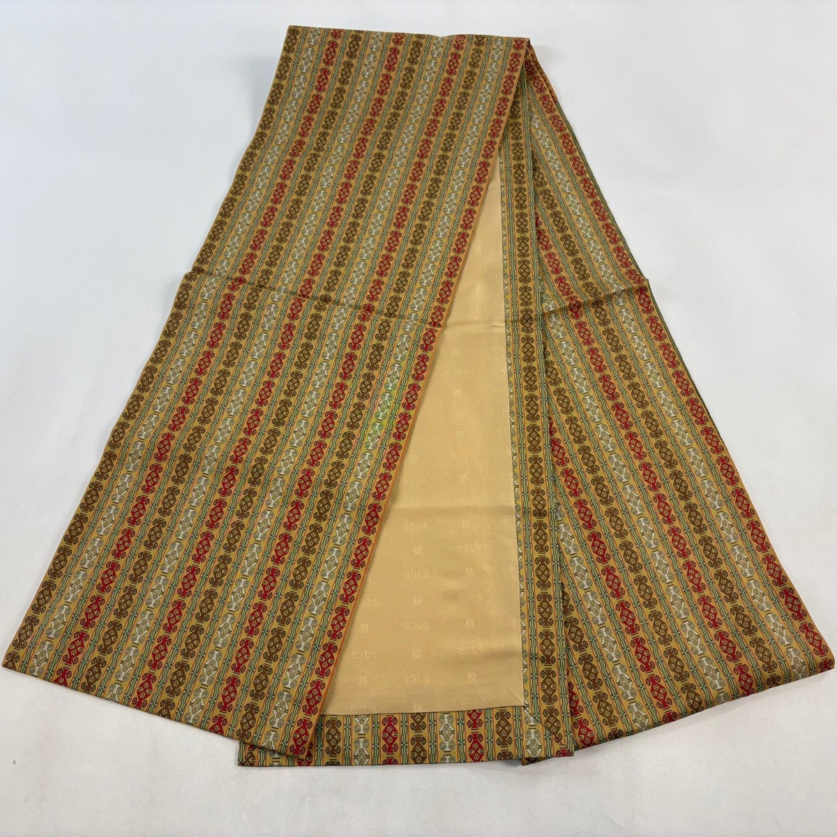 【美品】付け帯 逸品 城間栄順 落款あり 作り帯 紬地 幾何学模様 ベージュ 正絹