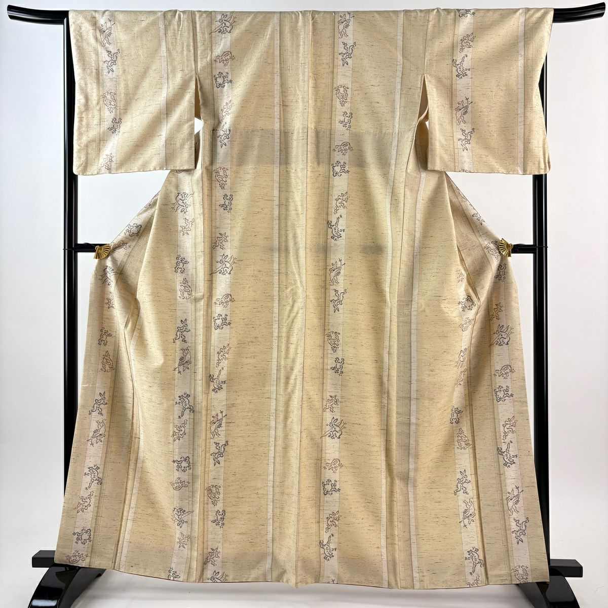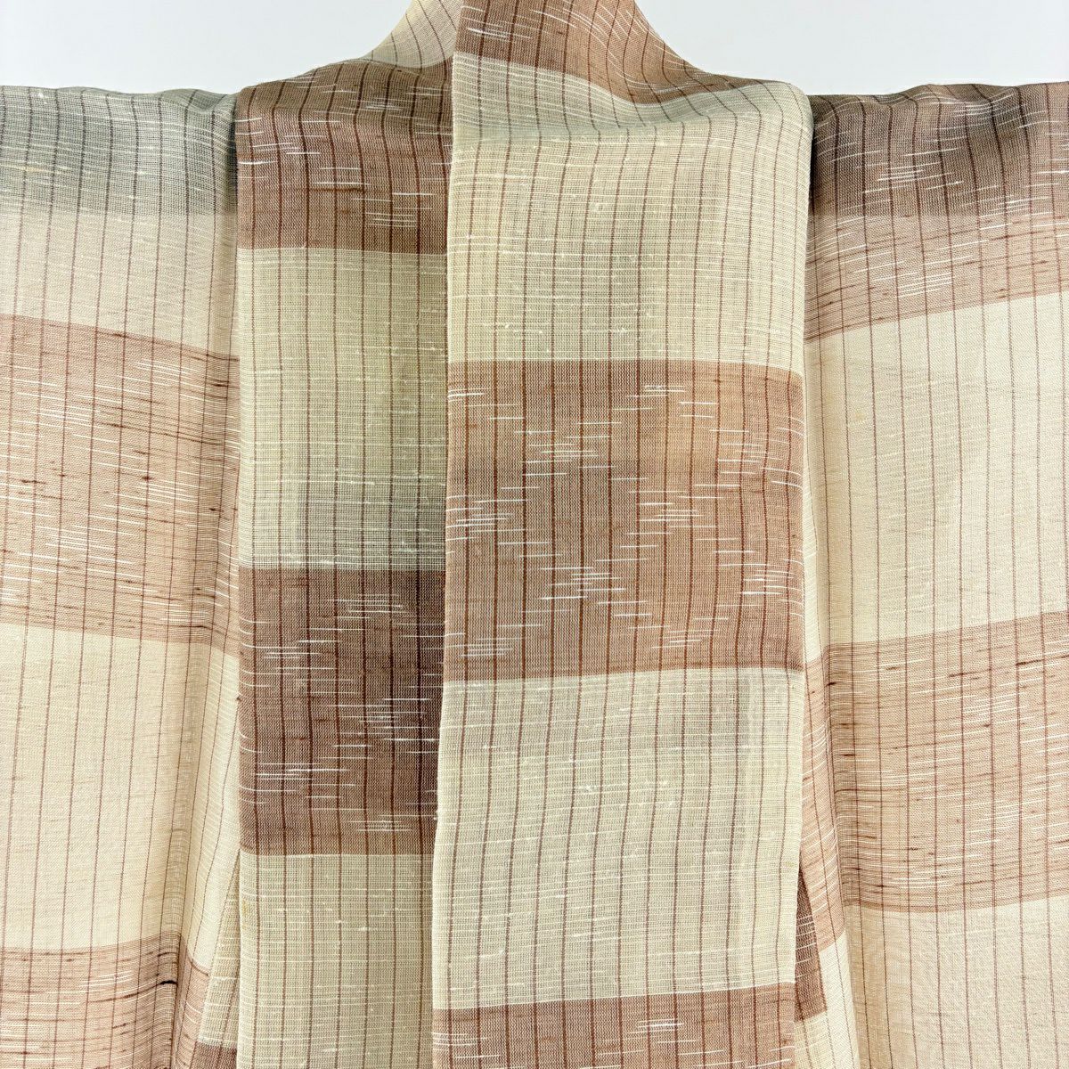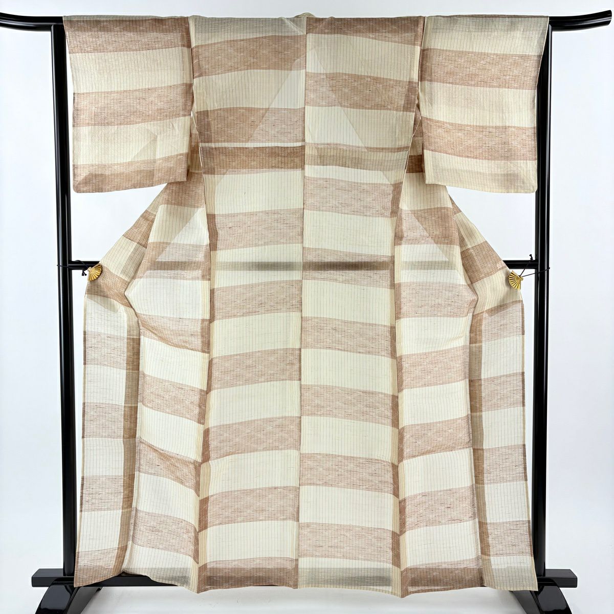 50%OFF 【美品】 紬 身丈160cm 裄丈65cm M 薄物 夏紬 縞 段縞 薄茶色 正絹 逸品 K50