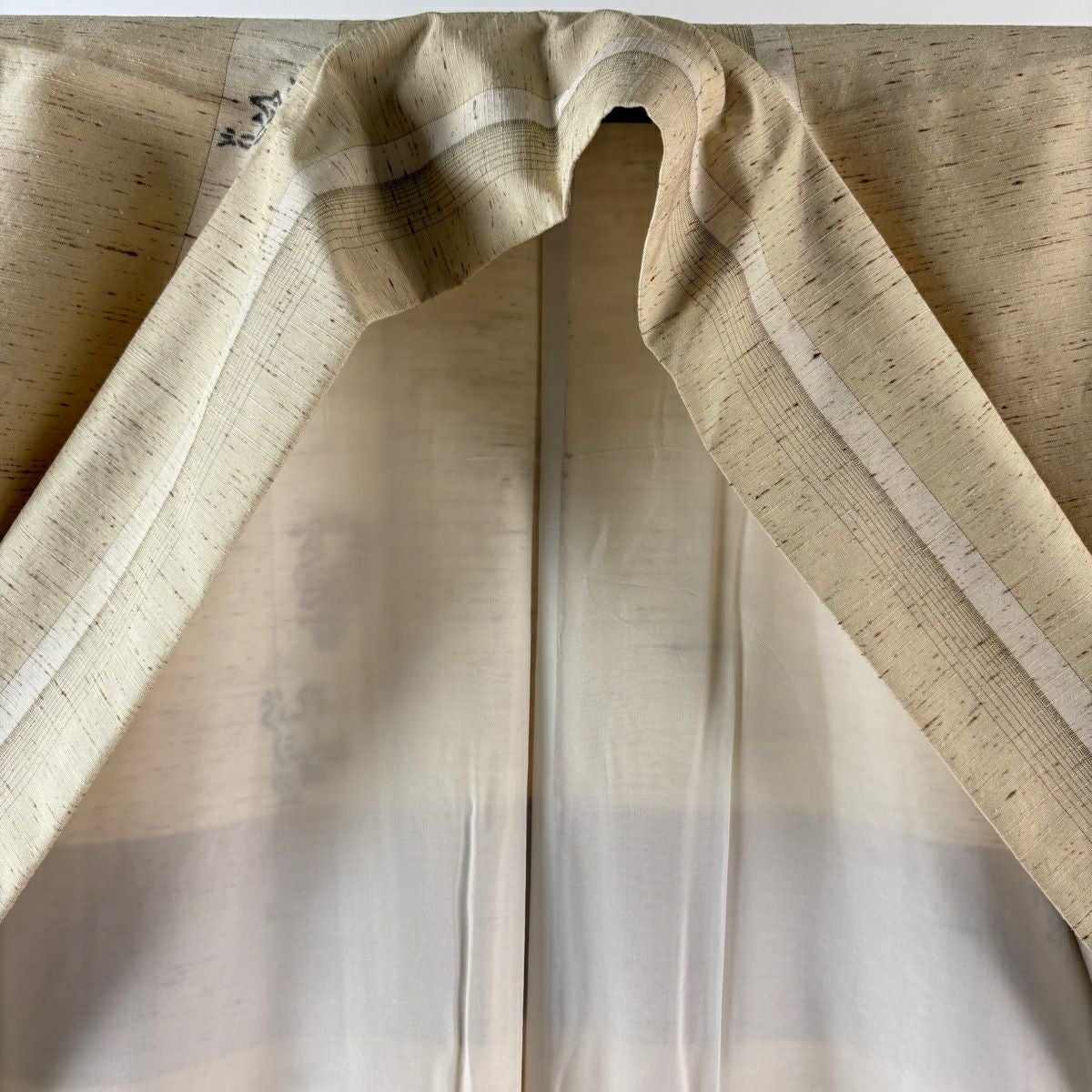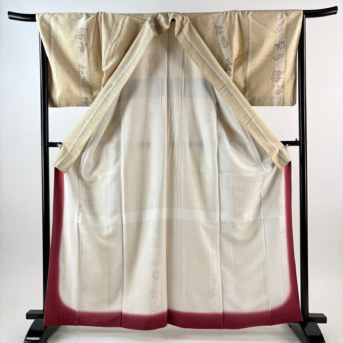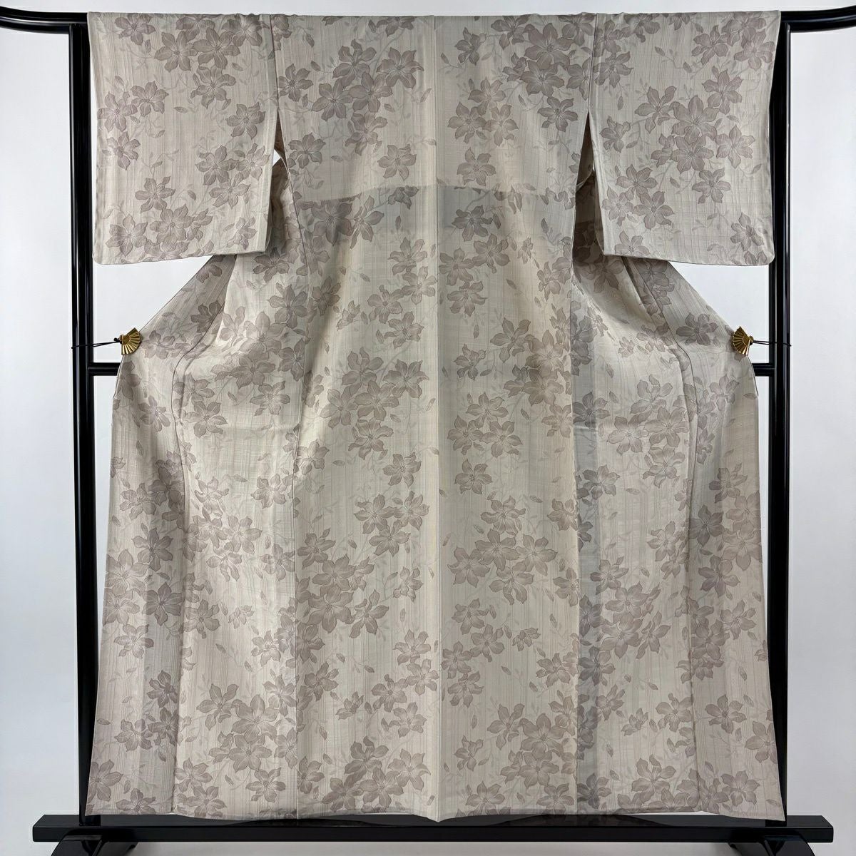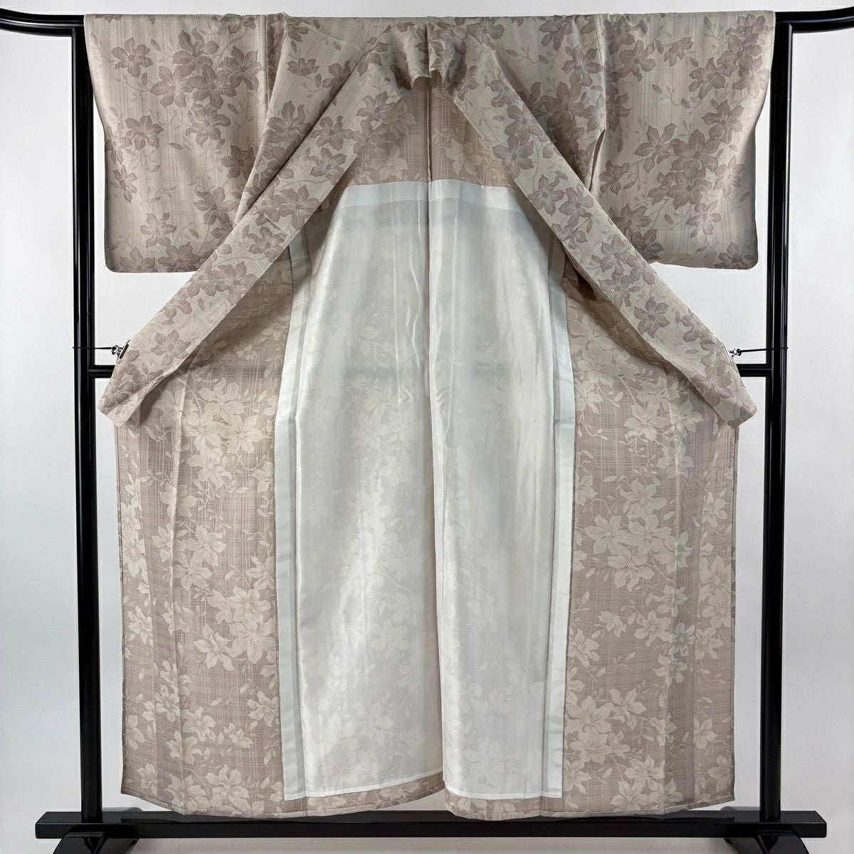 50%OFF 【美品】 紬 身丈160cm 裄丈65cm M 薄物 夏紬 縞 段縞 薄茶色 正絹 逸品 K50