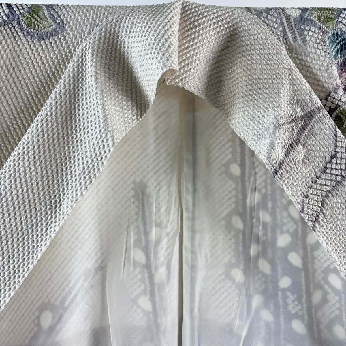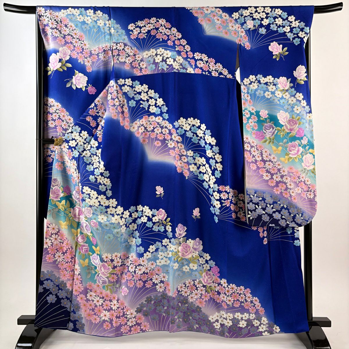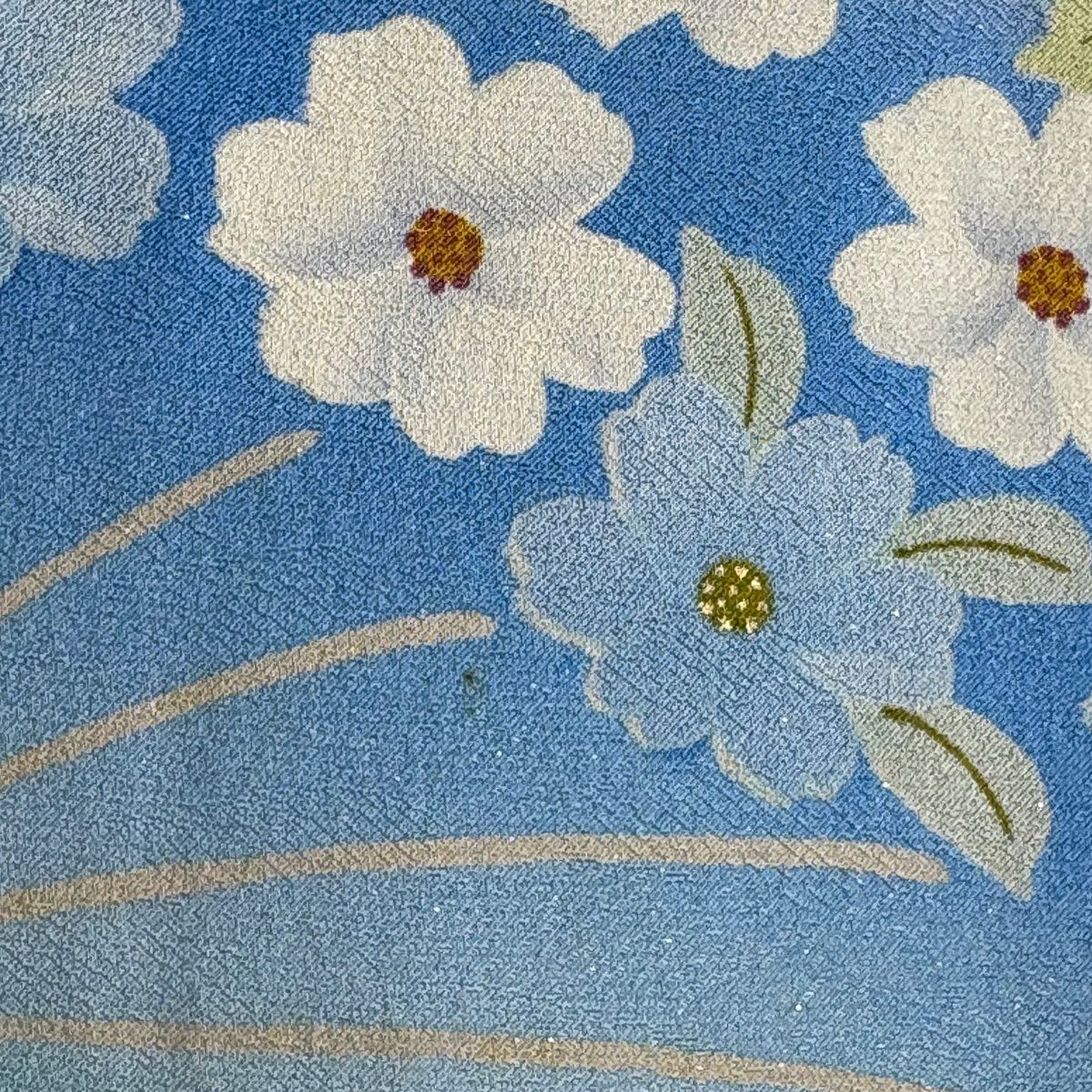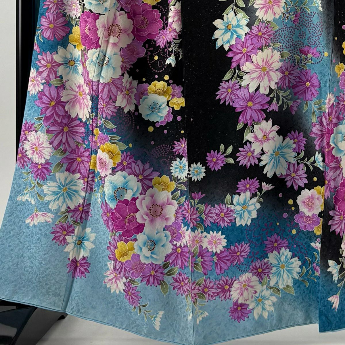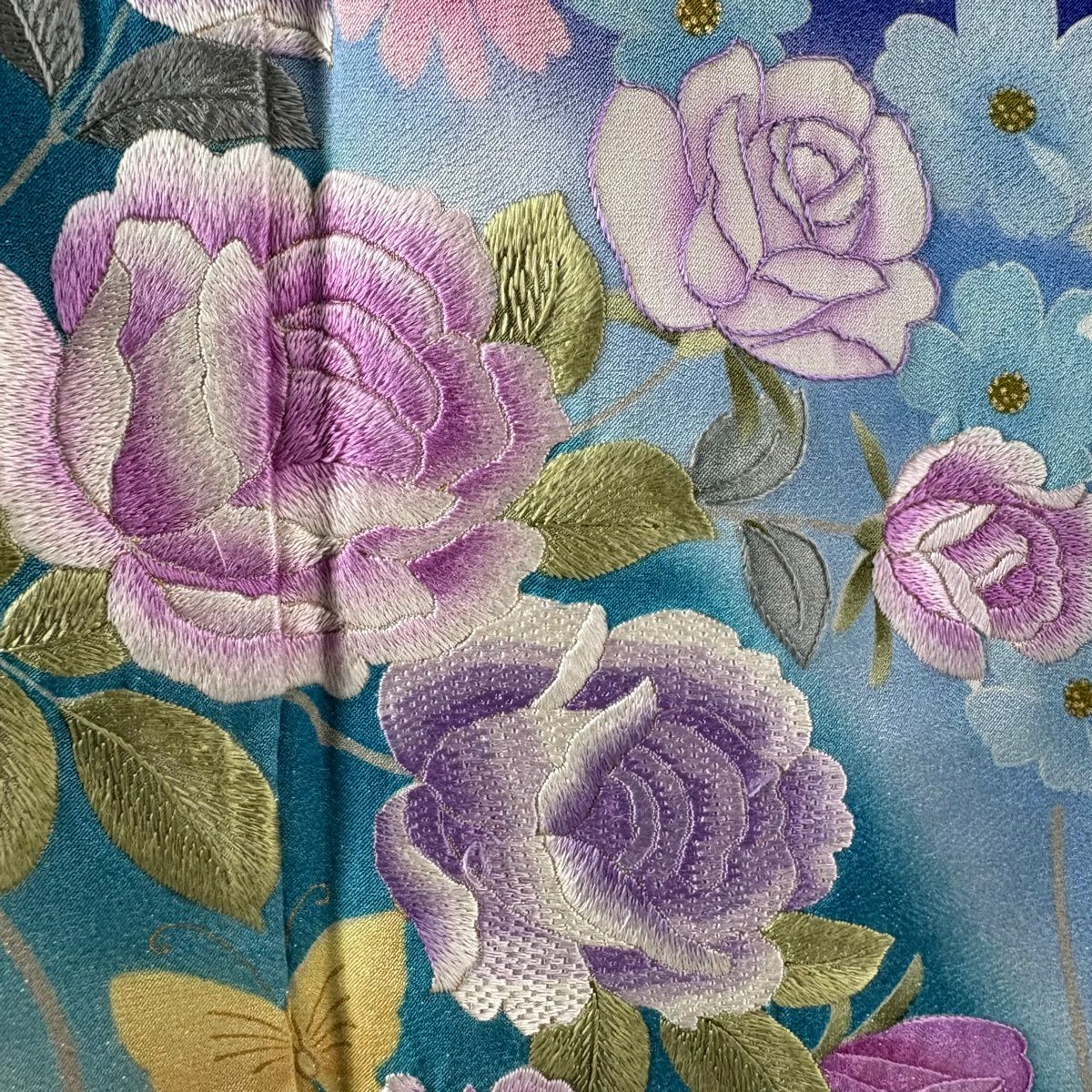 50%OFF 振袖 身丈169cm 裄丈67cm M 袷 草花 扇面 銀通し 金糸 青緑 正絹 逸品 K50