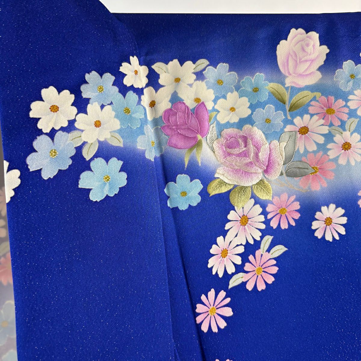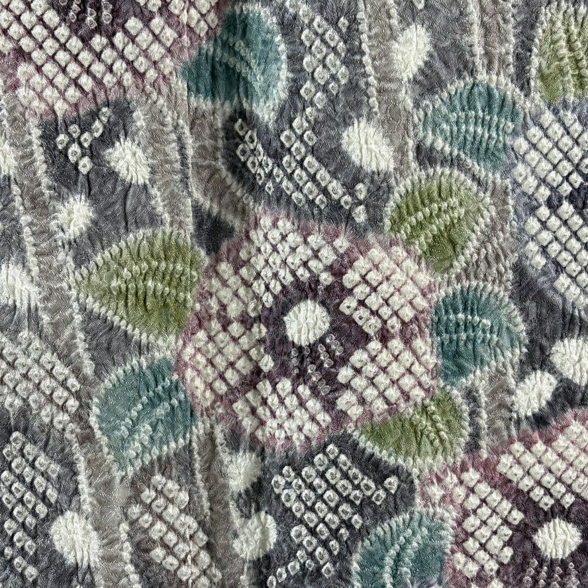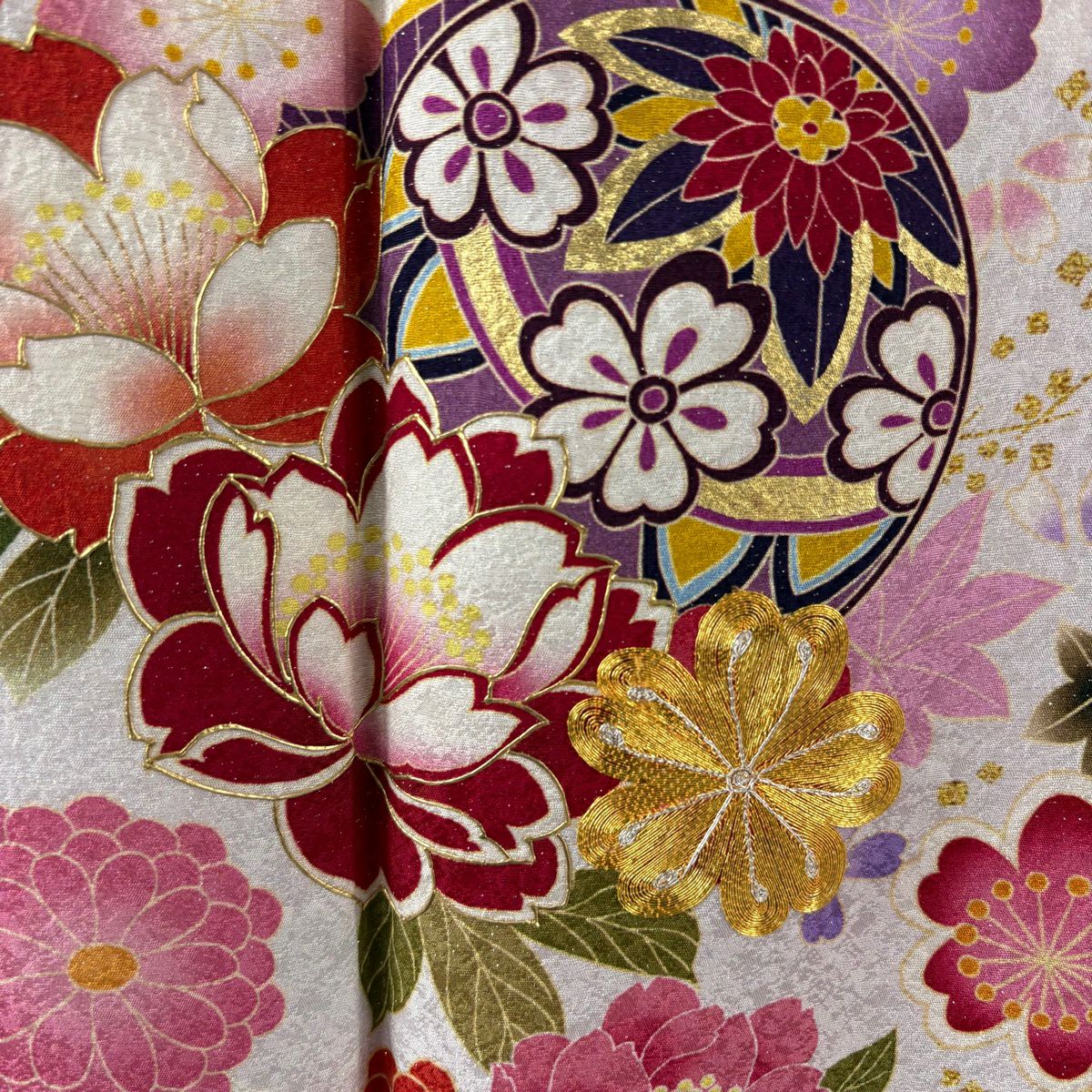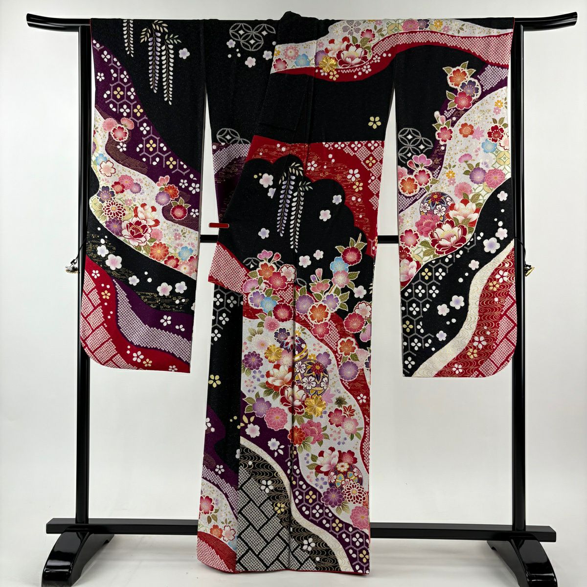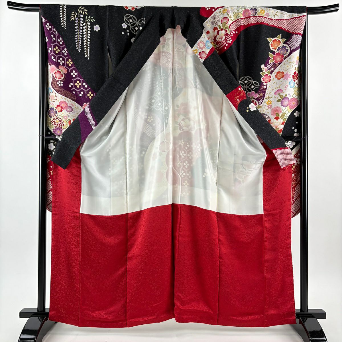 50%OFF 振袖 身丈169cm 裄丈67cm M 袷 草花 扇面 銀通し 金糸 青緑 正絹 逸品 K50