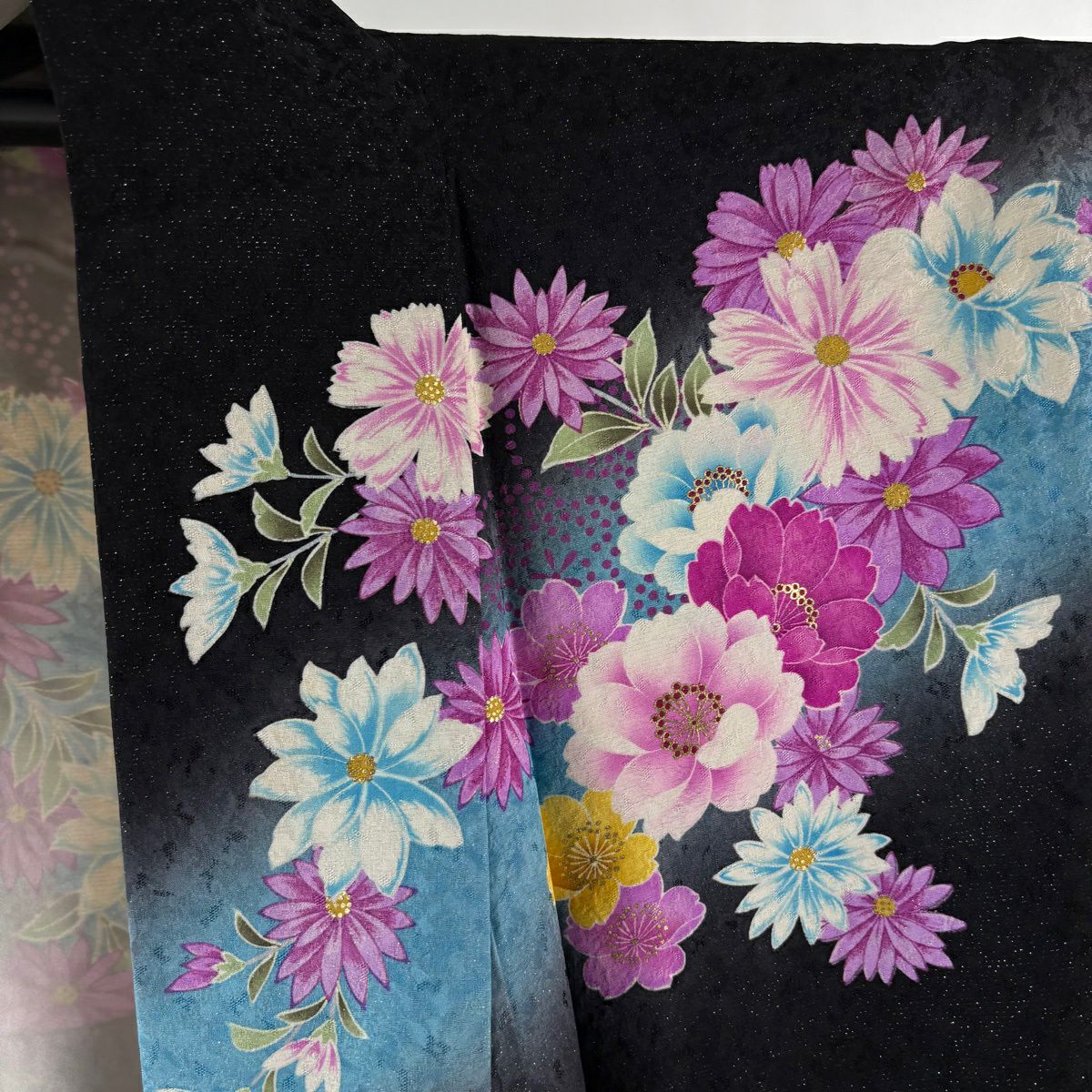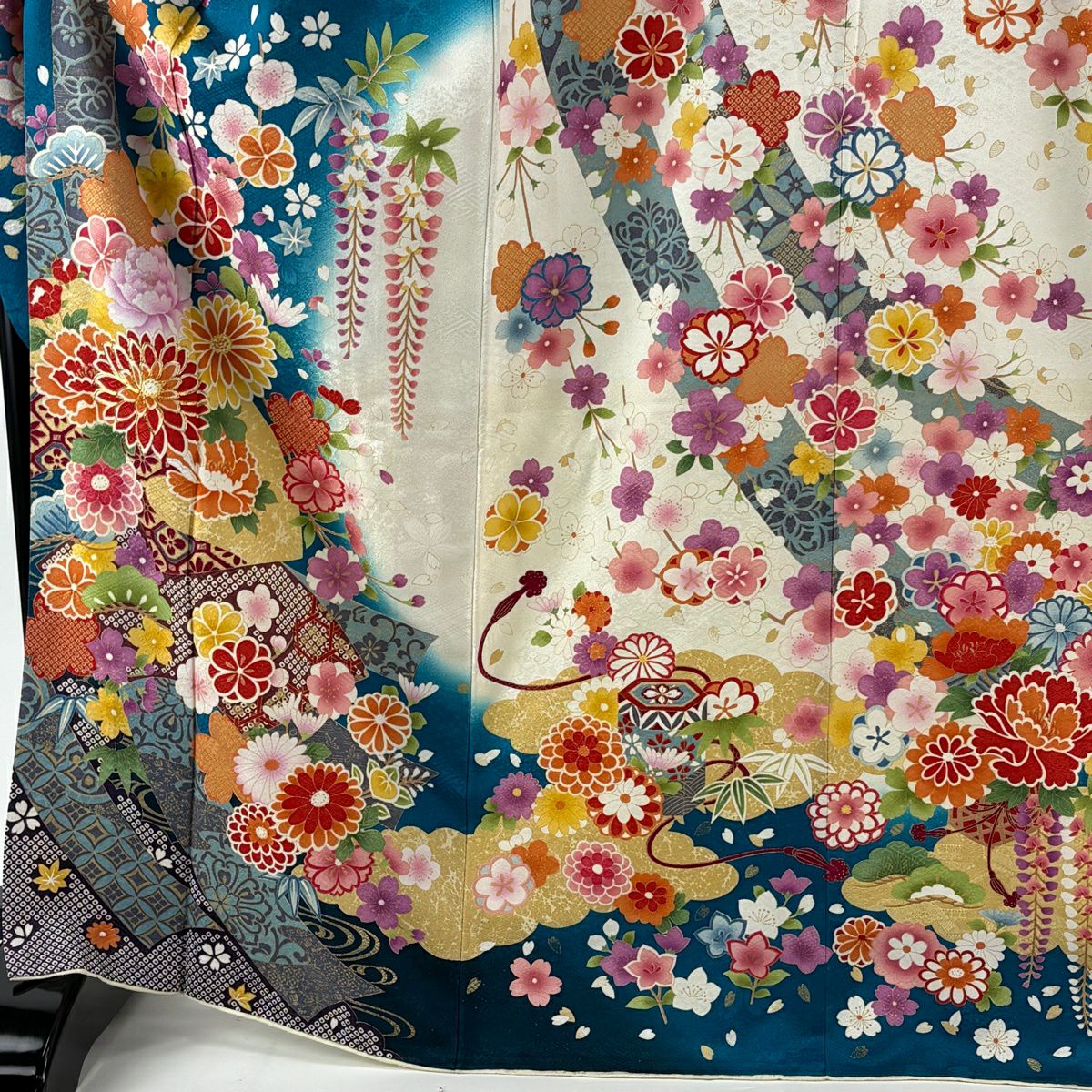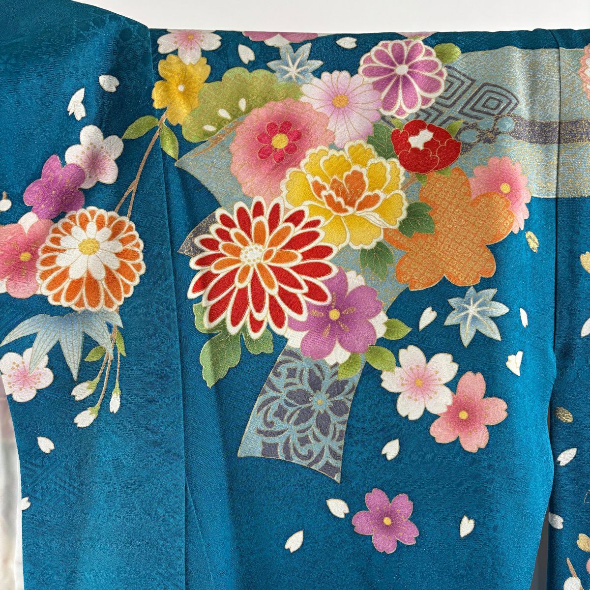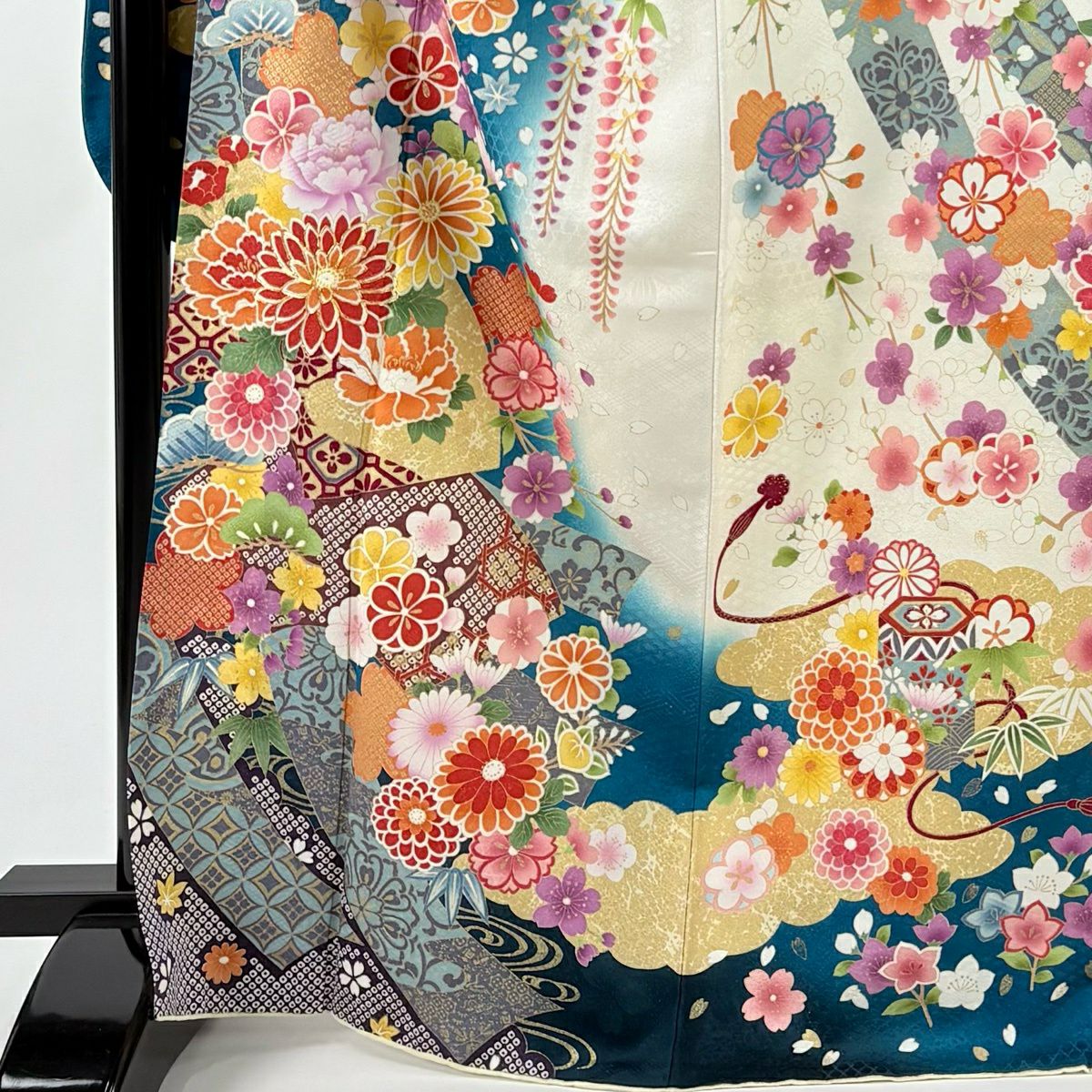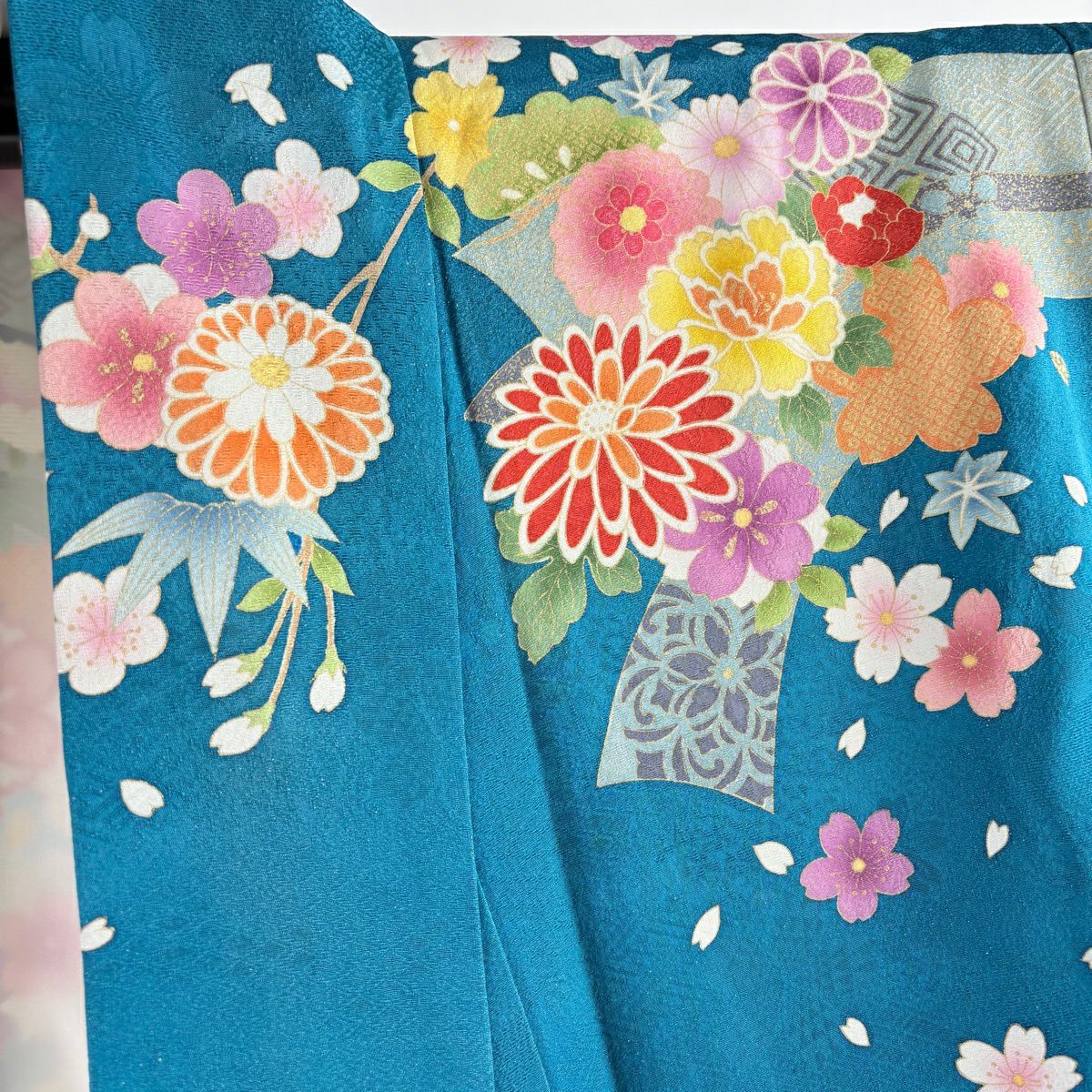 50%OFF 振袖 身丈167cm 裄丈68cm L 袷 松竹梅 菊 銀通し 金糸 青緑 正絹 逸品 K50