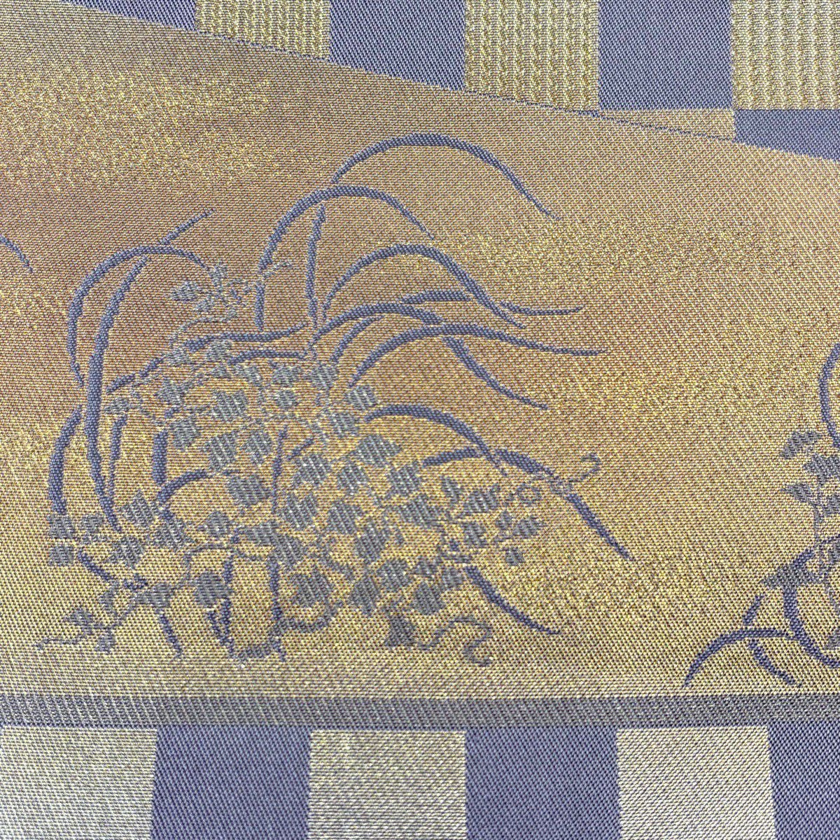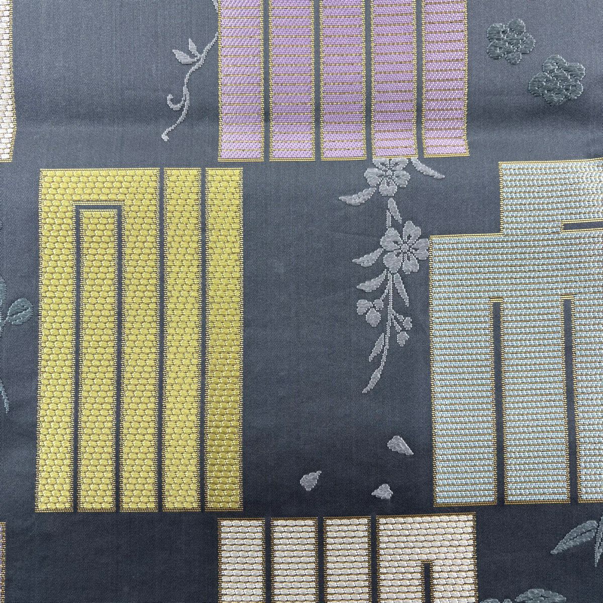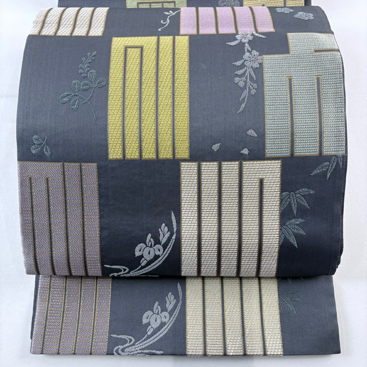 50%OFF 袋帯 逸品 山口美術織物 落款あり 源氏香之図 枝垂れ桜 金糸 箔 灰色 六通 正絹 K50