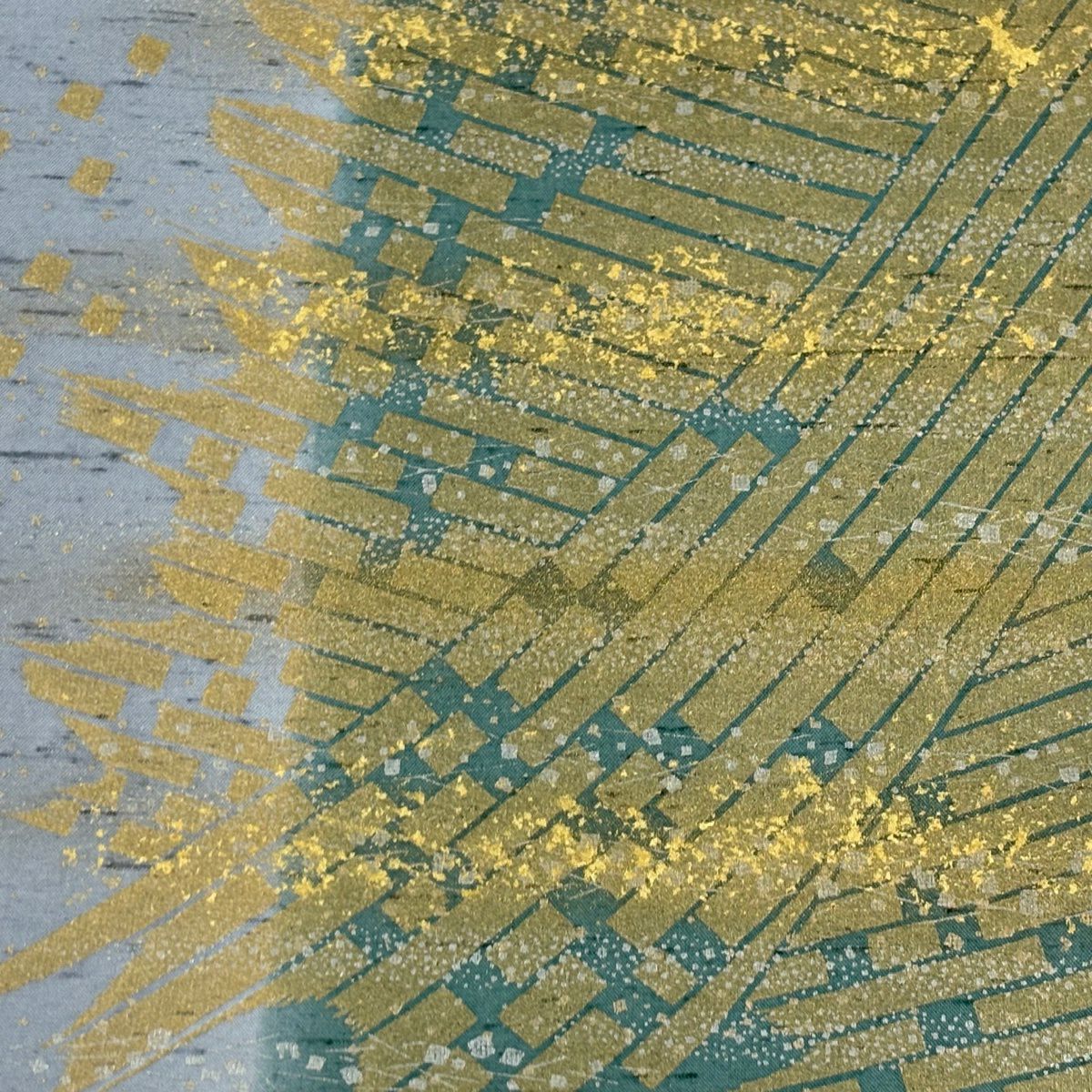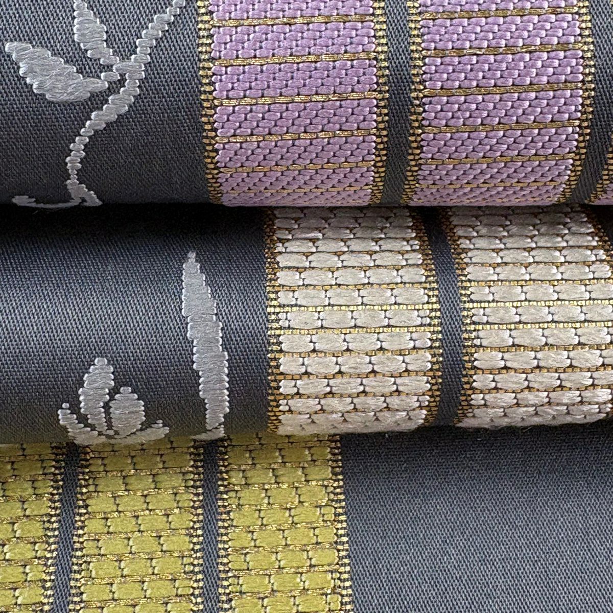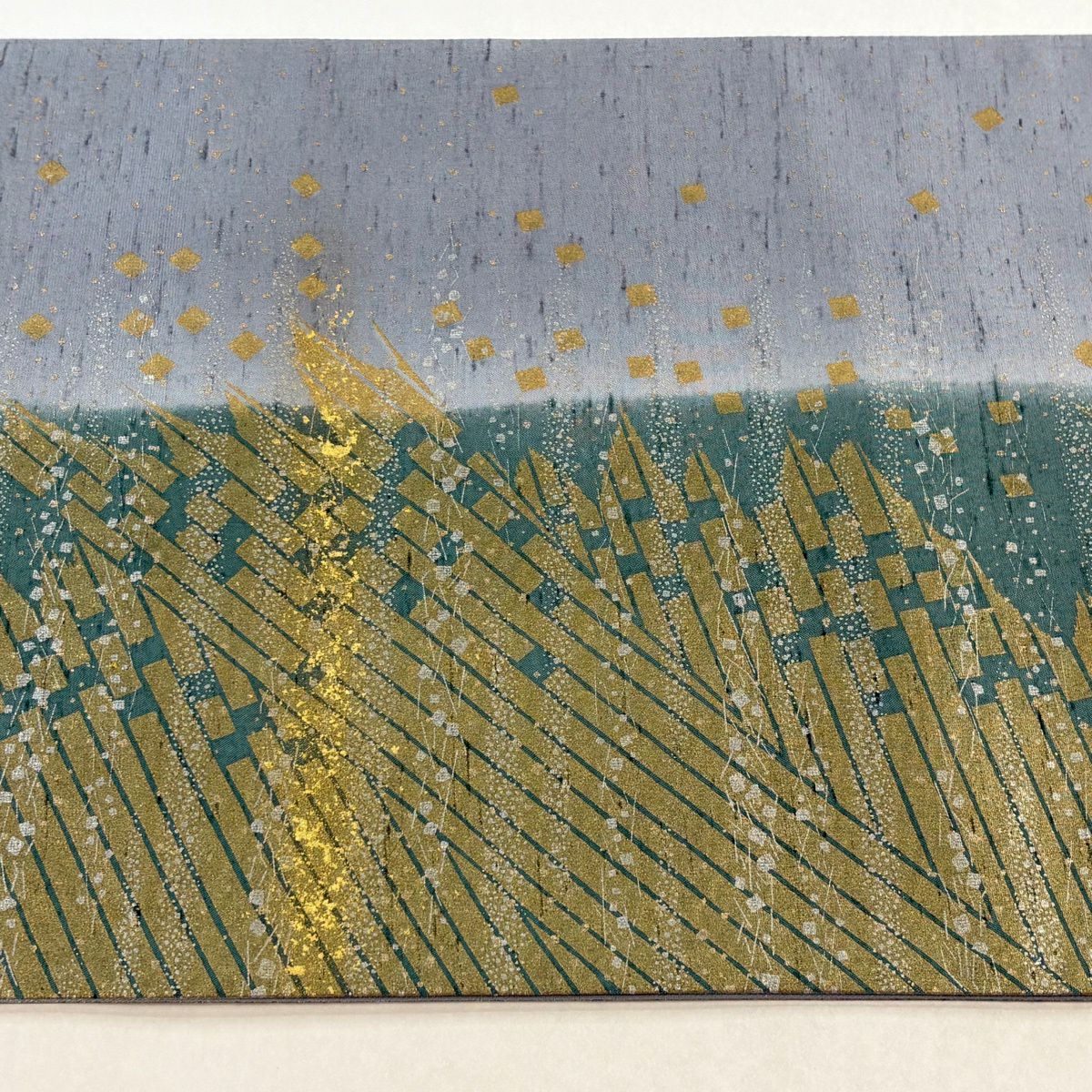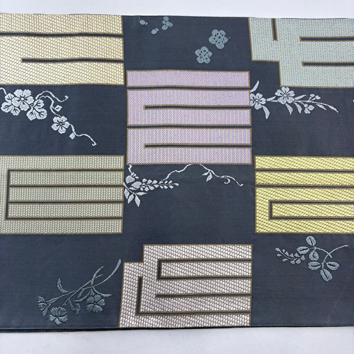 50%OFF 袋帯 逸品 山口美術織物 落款あり 源氏香之図 枝垂れ桜 金糸 箔 灰色 六通 正絹 K50