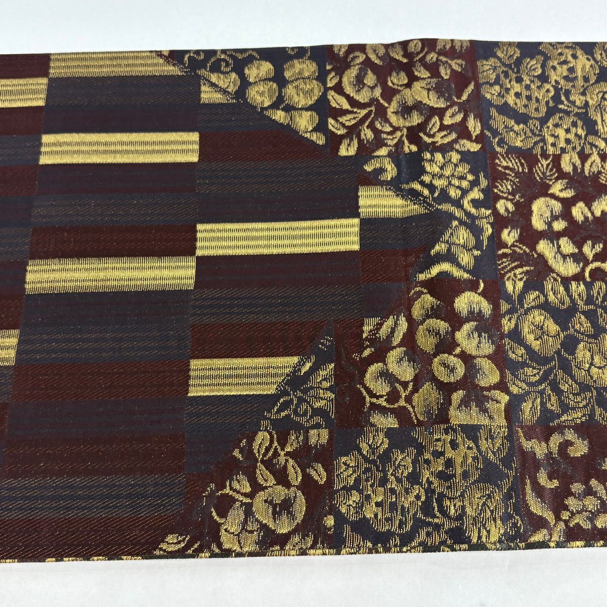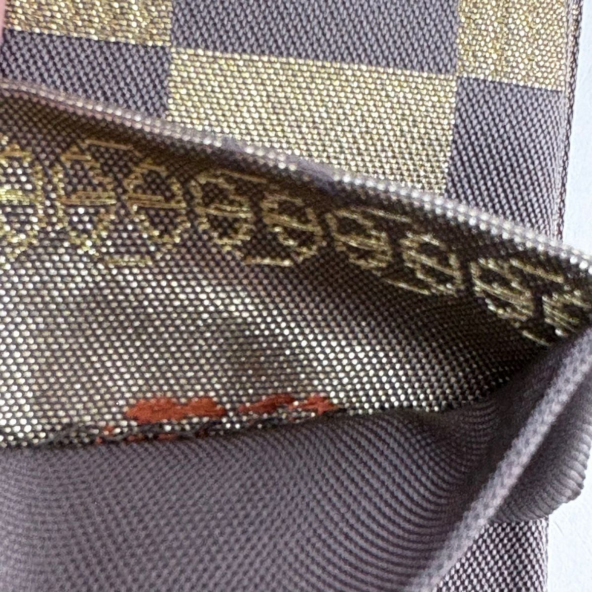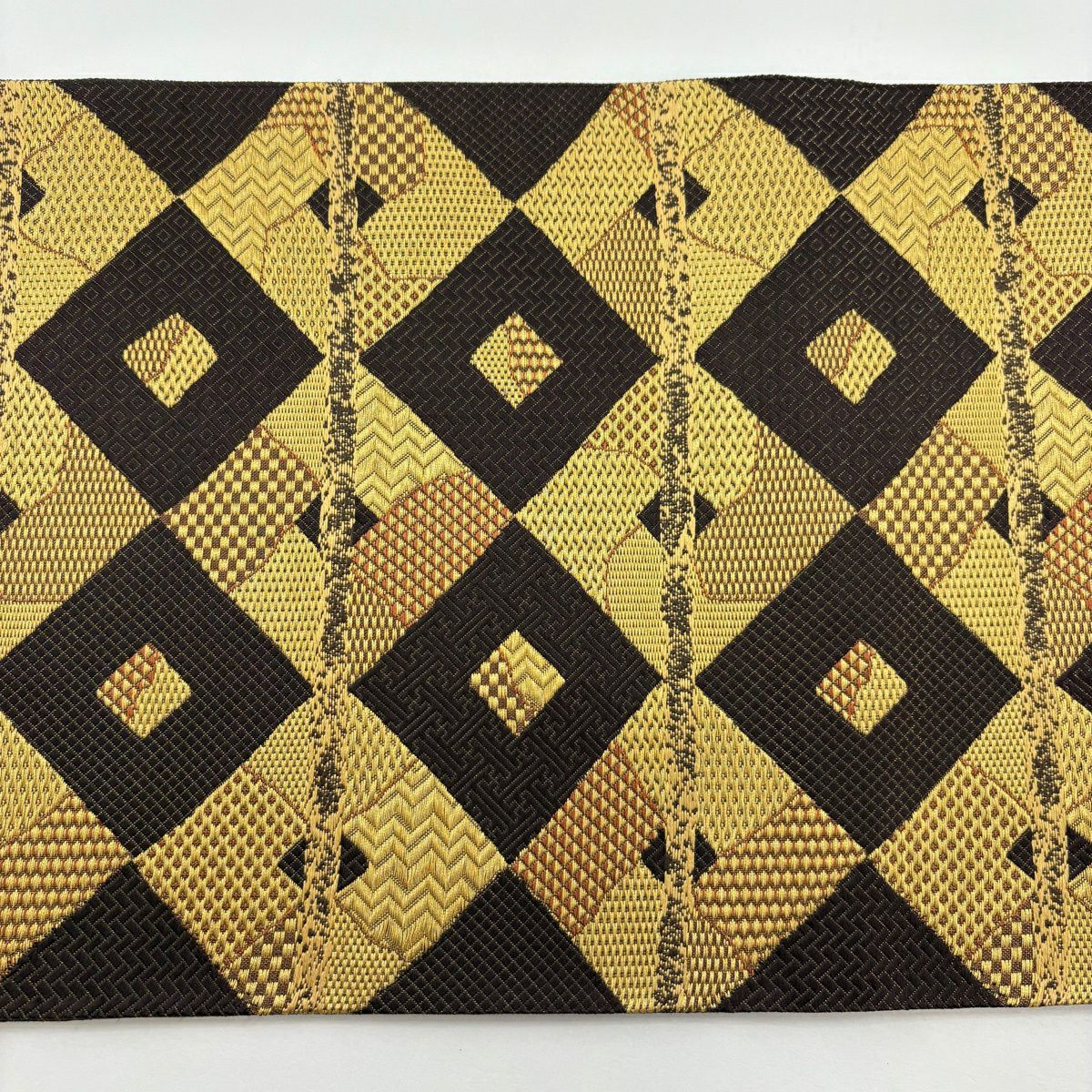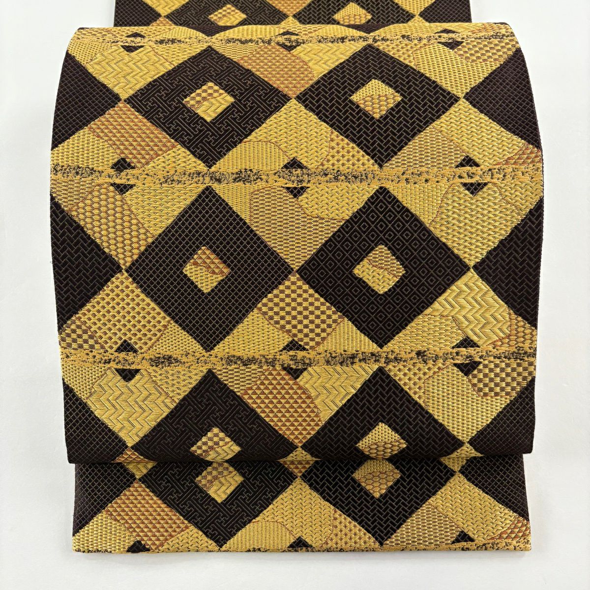 50%OFF 【美品】 袋帯 逸品 誉田屋源兵衛 落款あり 菱文 縞模様 金糸 焦茶色 六通 正絹 K50