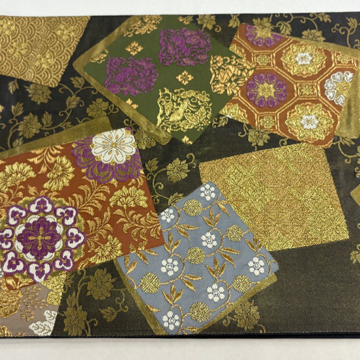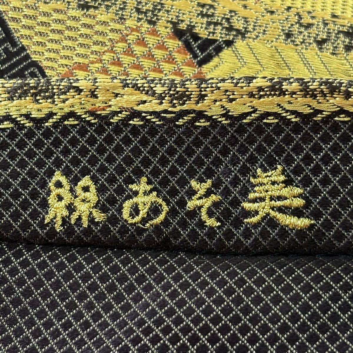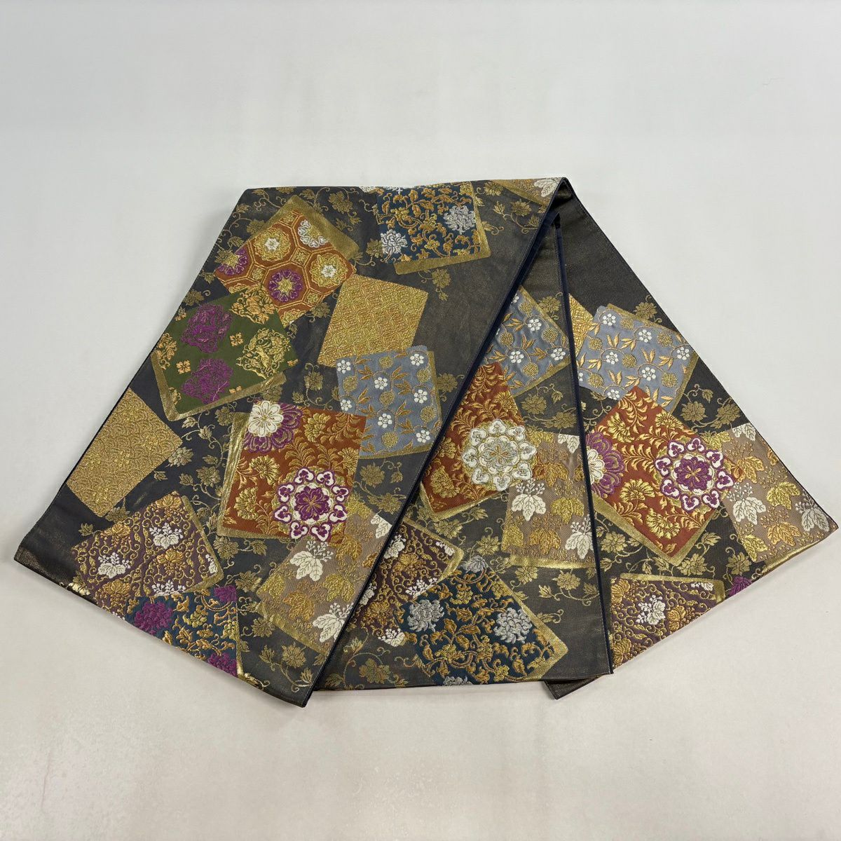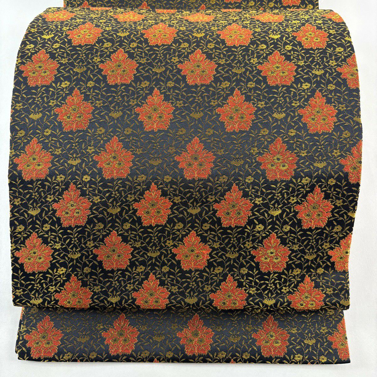 50%OFF 【美品】 開き名古屋帯 逸品 龍村美術織物 比翼仕立て 草花 花唐草 金糸 黒 正絹 K50