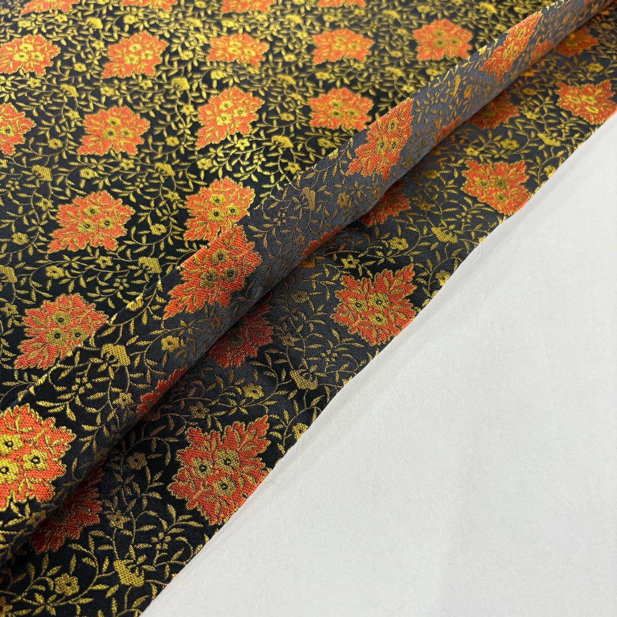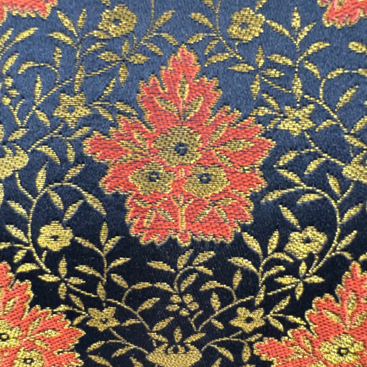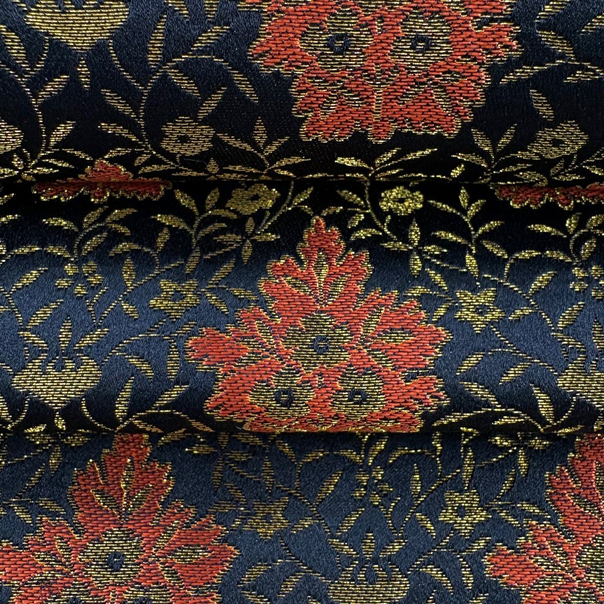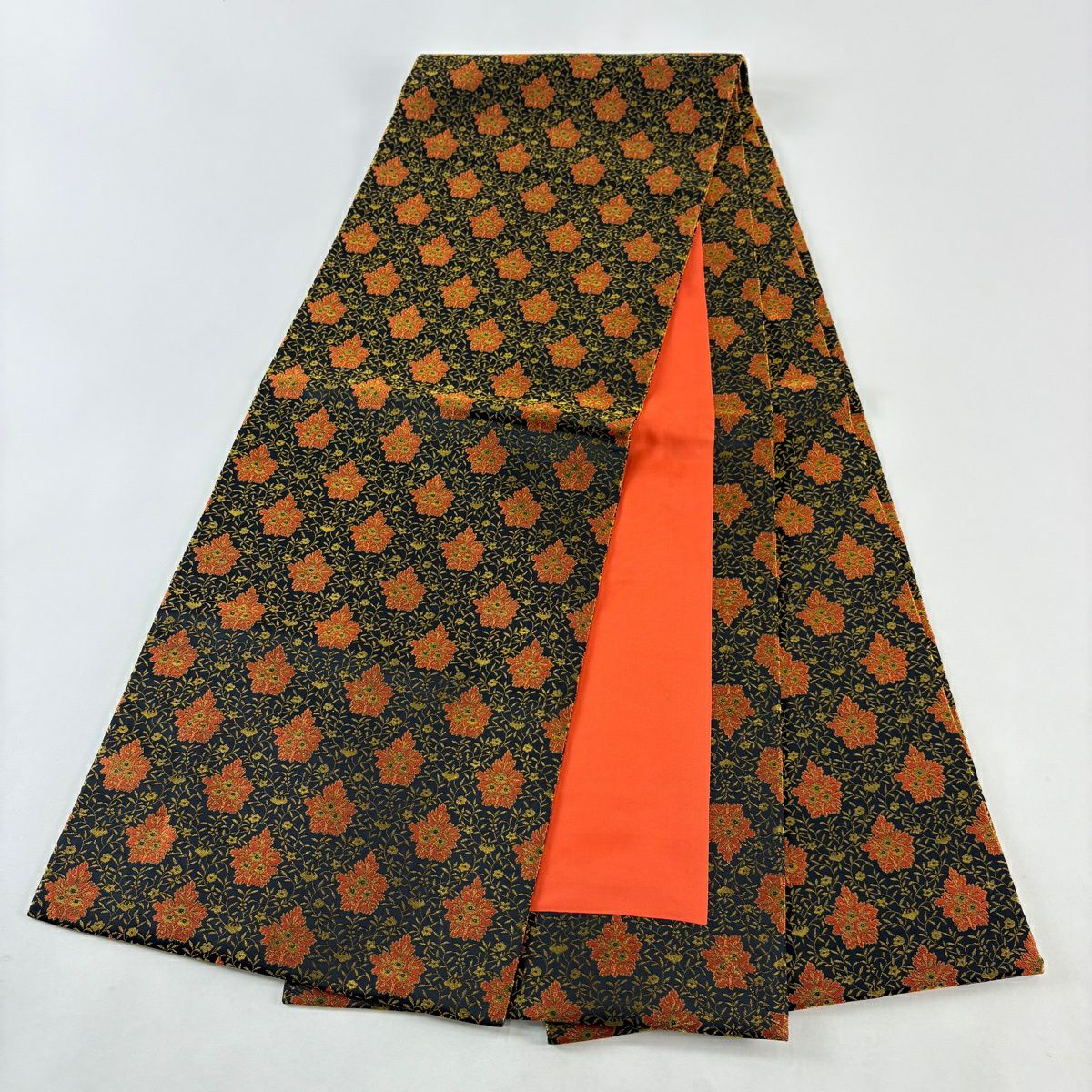 50%OFF 【美品】 開き名古屋帯 逸品 龍村美術織物 比翼仕立て 草花 花唐草 金糸 黒 正絹 K50