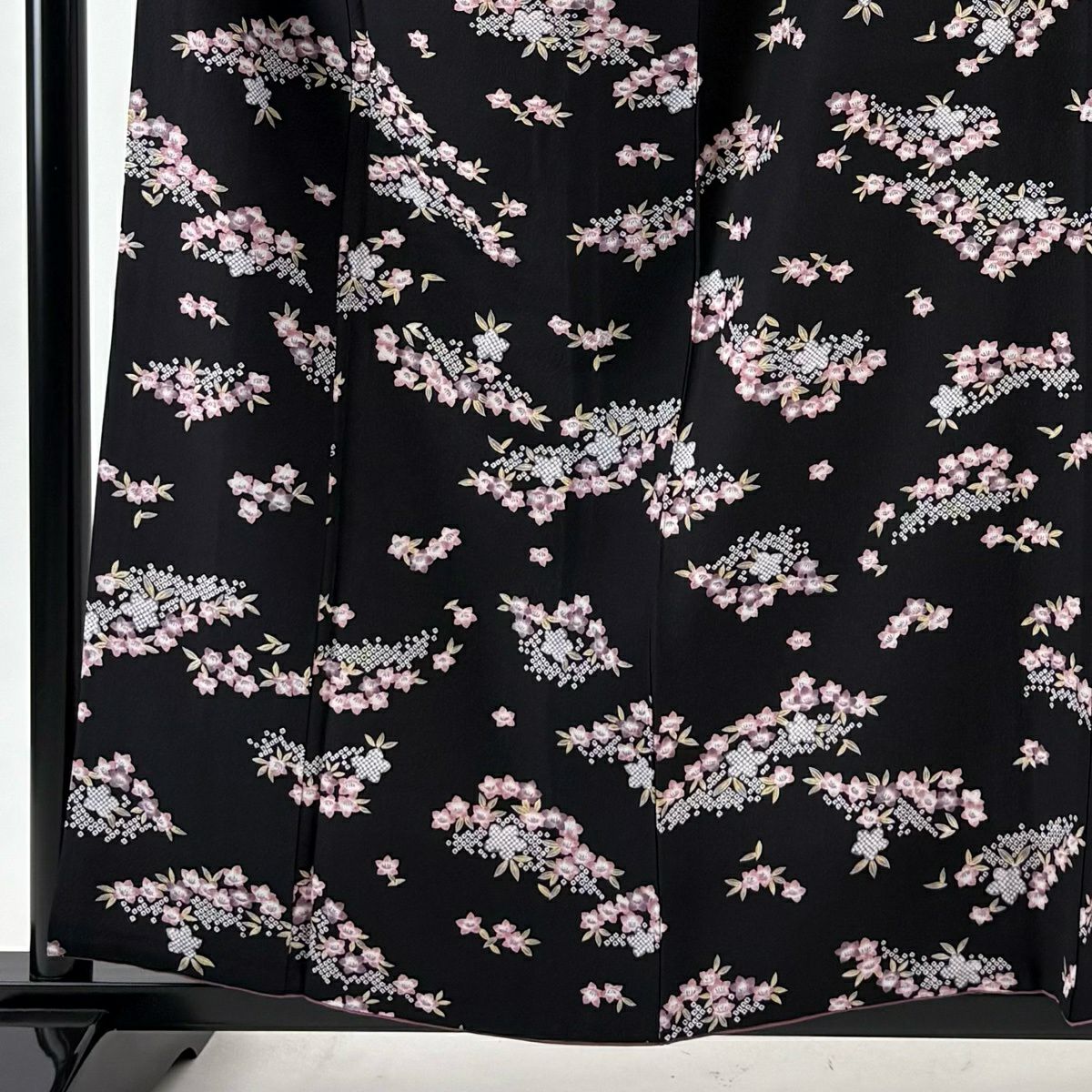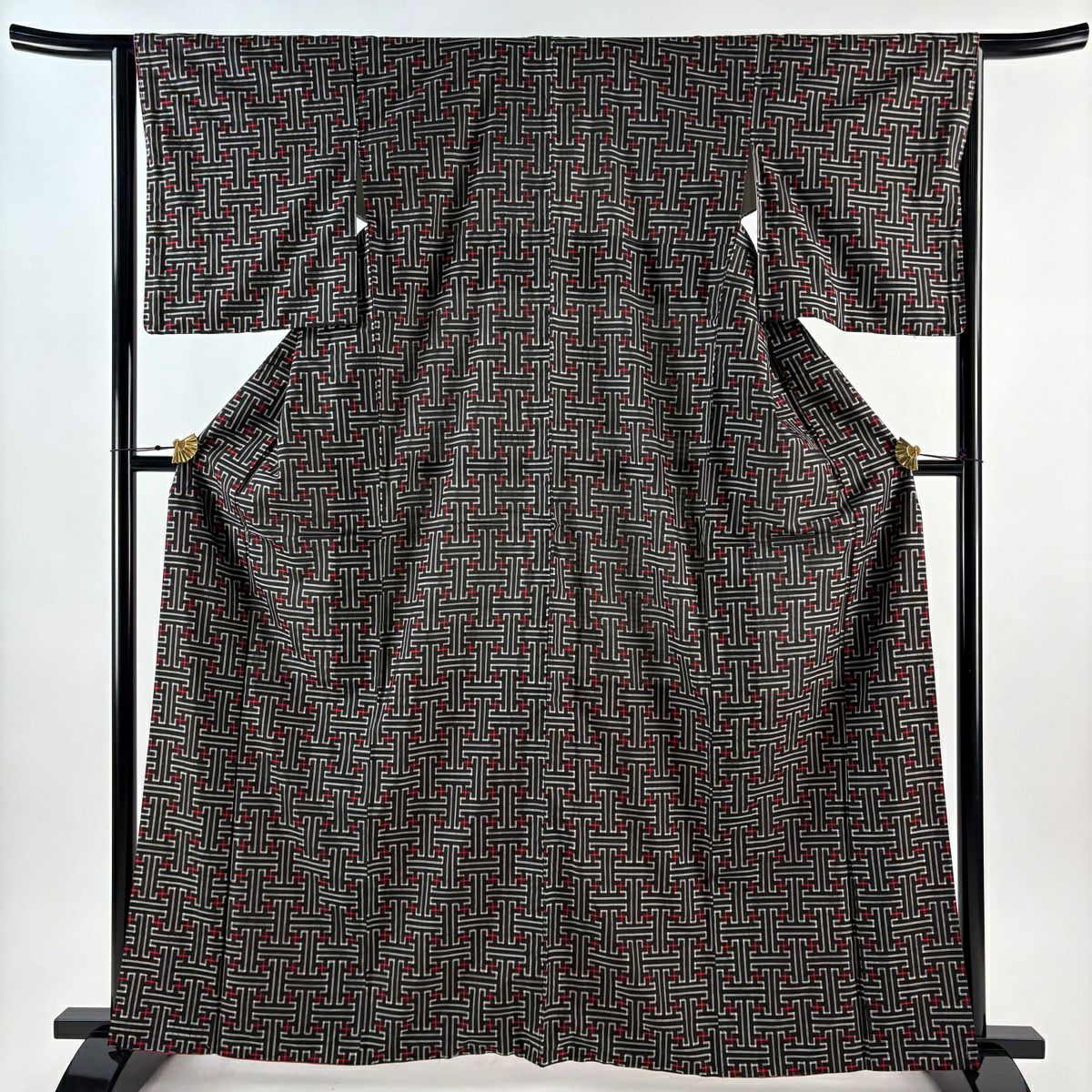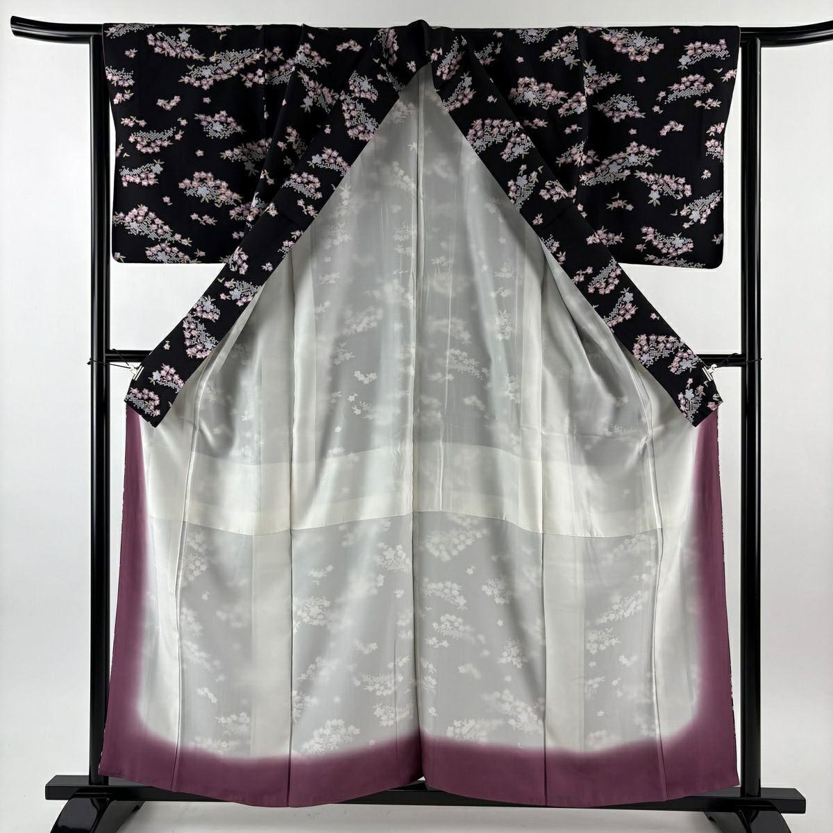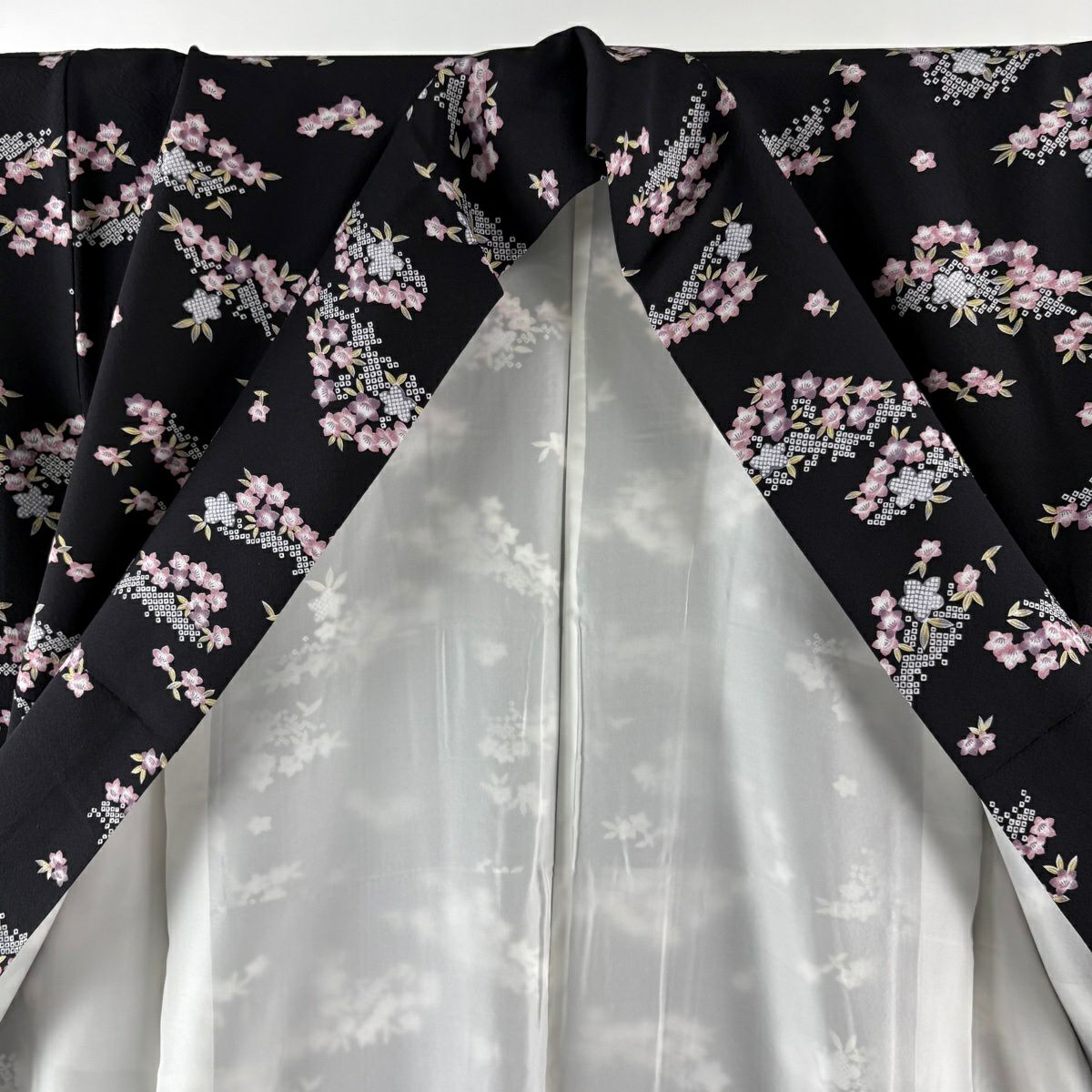50%OFF 【美品】 小紋 身丈158.5cm 裄丈63cm S 袷 草花 疋田柄 黒 正絹 逸品 K50