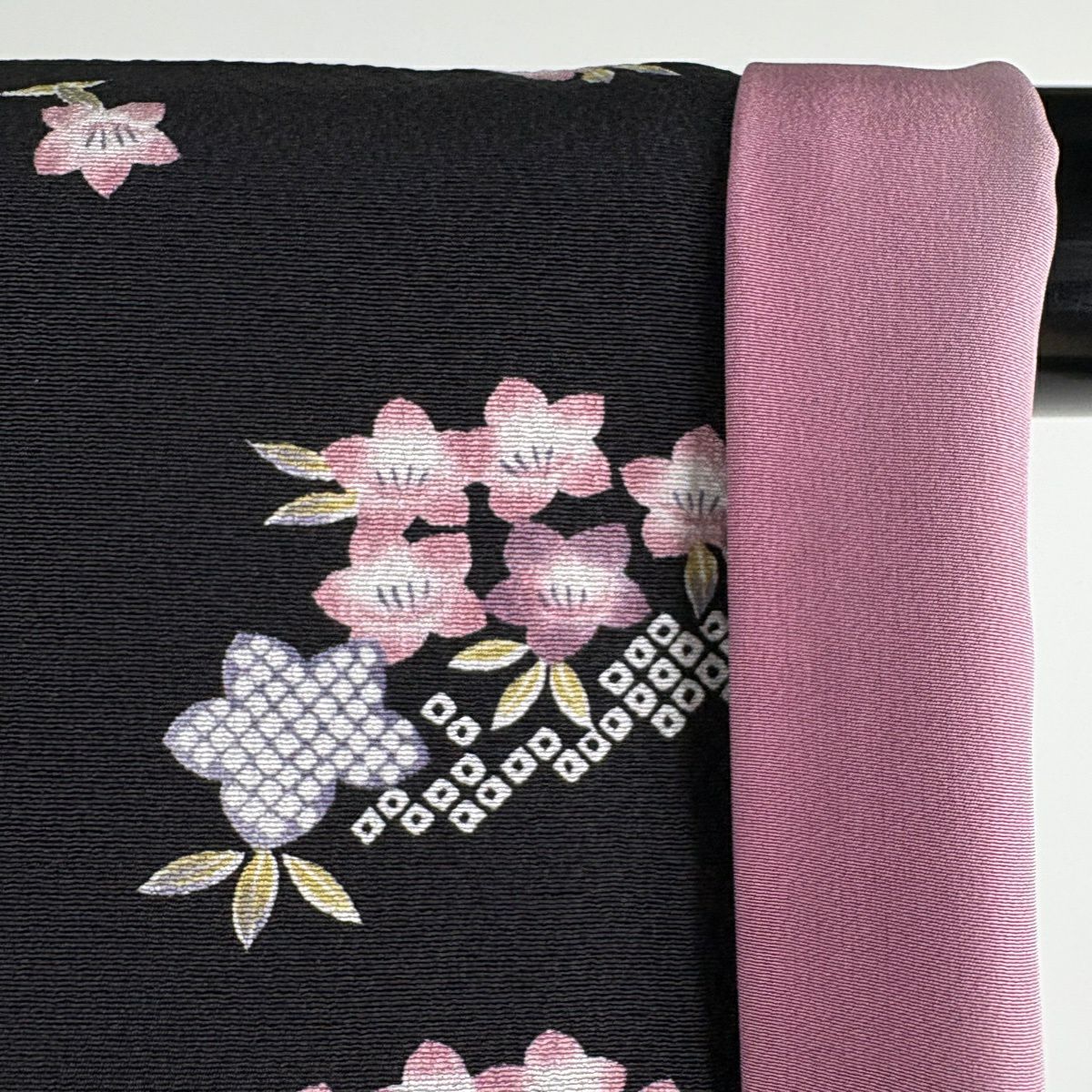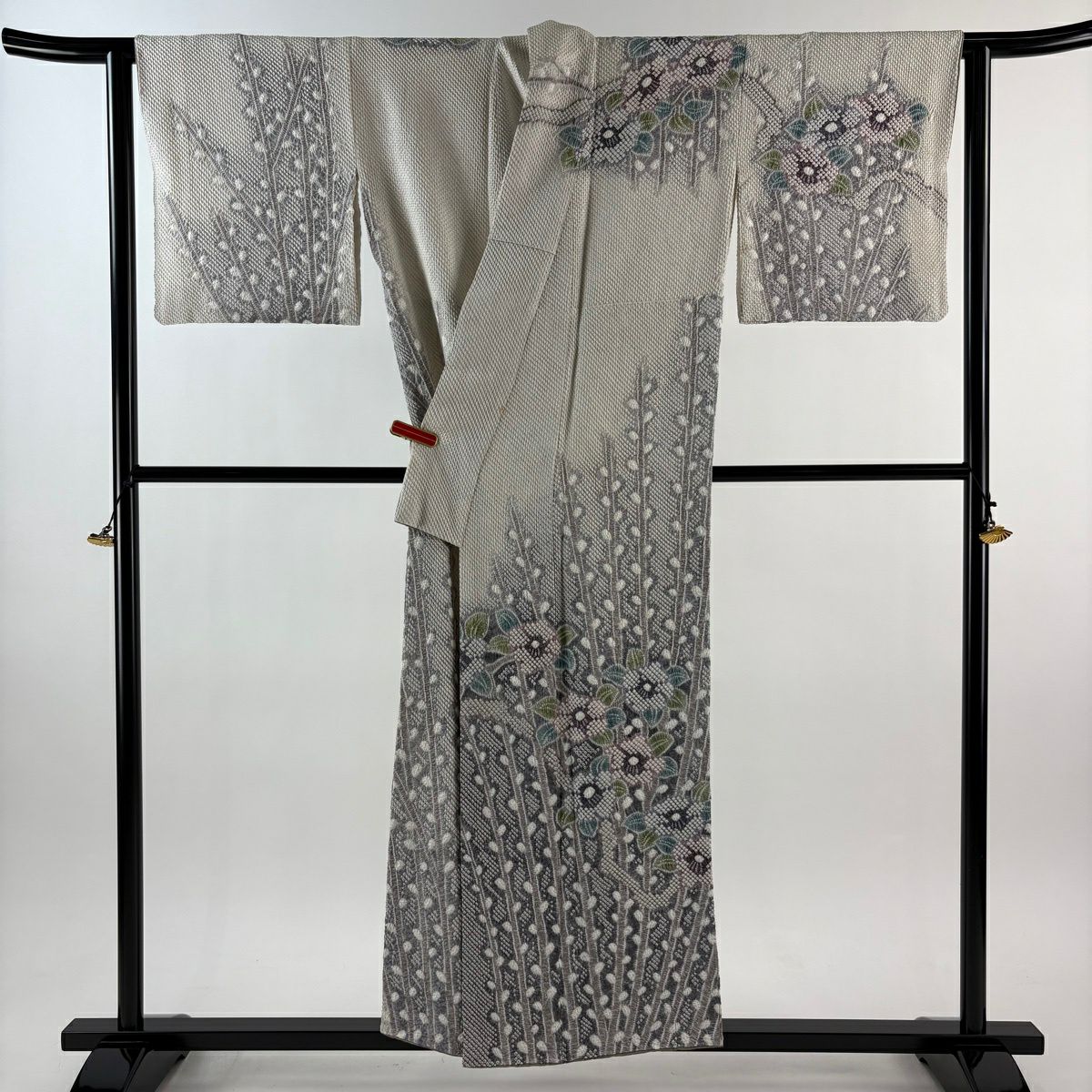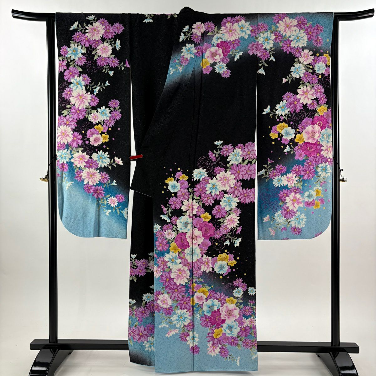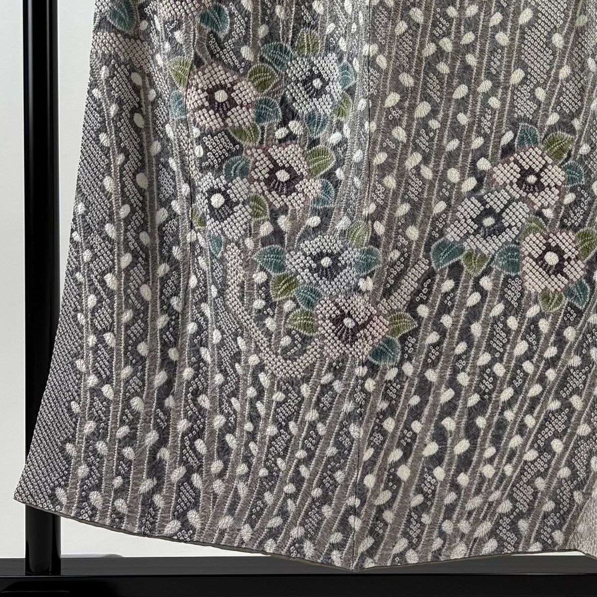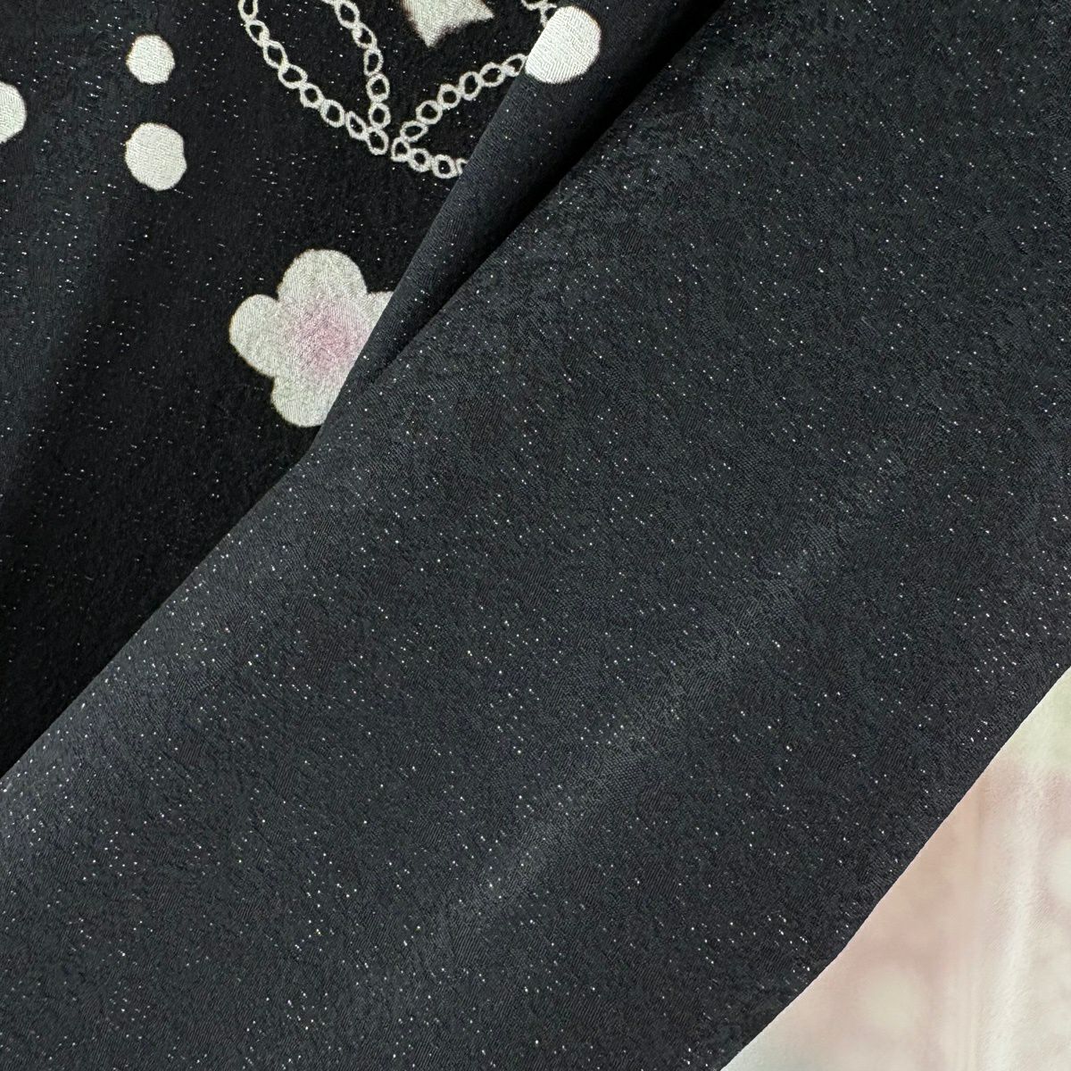 50%OFF 【美品】 小紋 身丈158.5cm 裄丈63cm S 袷 草花 疋田柄 黒 正絹 逸品 K50