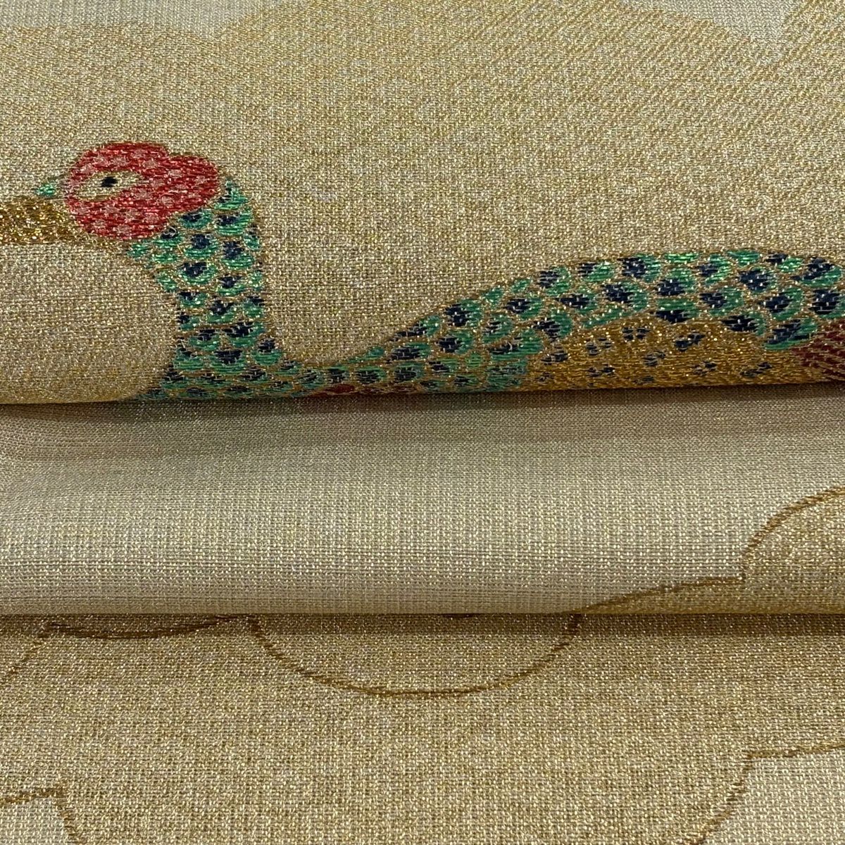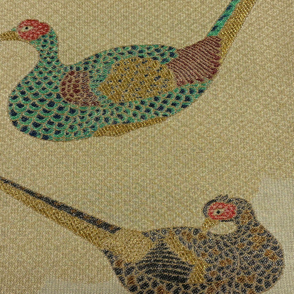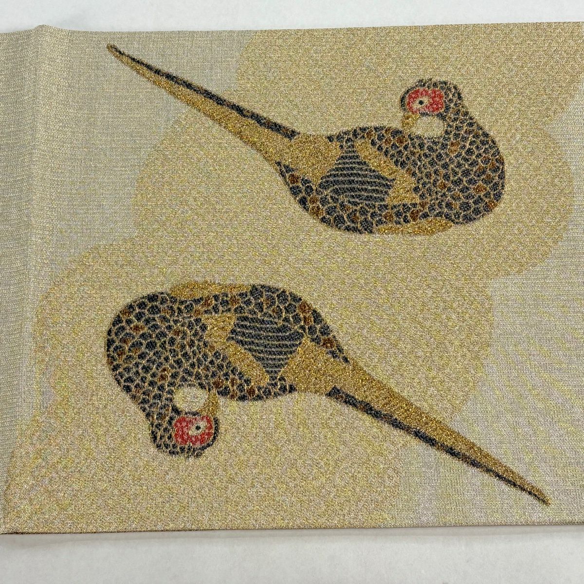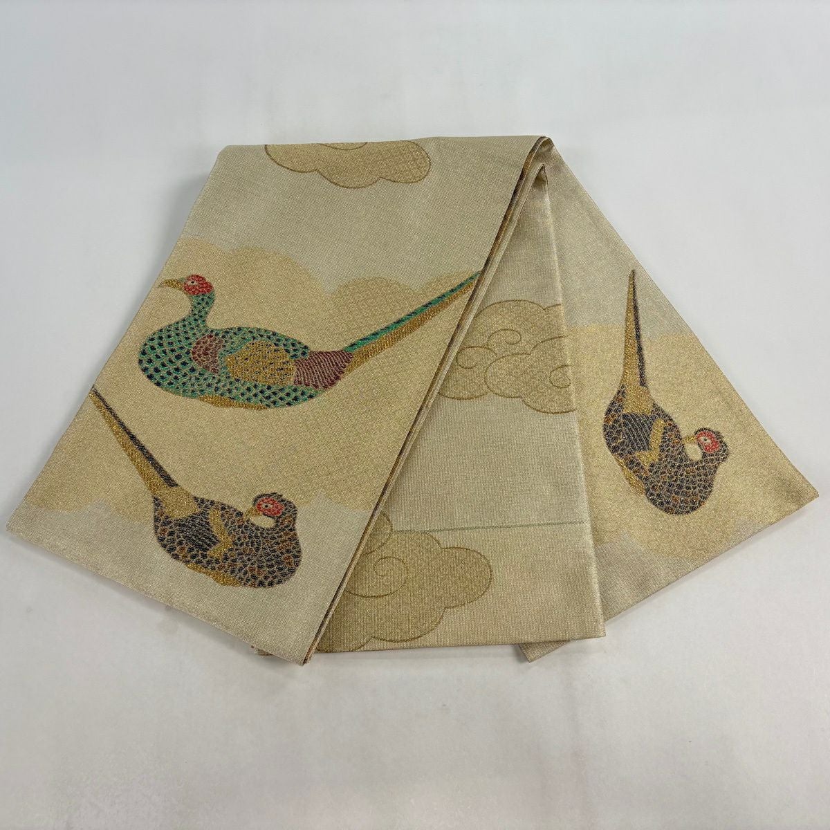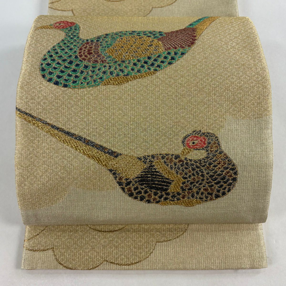 50%OFF 【美品】 袋帯 逸品 誉田屋源兵衛 落款あり 雉 雲文 金糸 箔 金色 お太鼓柄 正絹 K50