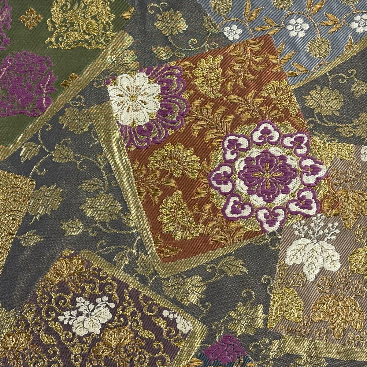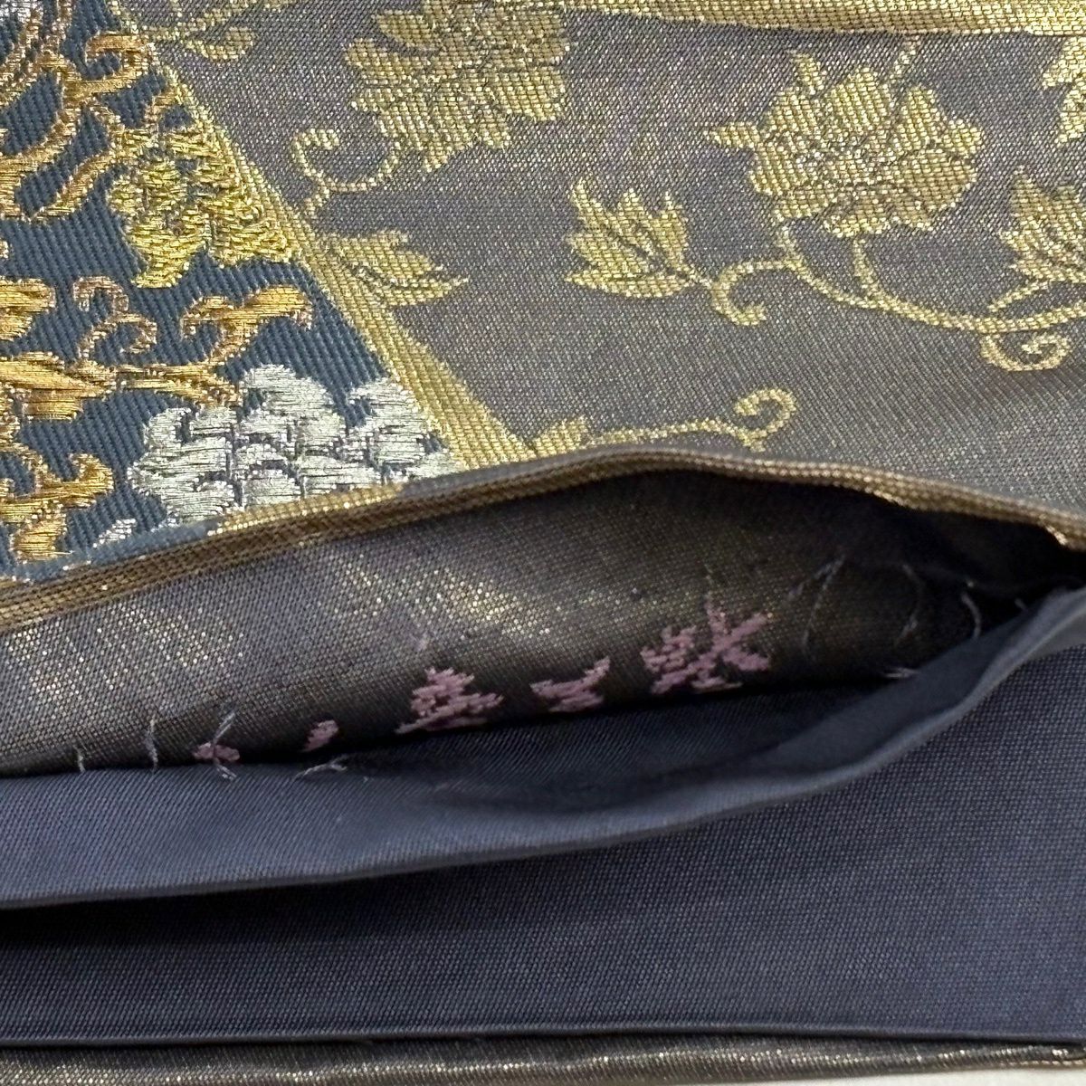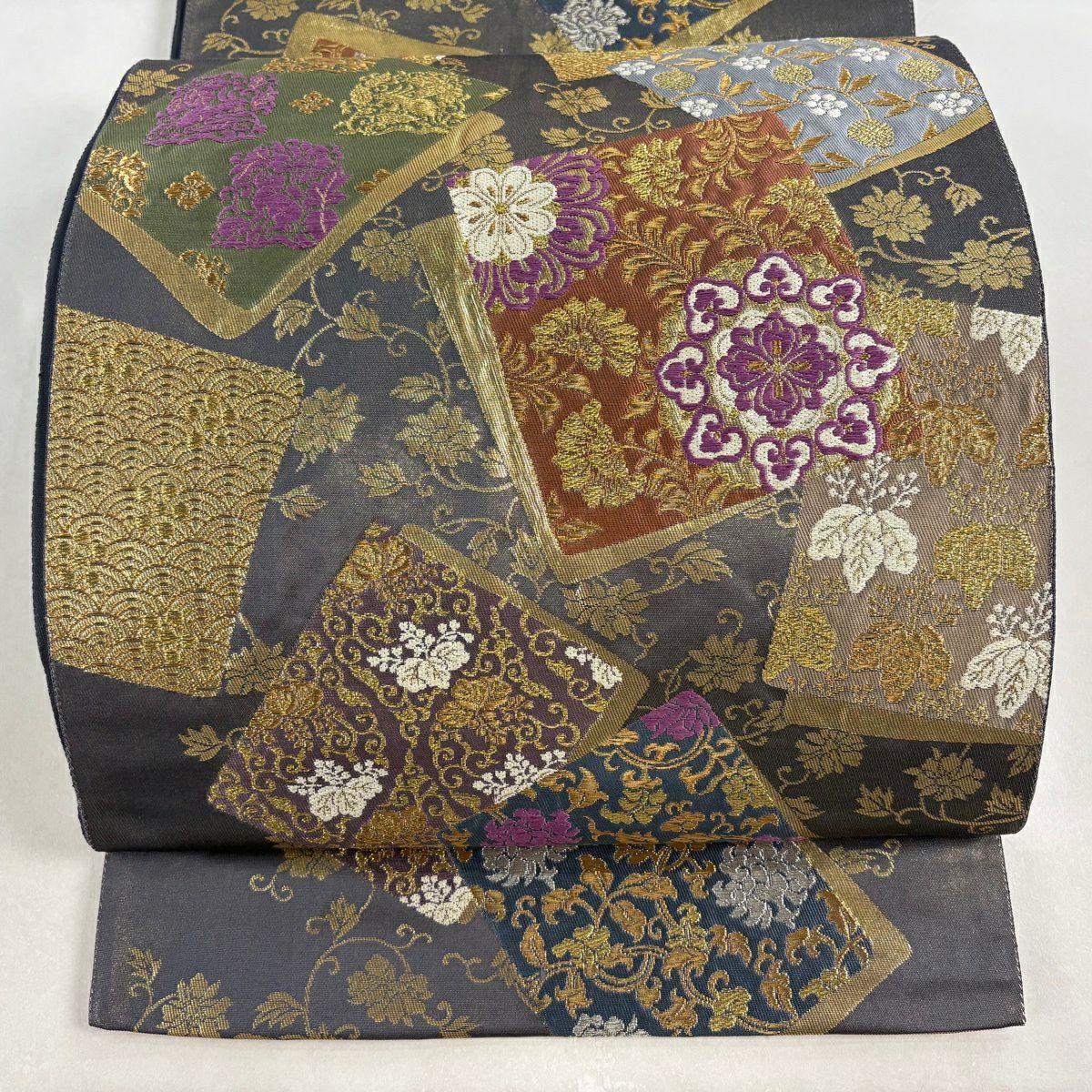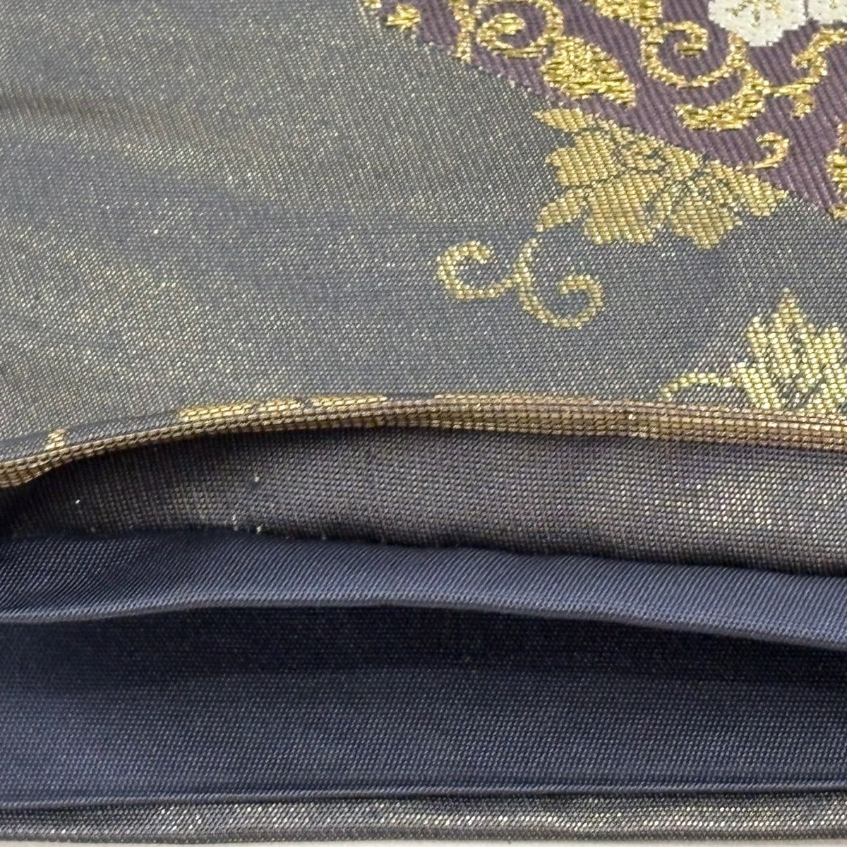 【最終値引き】 70%OFF 袋帯 逸品 河合美術織物 落款あり 菊 葡萄 唐織 灰色 六通 正絹 K70