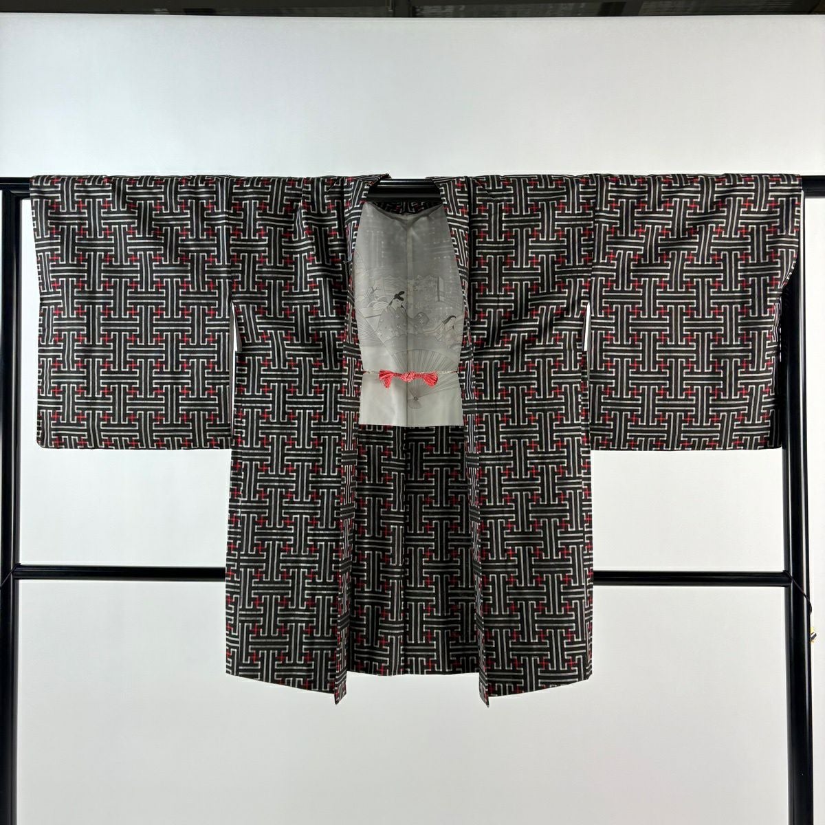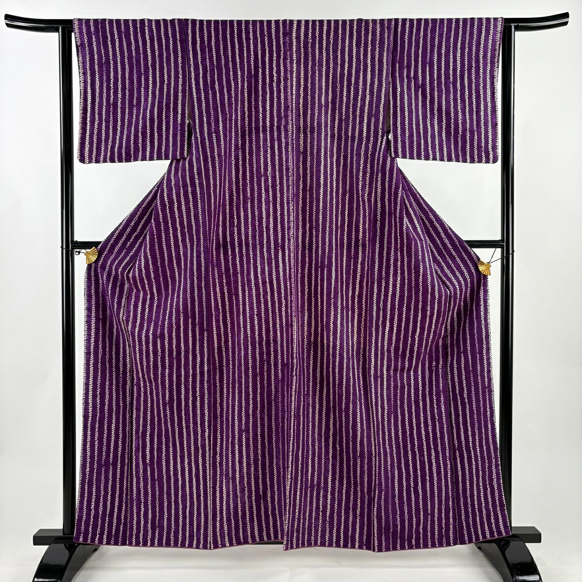 50%OFF 【美品】 道中着 身丈123cm 裄丈64cm M 和装コート 地紋 濃紫 正絹 逸品 K50