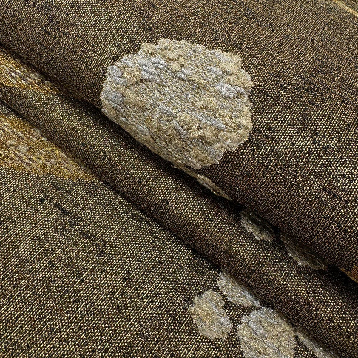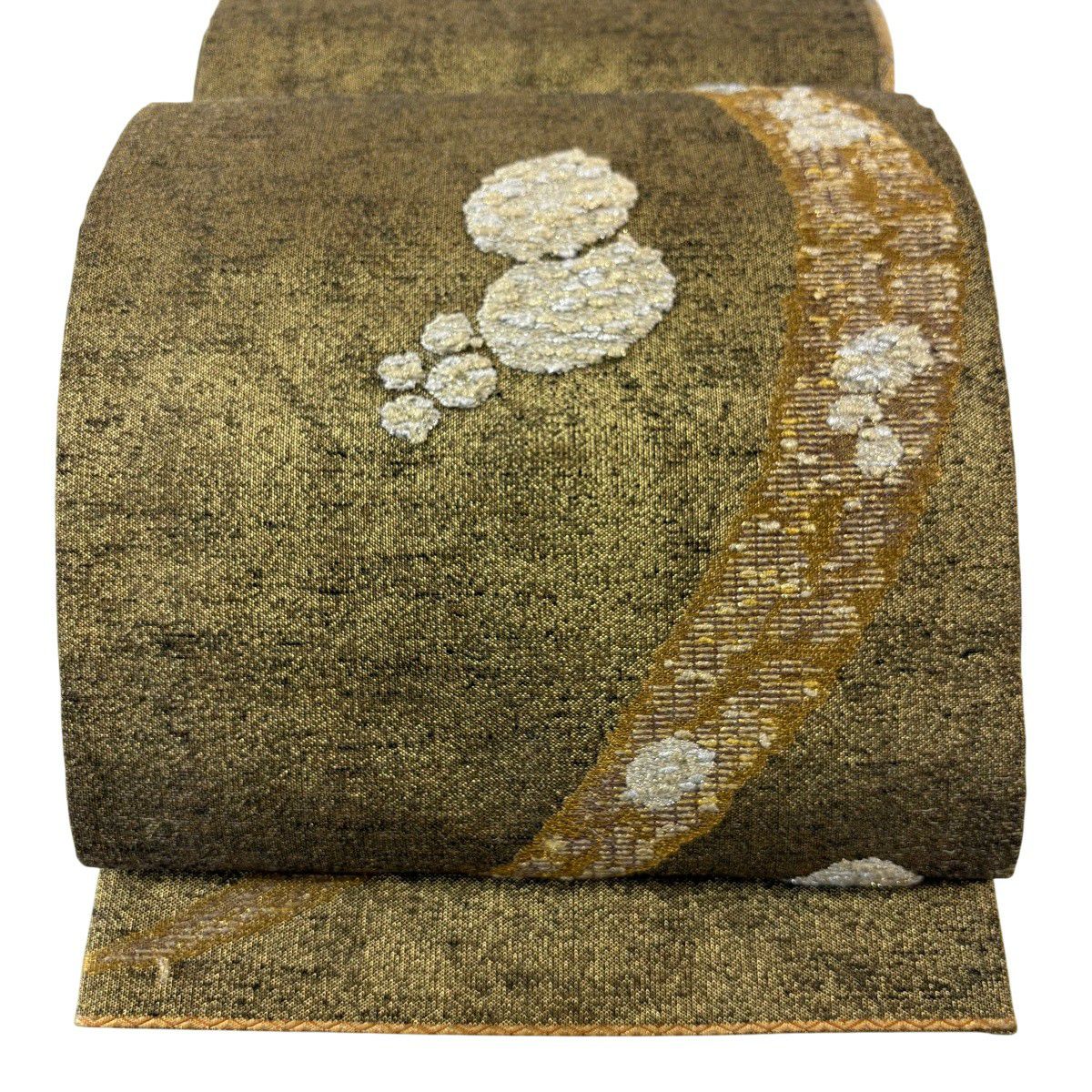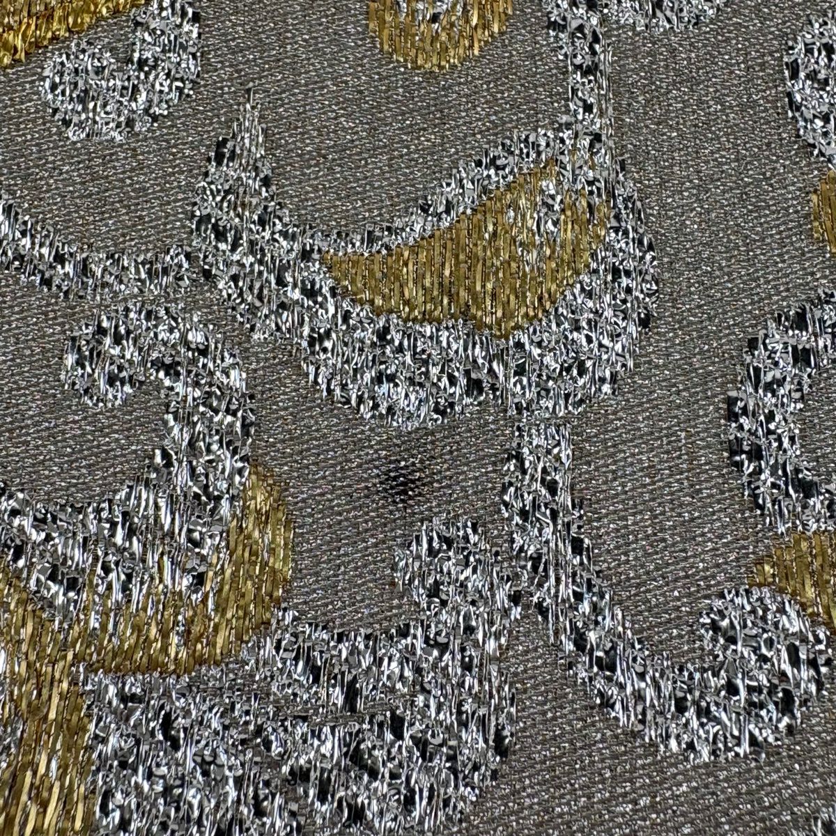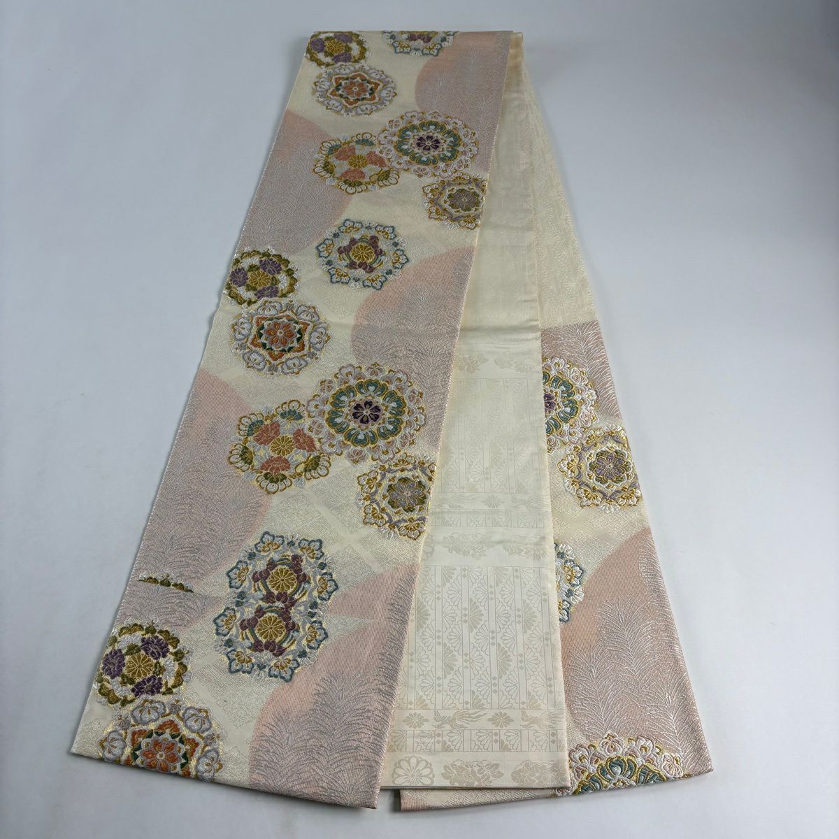 20%OFF 袋帯 逸品 草木染 新小石丸 大王松おしるし文 華文 刺繍 金糸 クリーム 六通 正絹 K30