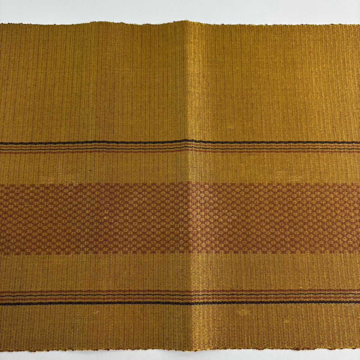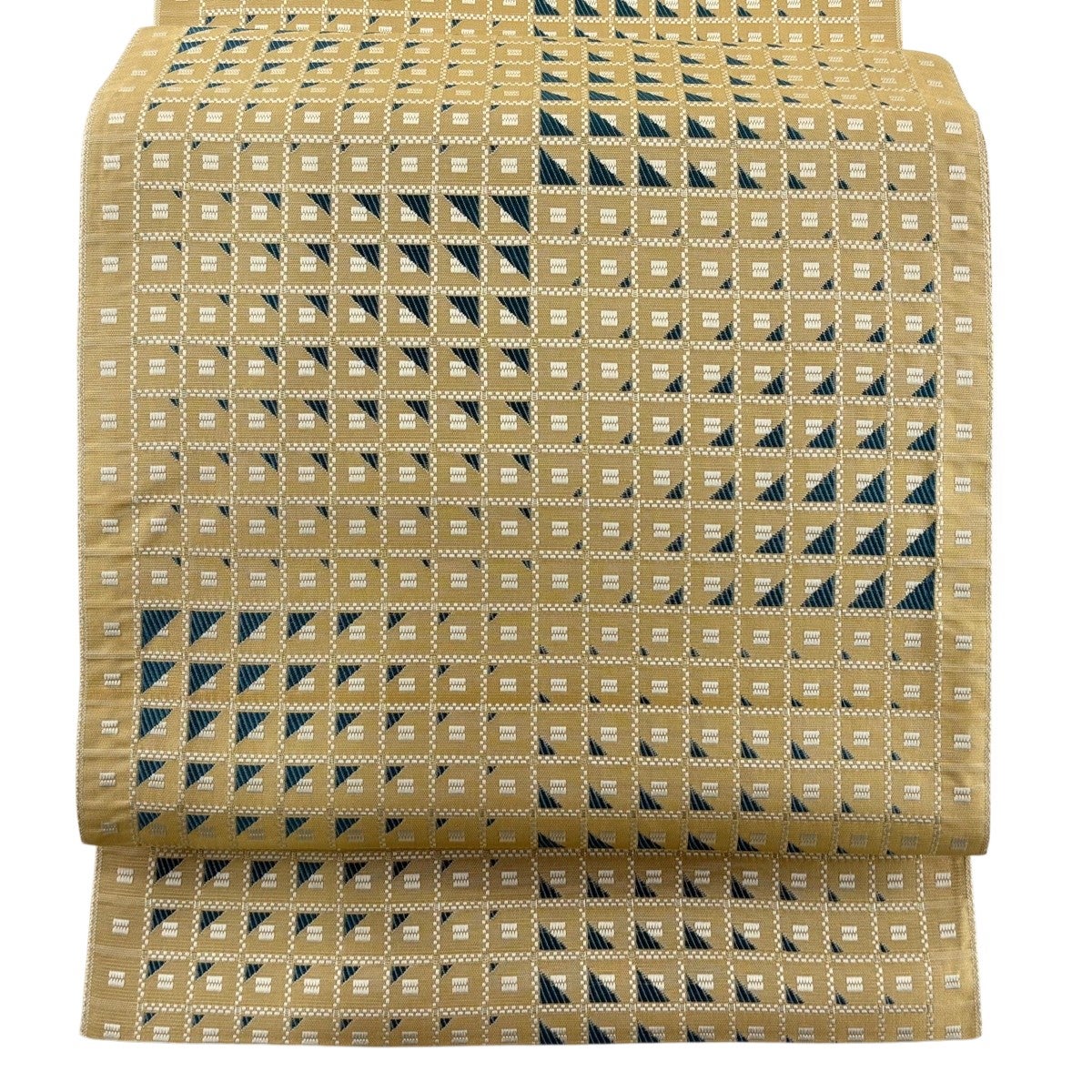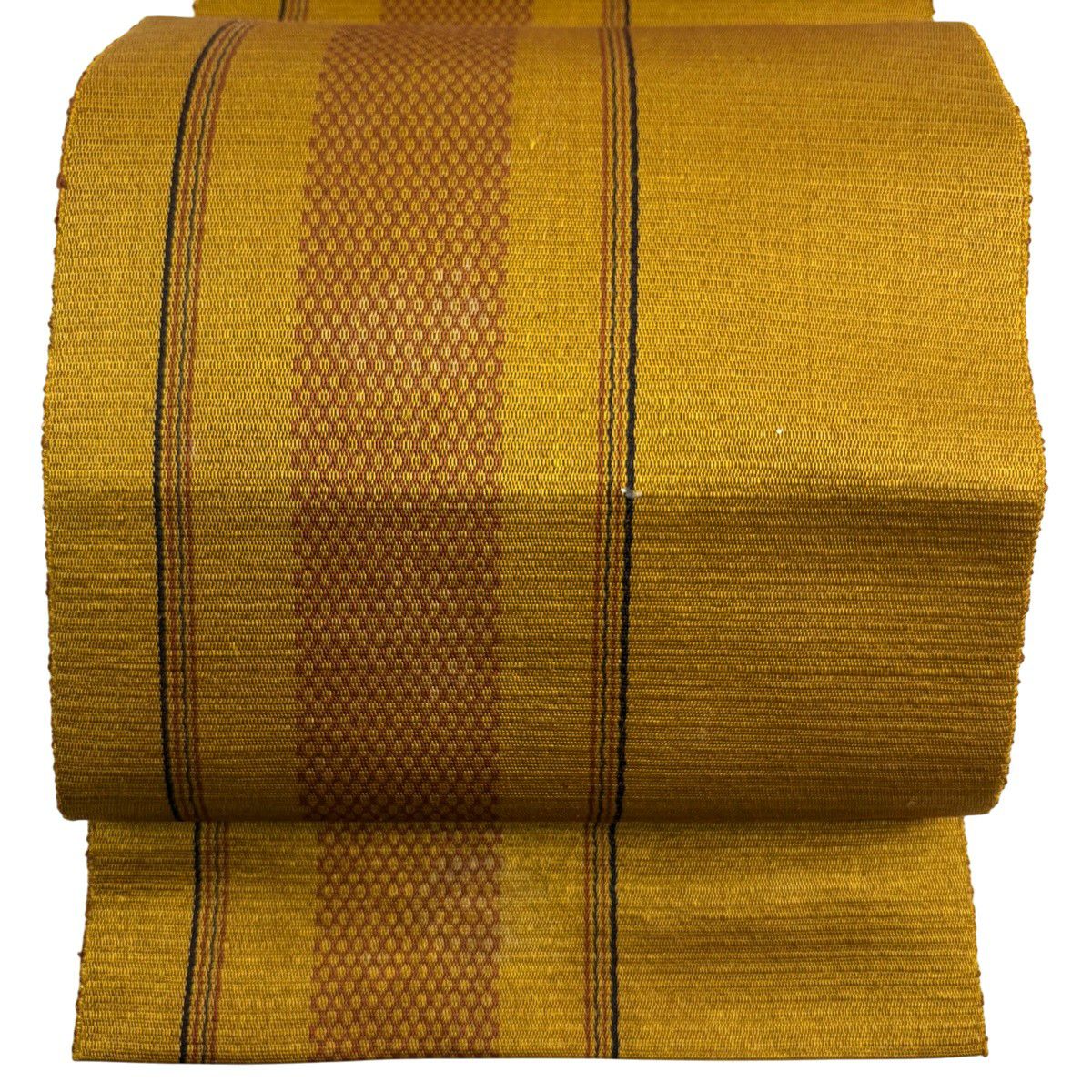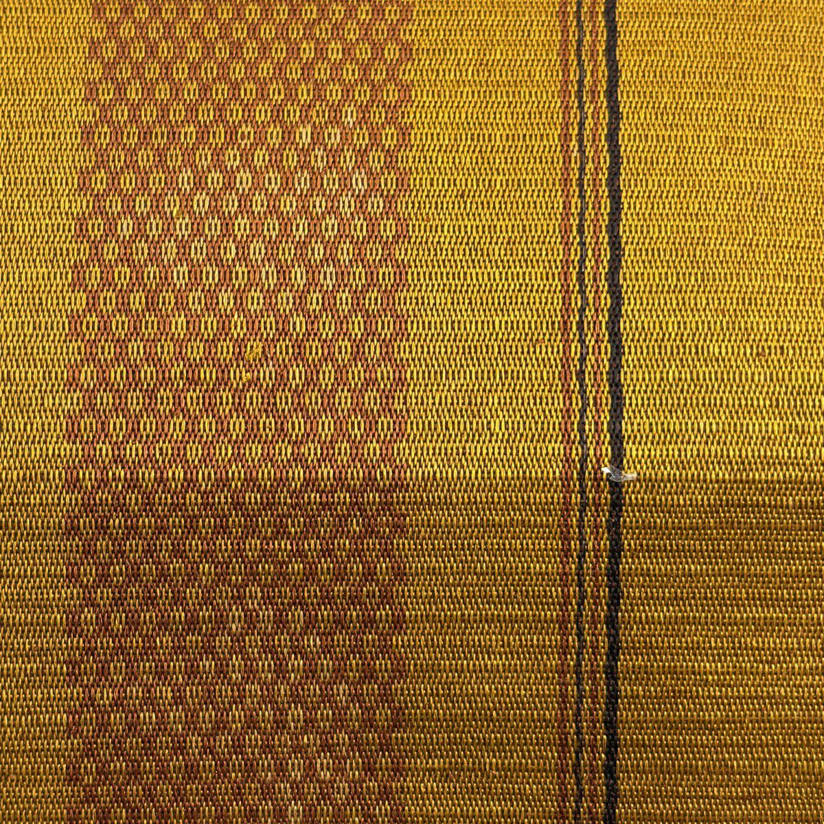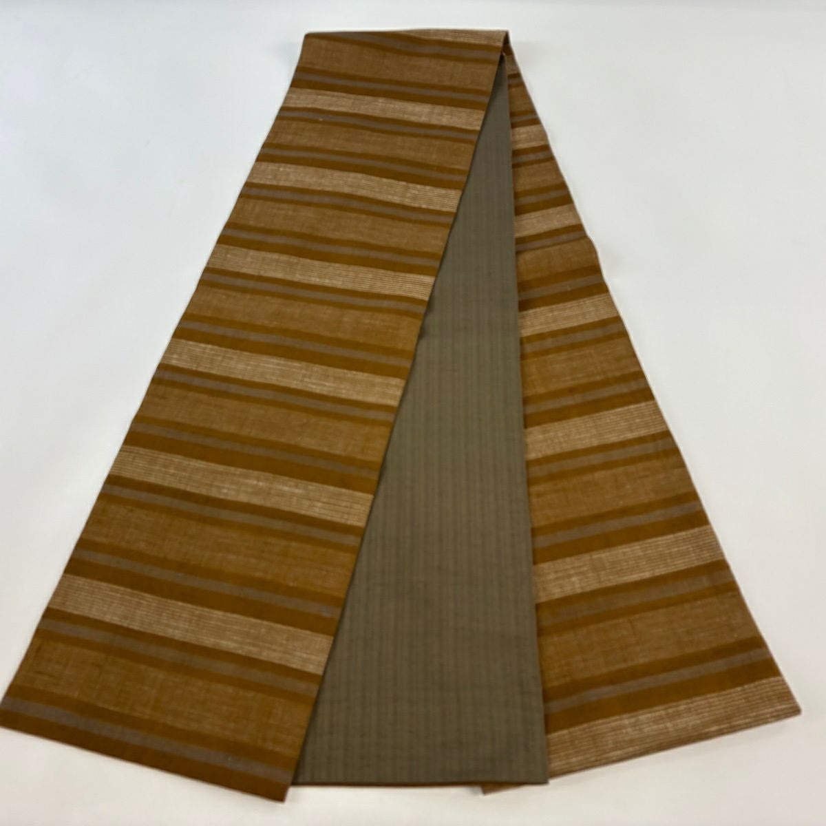 20%OFF 【美品】 名古屋帯 逸品 証紙あり 八寸名古屋帯 松葉仕立て 縞 幾何学模様 山吹茶色 正絹 K30
