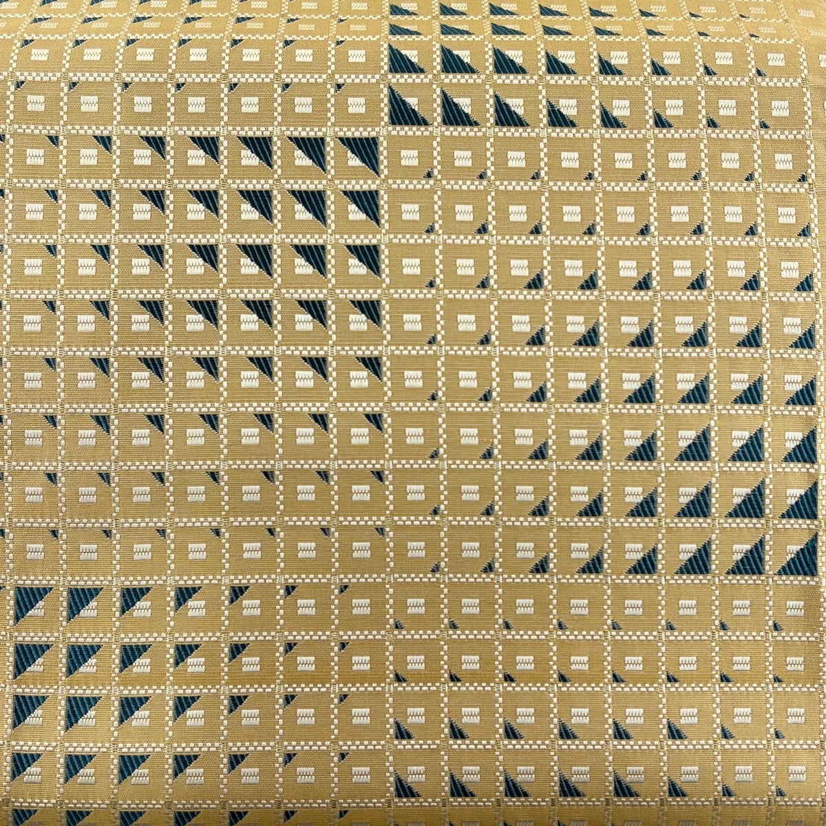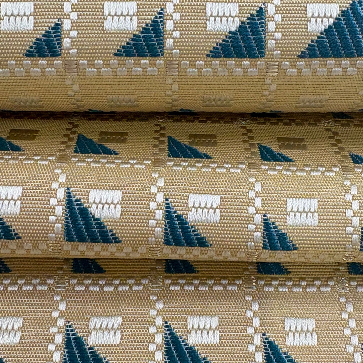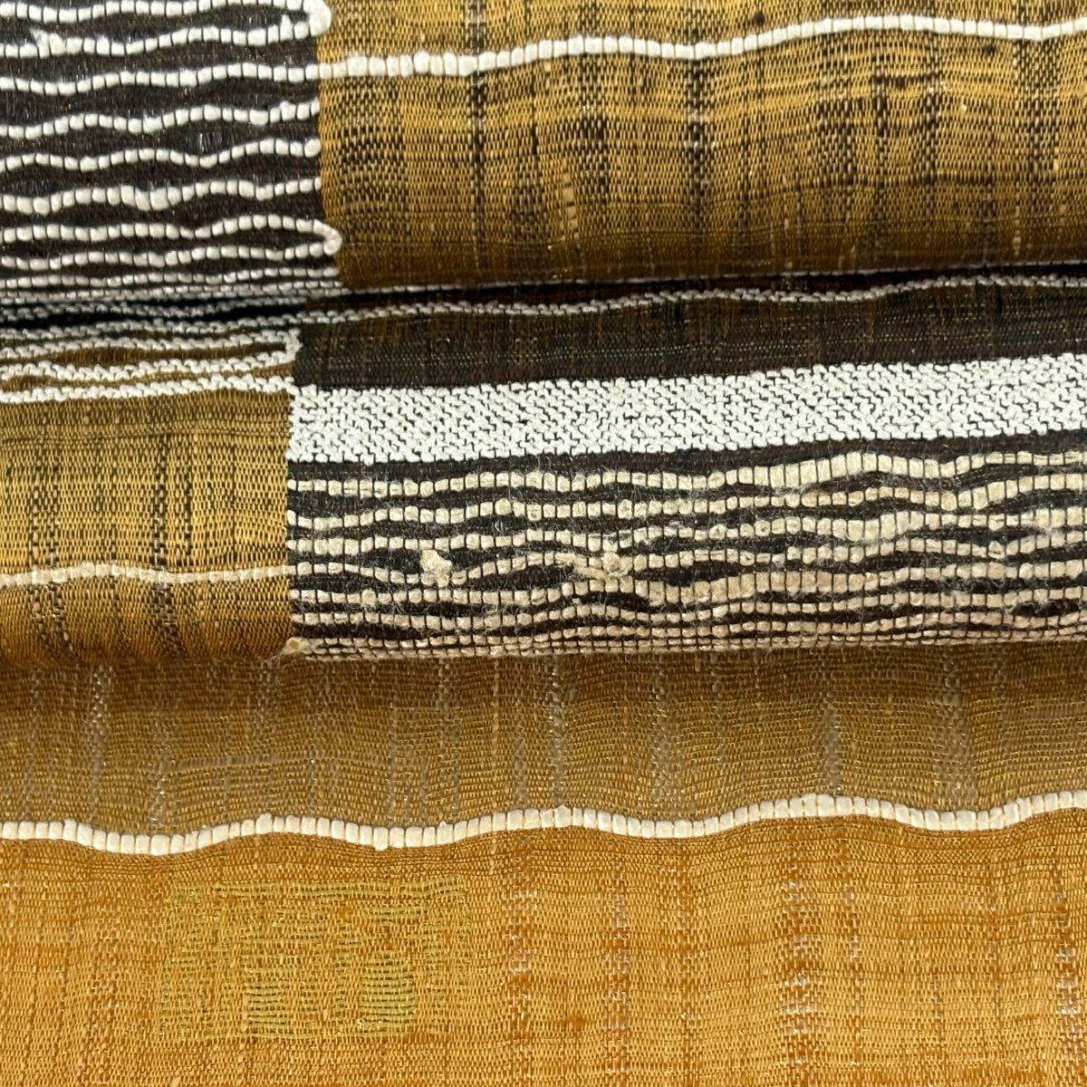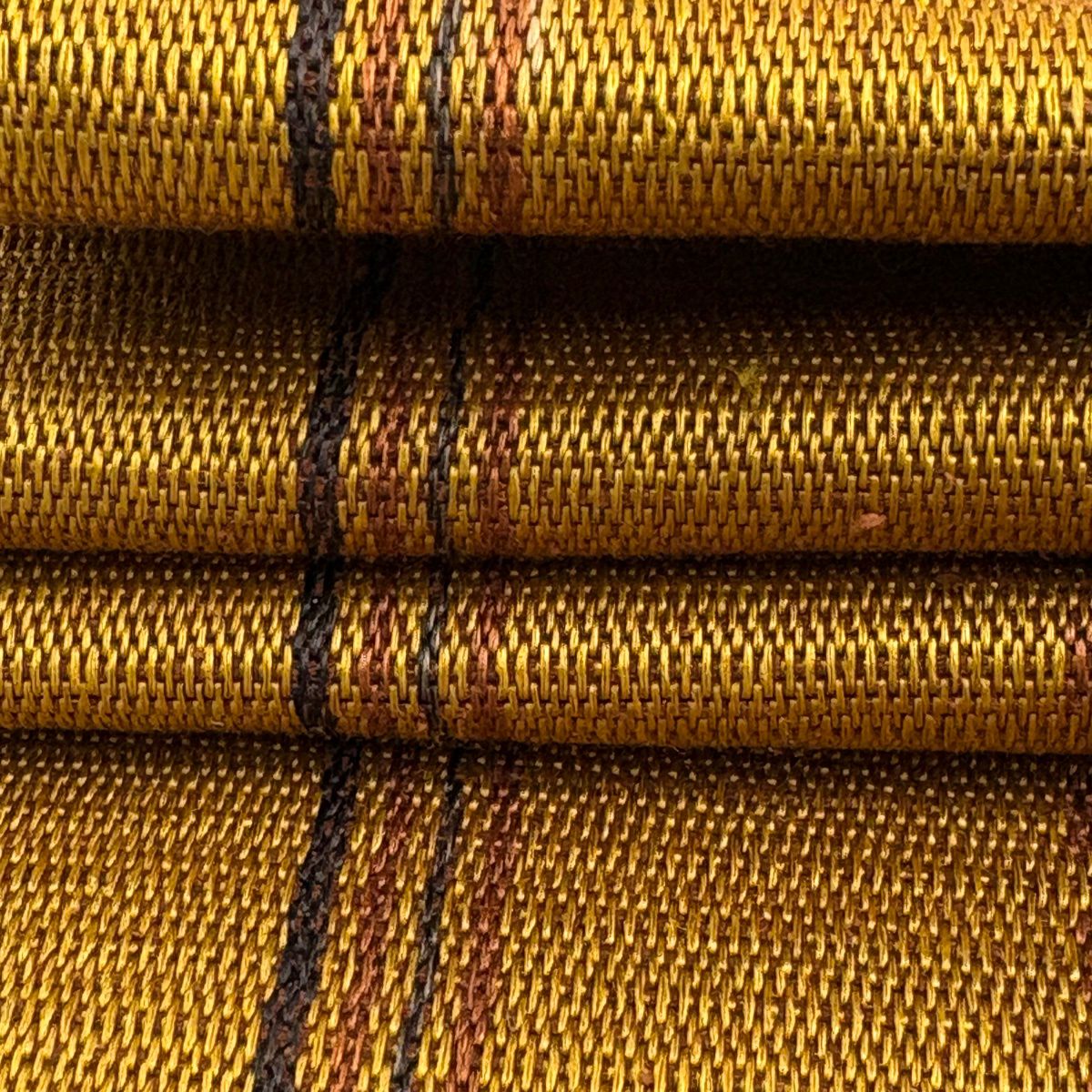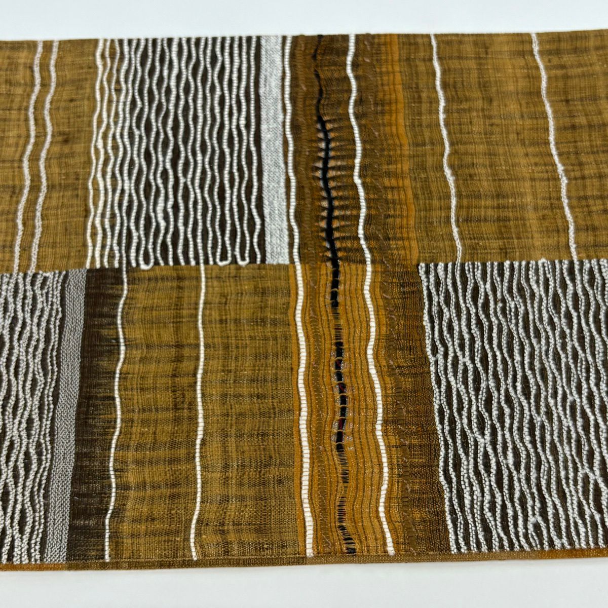 20%OFF 【美品】 名古屋帯 逸品 証紙あり 八寸名古屋帯 松葉仕立て 縞 幾何学模様 山吹茶色 正絹 K30