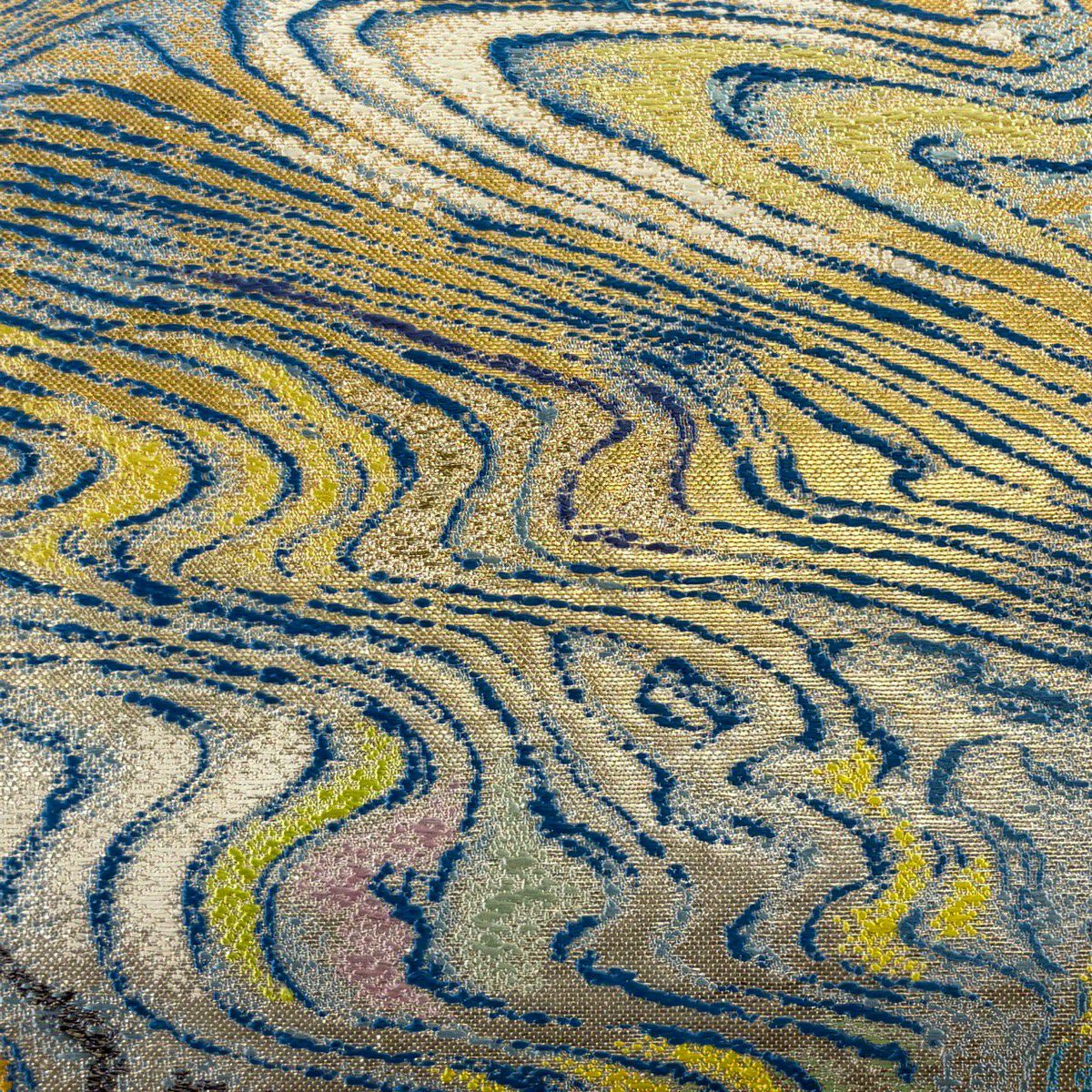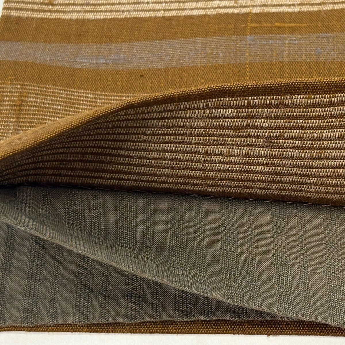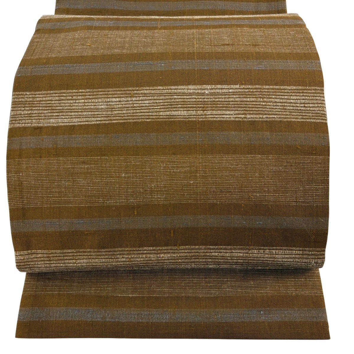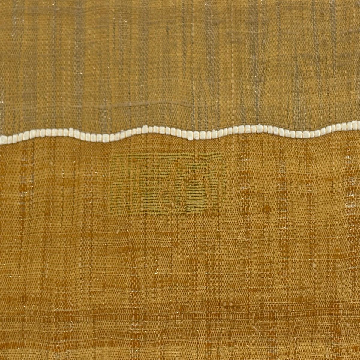40%OFF 【美品】 袋帯 逸品 渡文 落款あり 証紙あり よろけ縞 金糸 山吹茶色 お太鼓柄 正絹 K30