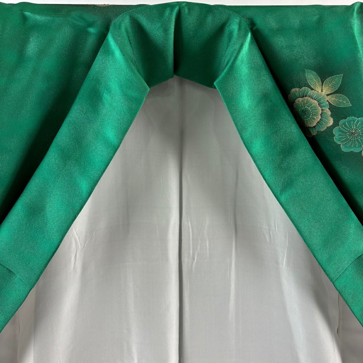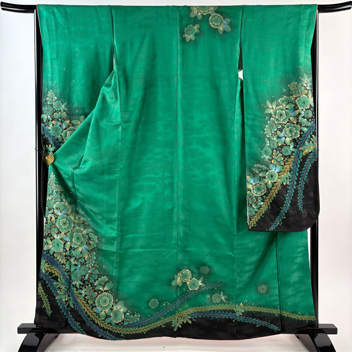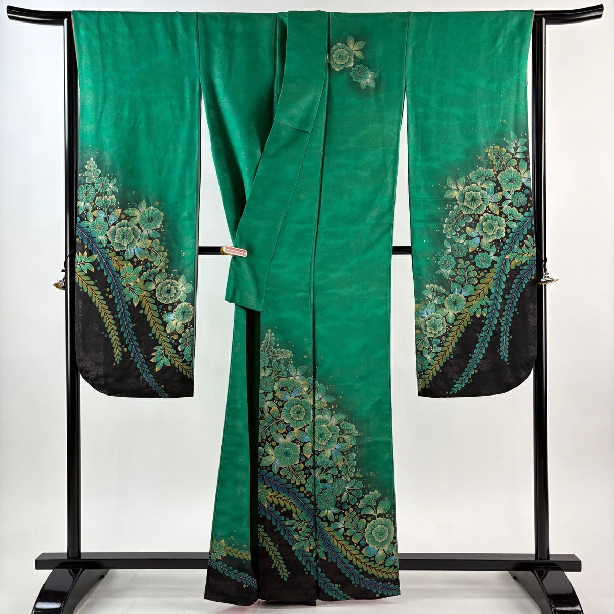 40%OFF 【美品】 振袖 身丈163cm 裄丈66cm M 袷 草花 銀通し 絞り 緑 正絹 逸品 K30