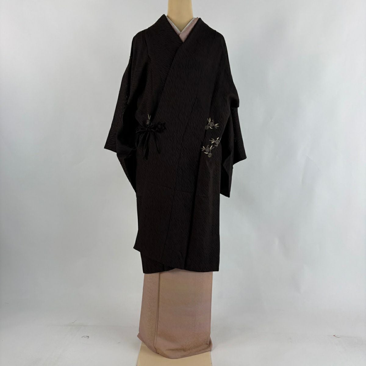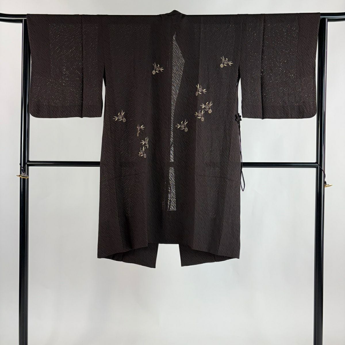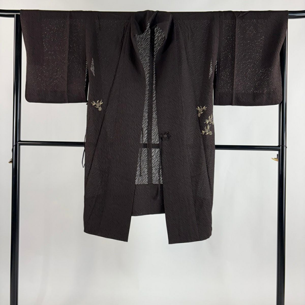 40%OFF 【美品】 道中着 身丈106cm 裄丈66cm M 和装コート 笹蔓文 焦茶色 正絹 逸品 K30