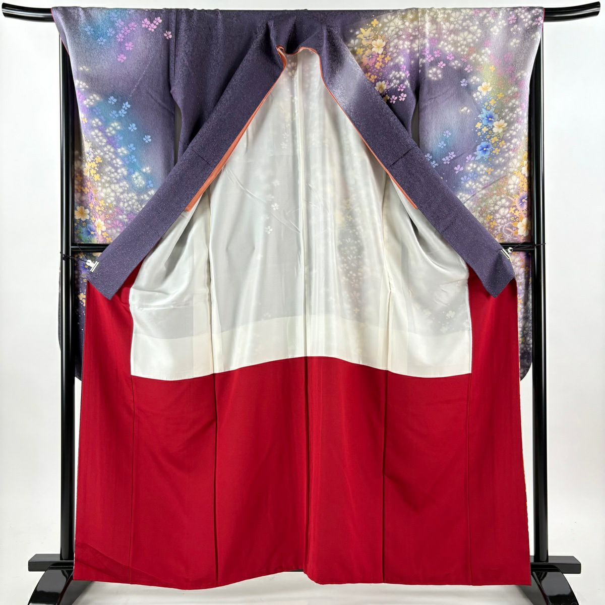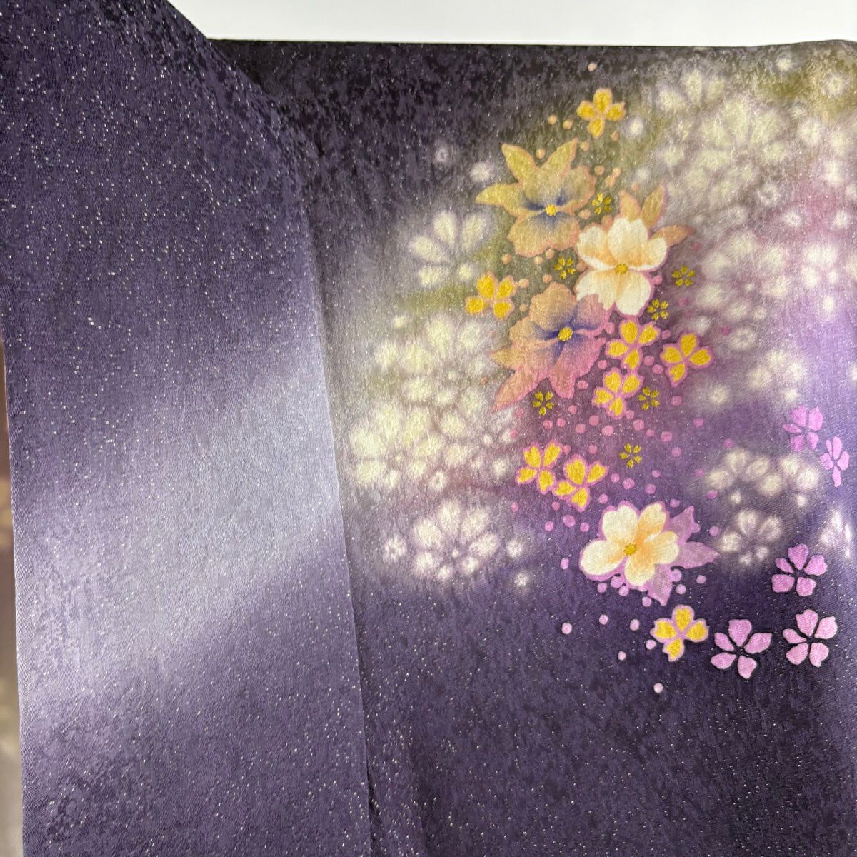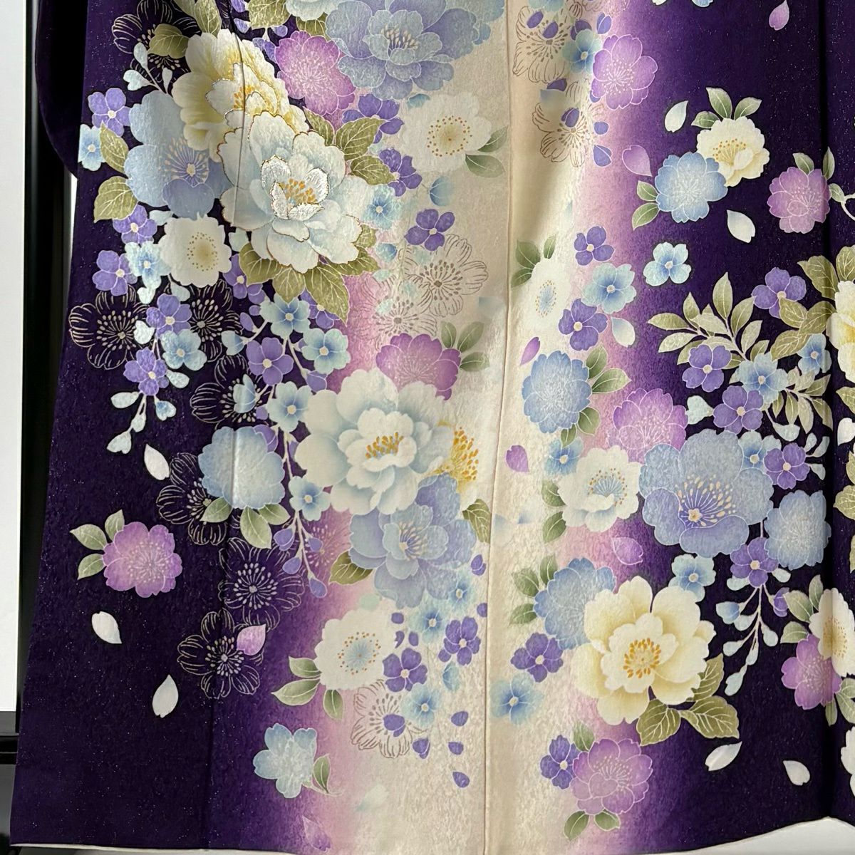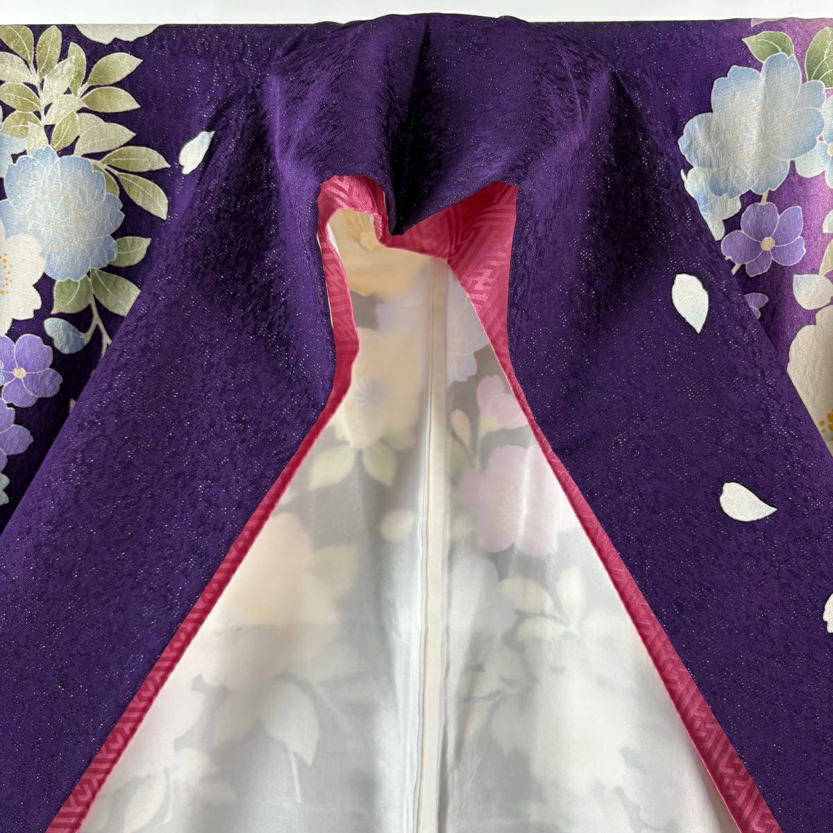 40%OFF 振袖 身丈164cm 裄丈68.5cm L 袷 草花 花びら 銀通し 箔 紫 正絹 逸品 K30