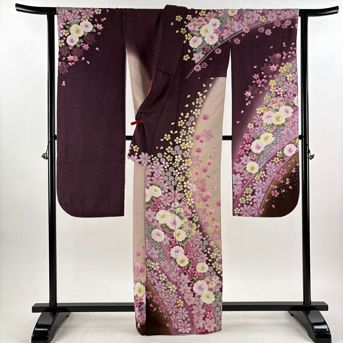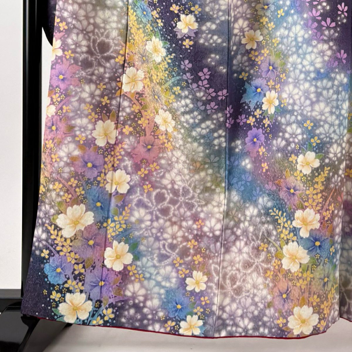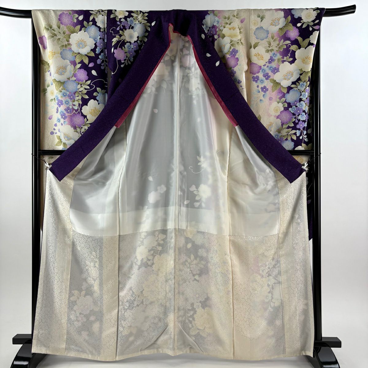 40%OFF 振袖 身丈164cm 裄丈68.5cm L 袷 草花 花びら 銀通し 箔 紫 正絹 逸品 K30