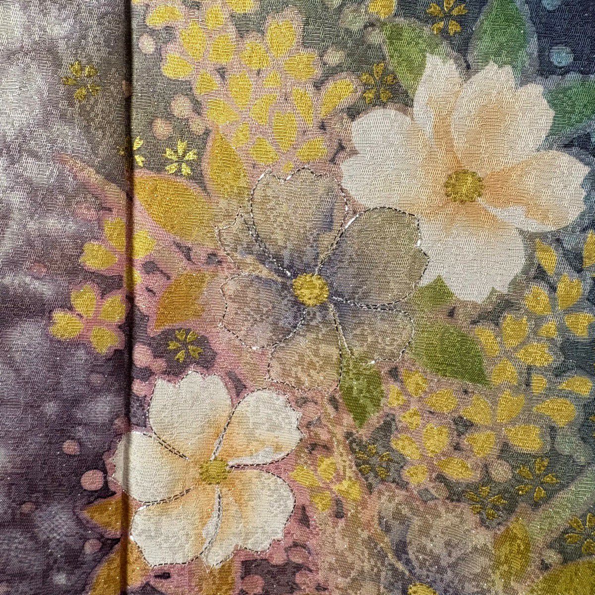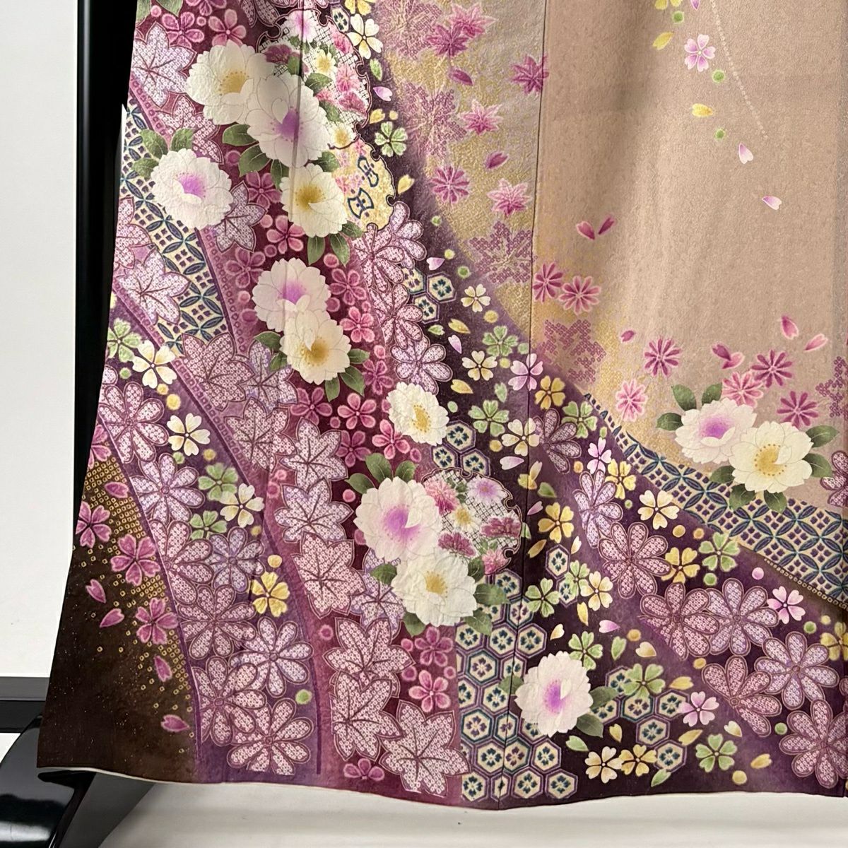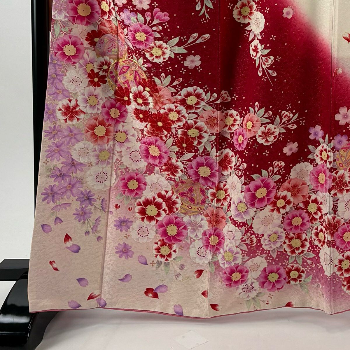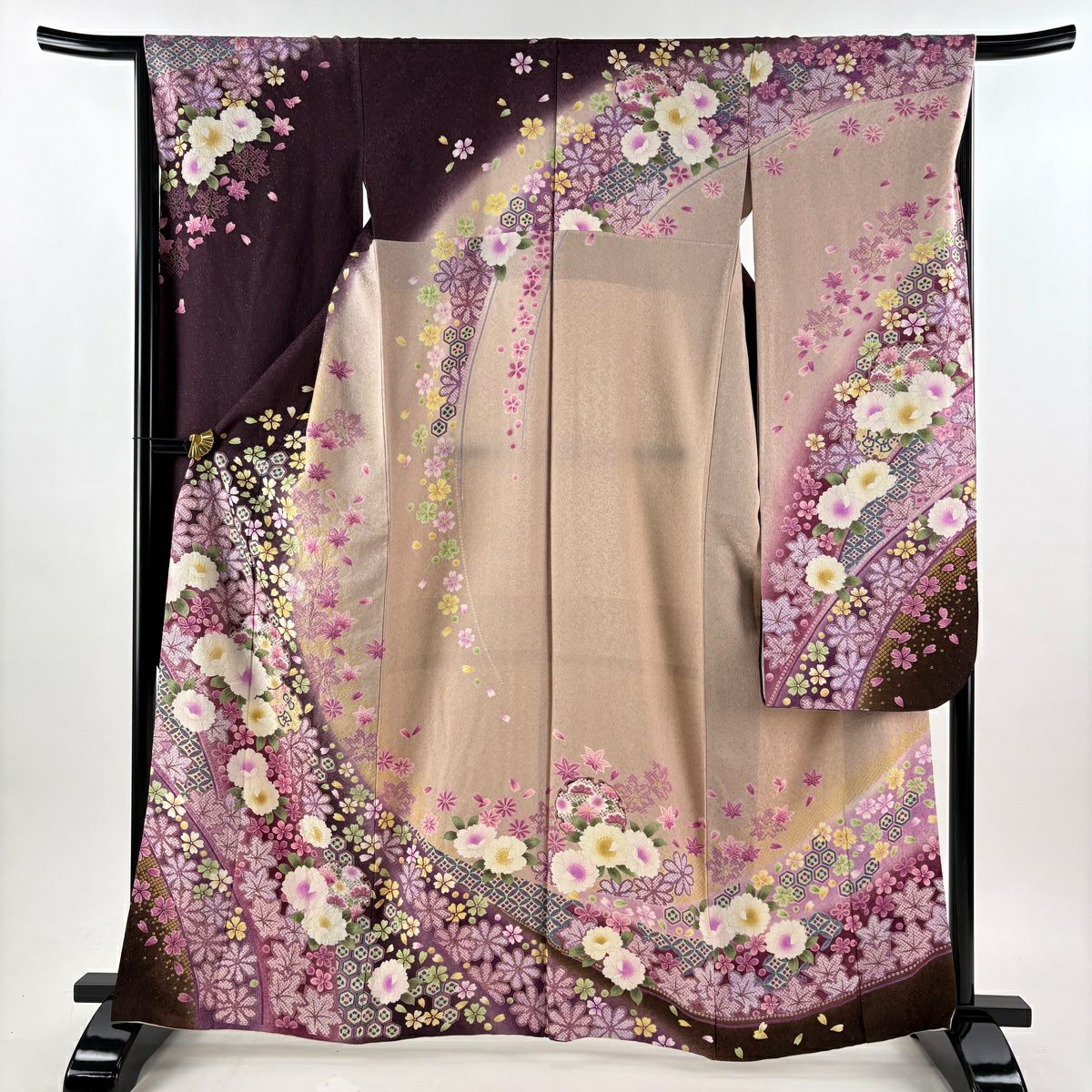 40%OFF 振袖 身丈164cm 裄丈68.5cm L 袷 草花 花びら 銀通し 箔 紫 正絹 逸品 K30