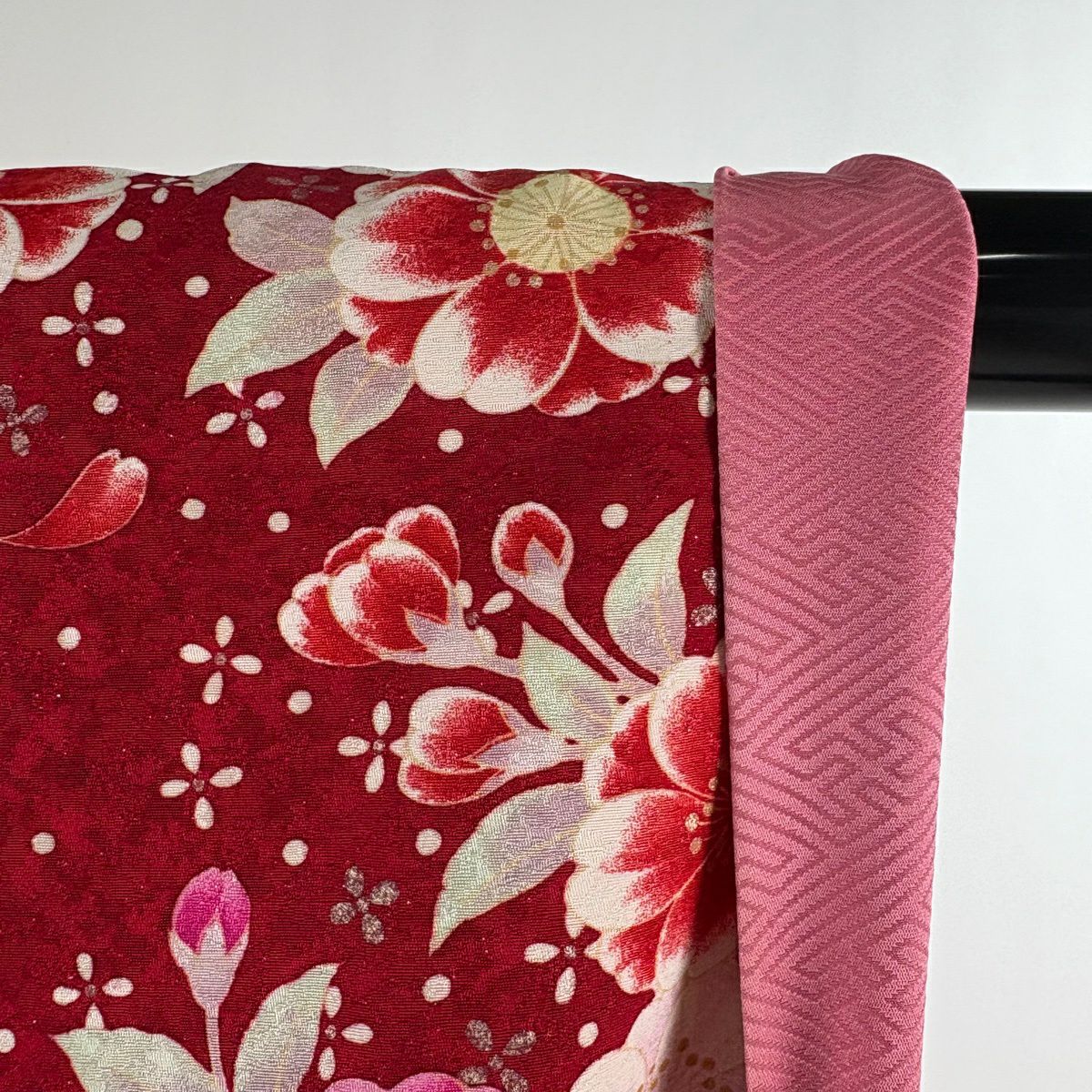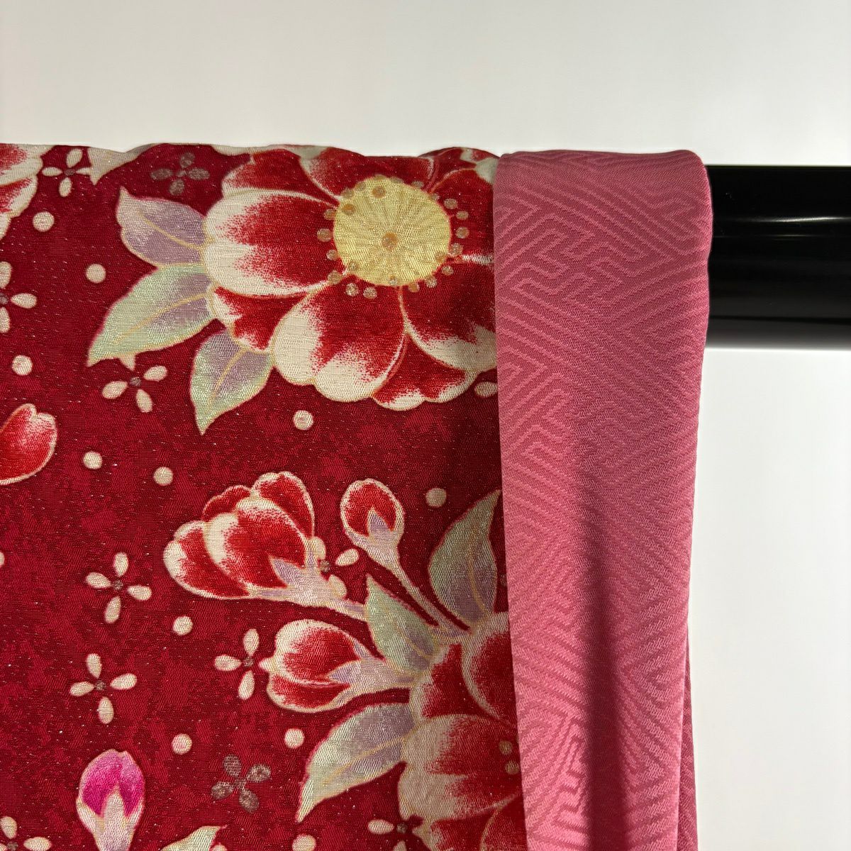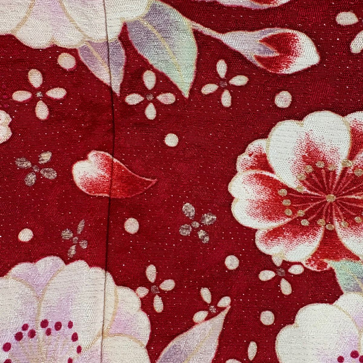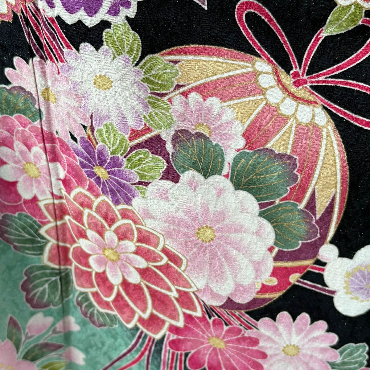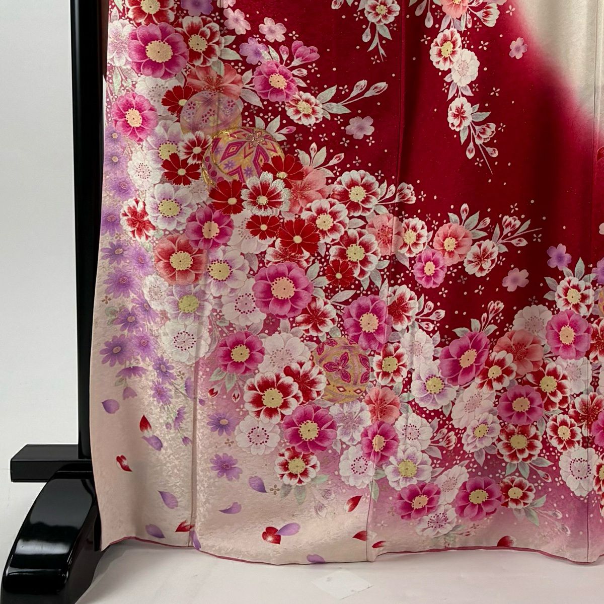 40%OFF 振袖 身丈166.5cm 裄丈65.5cm M 袷 手鞠 草花 銀通し 金糸 赤 正絹 逸品 K30