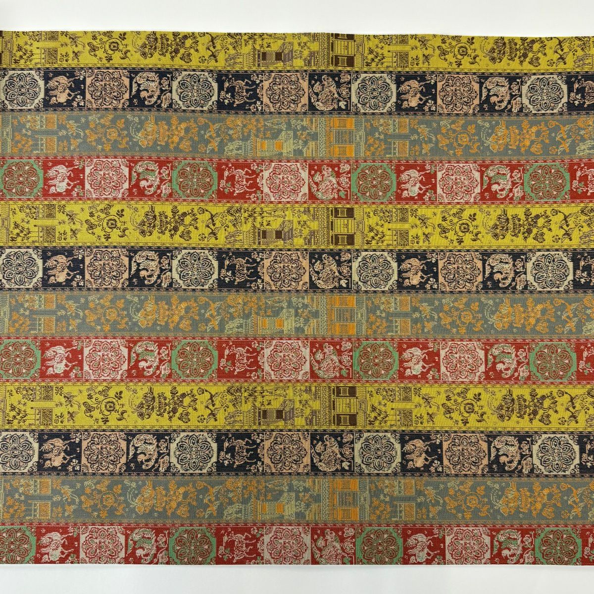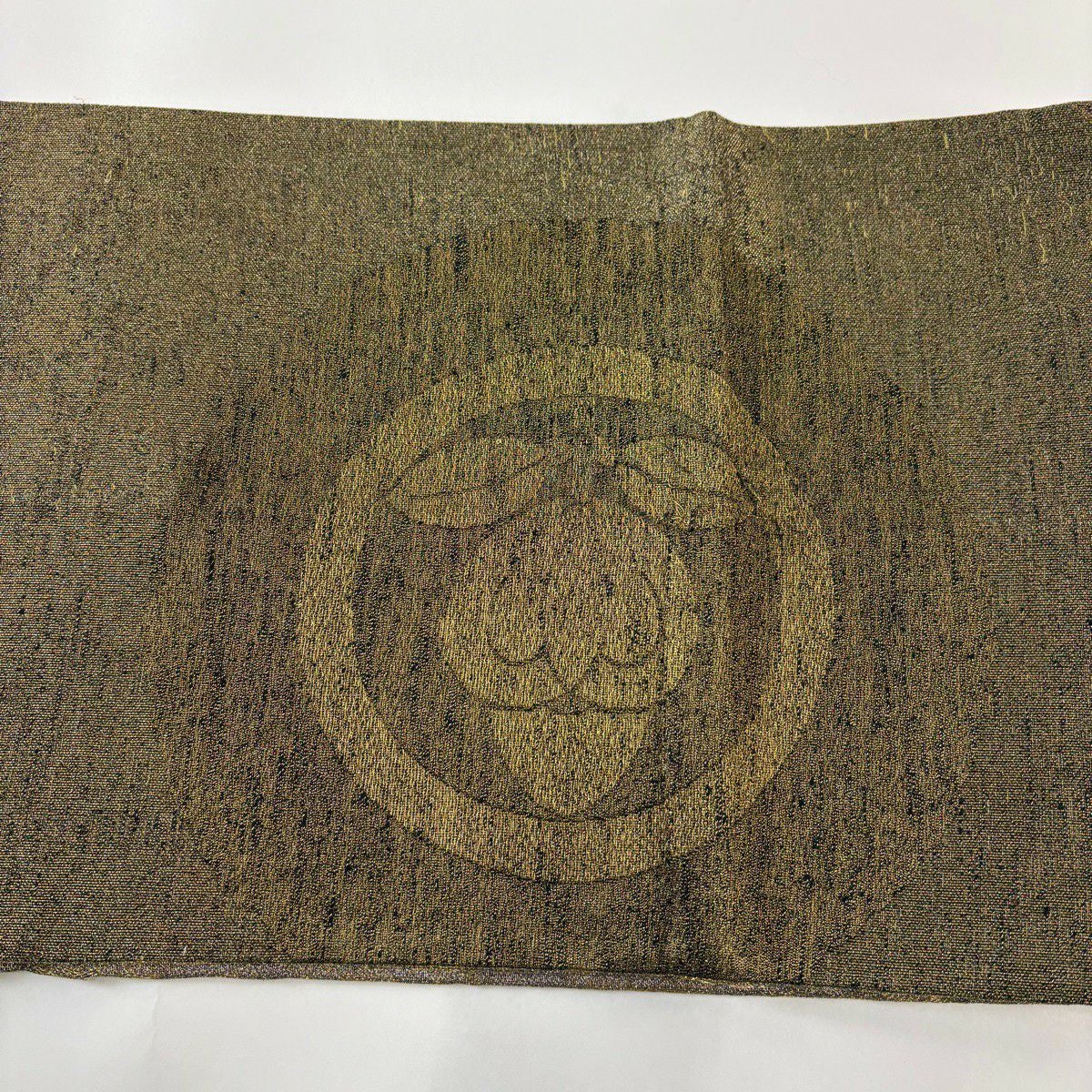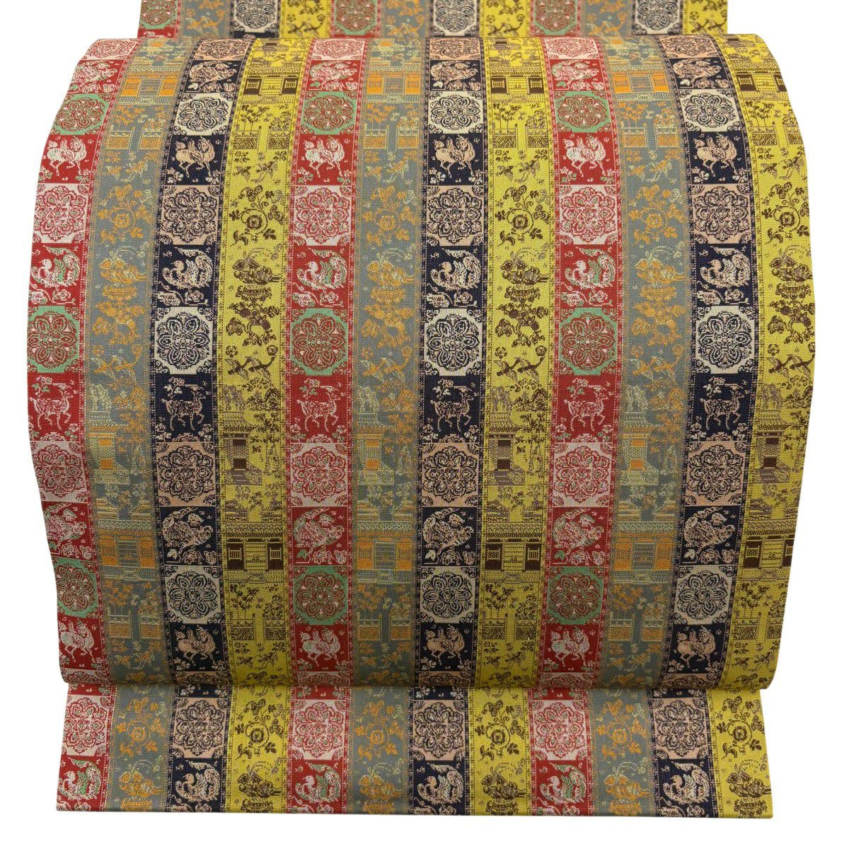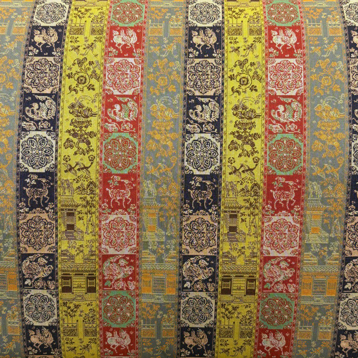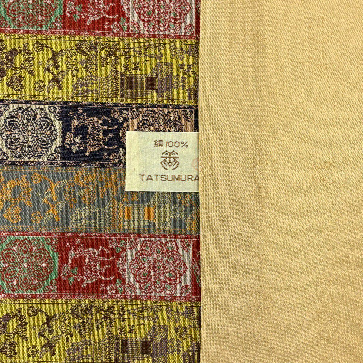 40%OFF 【美品】 開き名古屋帯 逸品 龍村美術織物 比翼仕立て 鹿 建物 金糸 からし色 正絹 K30