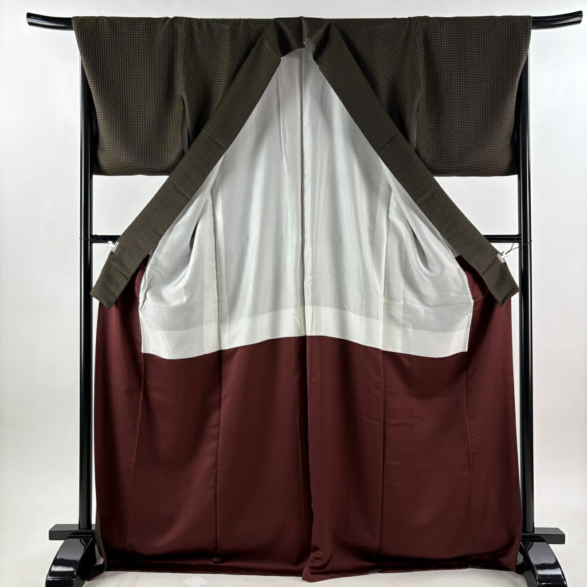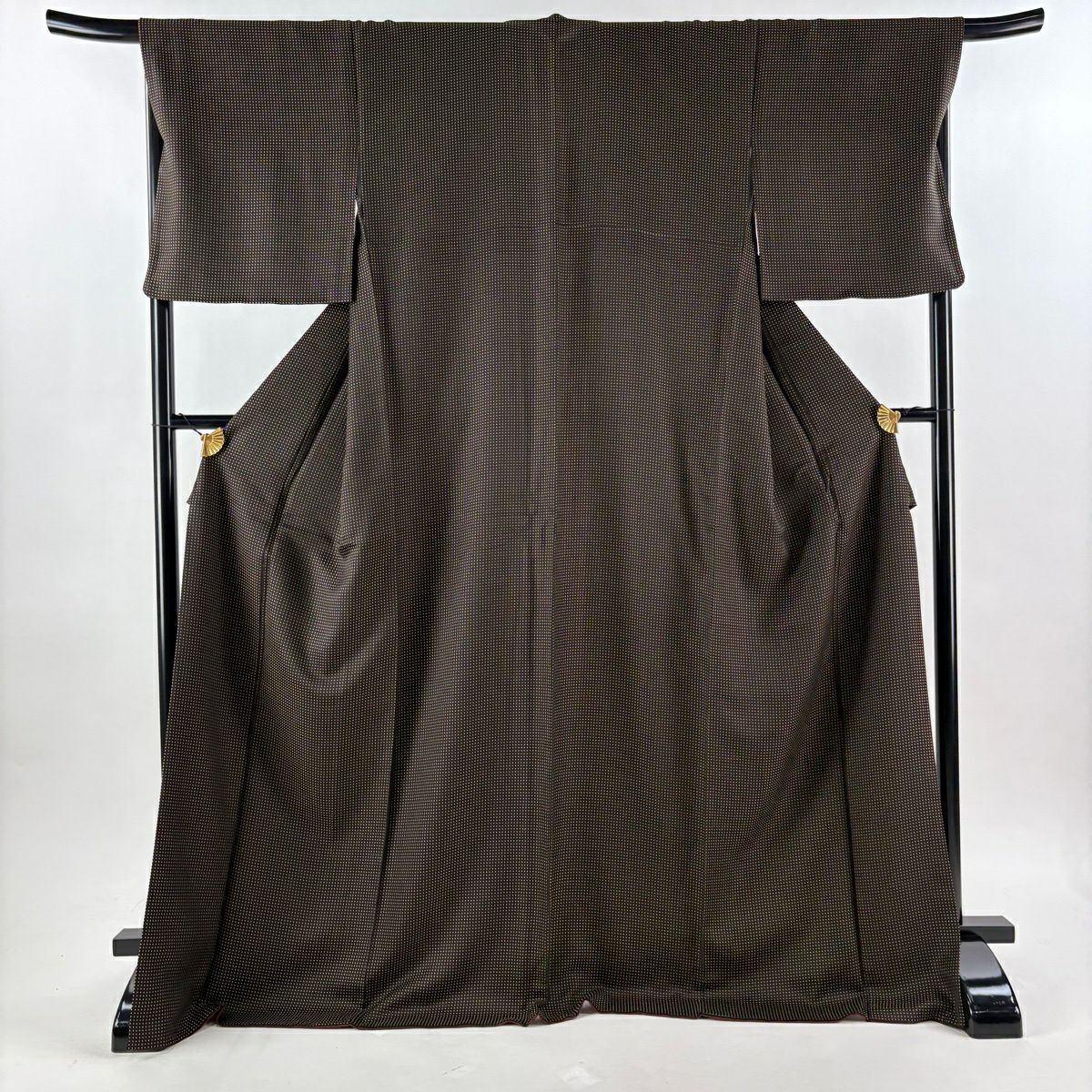 40%OFF 【美品】 お召 身丈173cm 裄丈68.5cm L 袷 ドット柄 焦茶色 正絹 逸品 K30