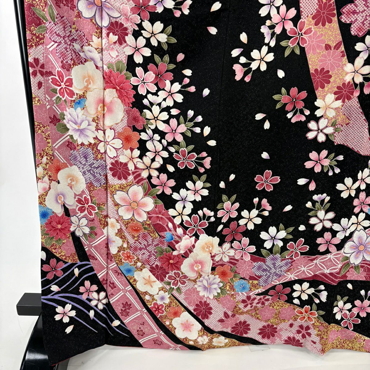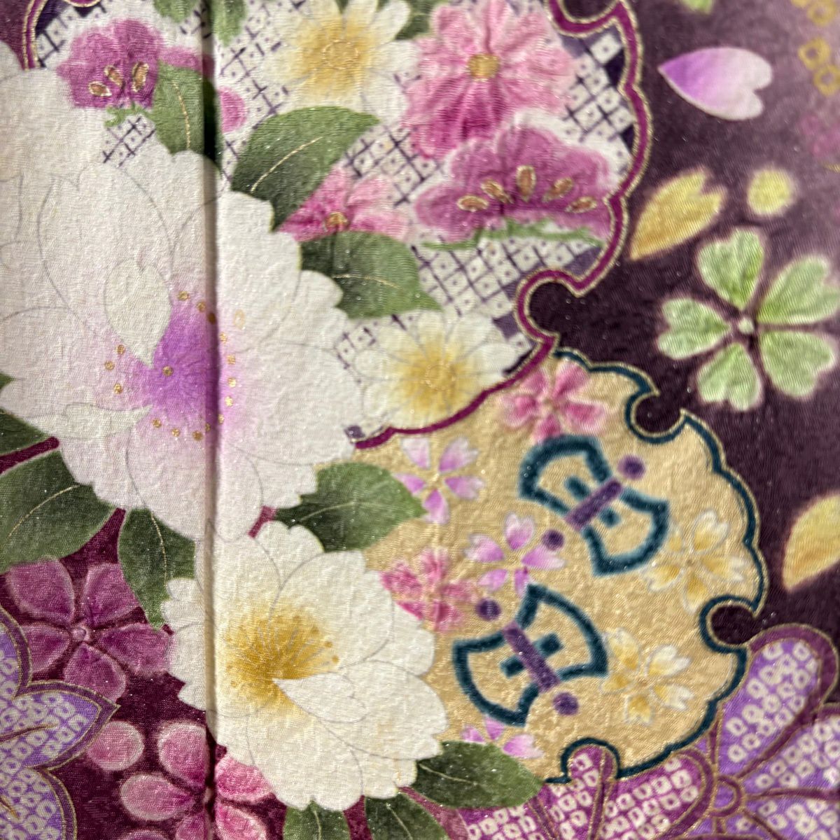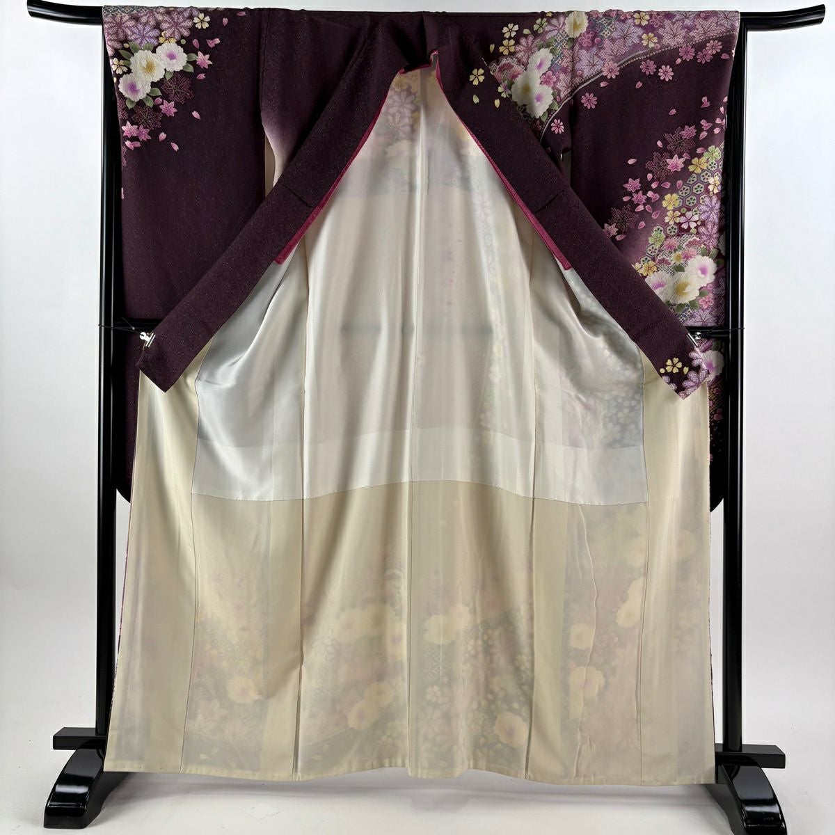 40%OFF 振袖 身丈165cm 裄丈65.5cm M 袷 桜 有職文様 銀通し 金彩 紫 正絹 逸品 K30