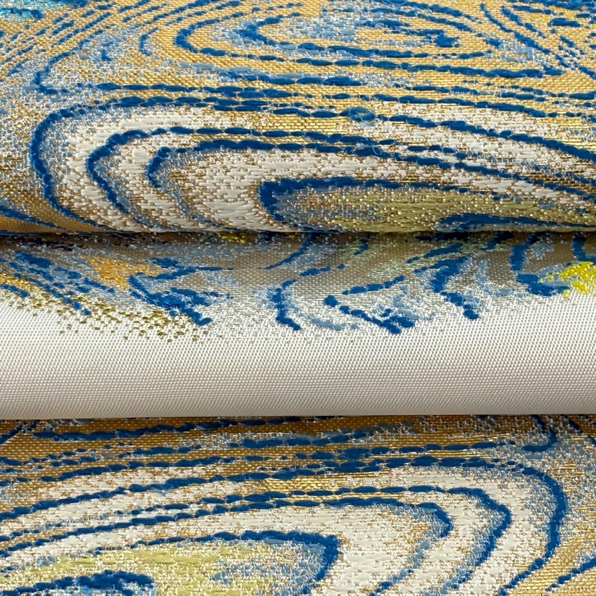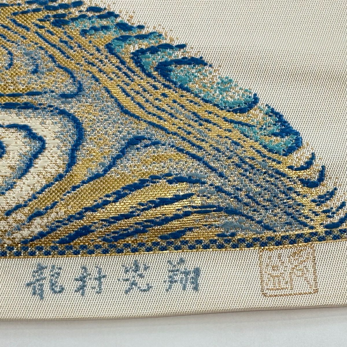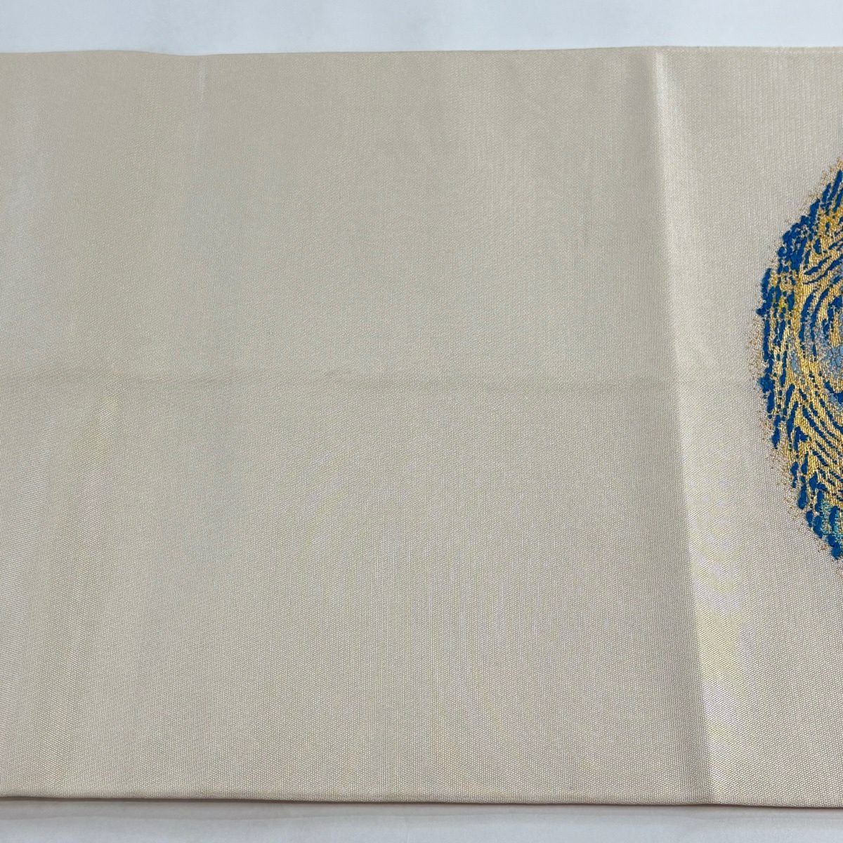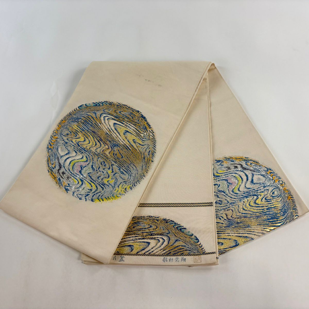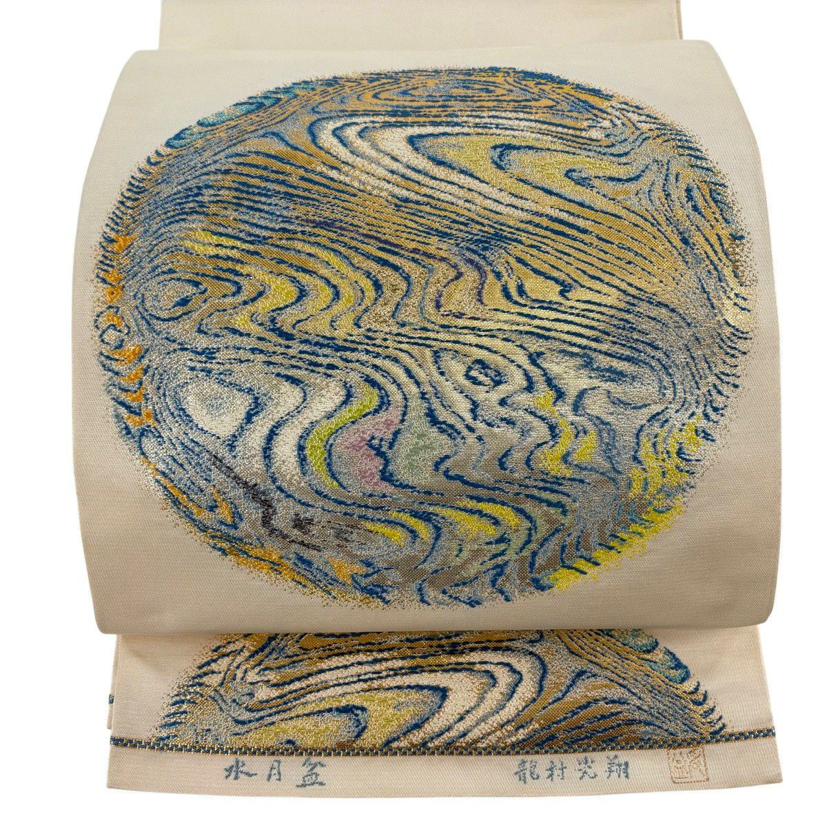 20%OFF 袋帯 逸品 落款あり 龍村光翔 関西仕立て 水月盆 金糸 箔 クリーム お太鼓柄 正絹 K30