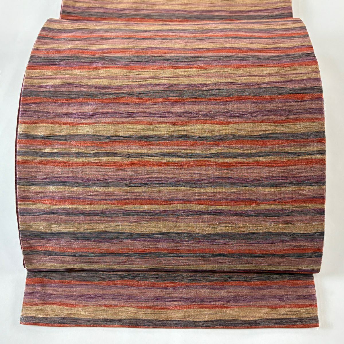 20%OFF 【美品】 袋帯 逸品 証紙あり 小森久 共箱有 縞模様 金銀糸 ラメ糸 紫 六通 正絹 K30