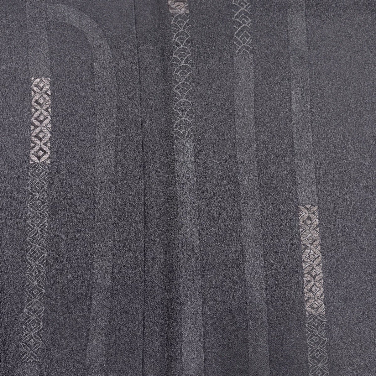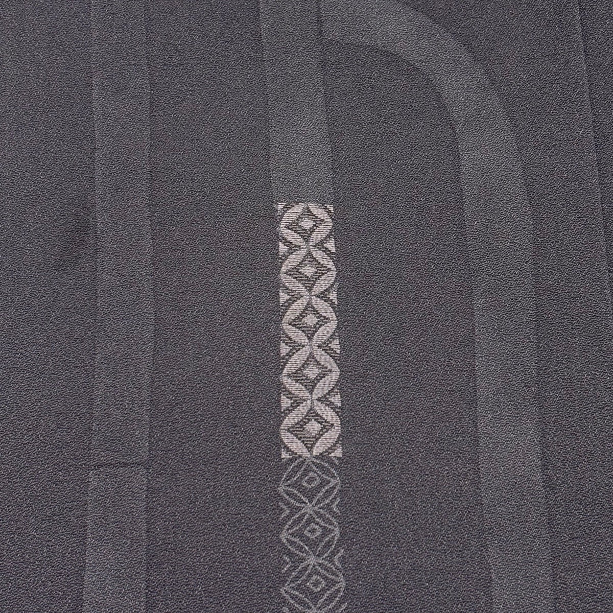 【美品】 お召 身丈169.5cm 裄丈69cm L 袷 やまと 草花 縦縞 黒 正絹 逸品