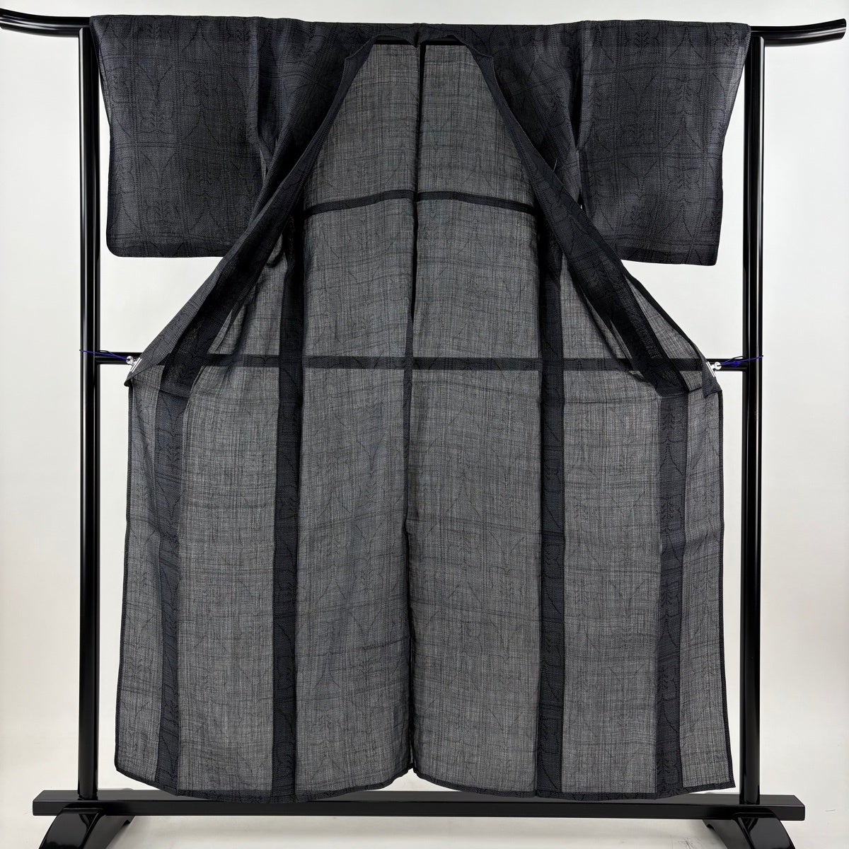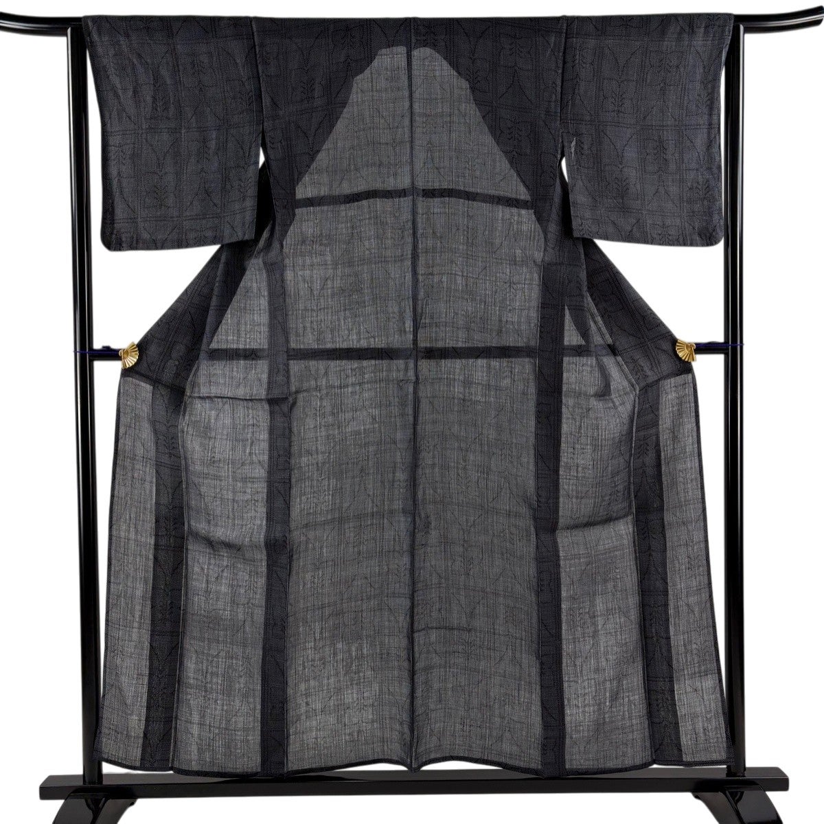 【美品】 紬 身丈156.5cm 裄丈64cm M 薄物 夏紬 バチ衿 蝶 墨色 正絹 逸品