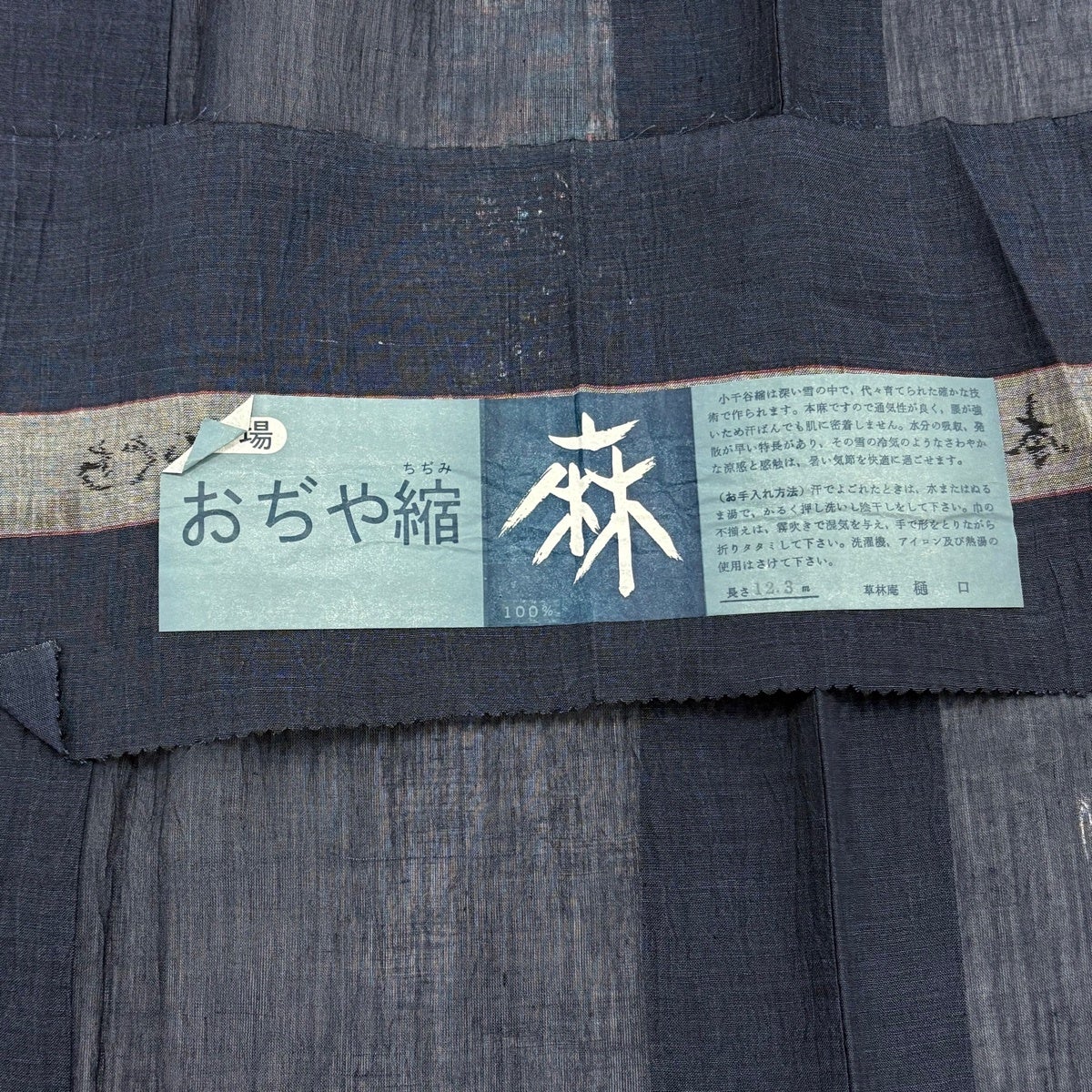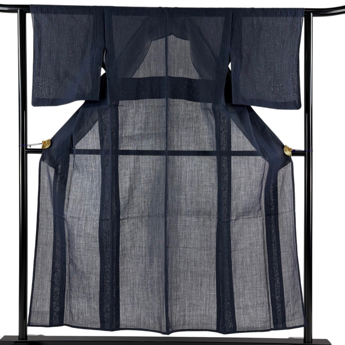 【美品】 お召 身丈167cm 裄丈65cm M 袷 本塩沢 証紙あり 縦縞 紺色 正絹 逸品