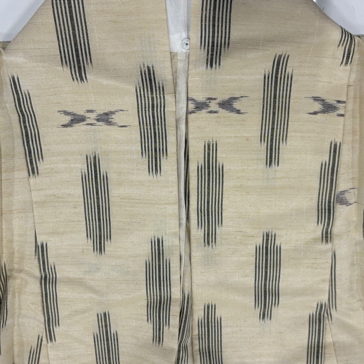 【美品】 紬 身丈154cm 裄丈62cm S 薄物 夏紬 燕 縦縞 ベージュ 正絹 逸品
