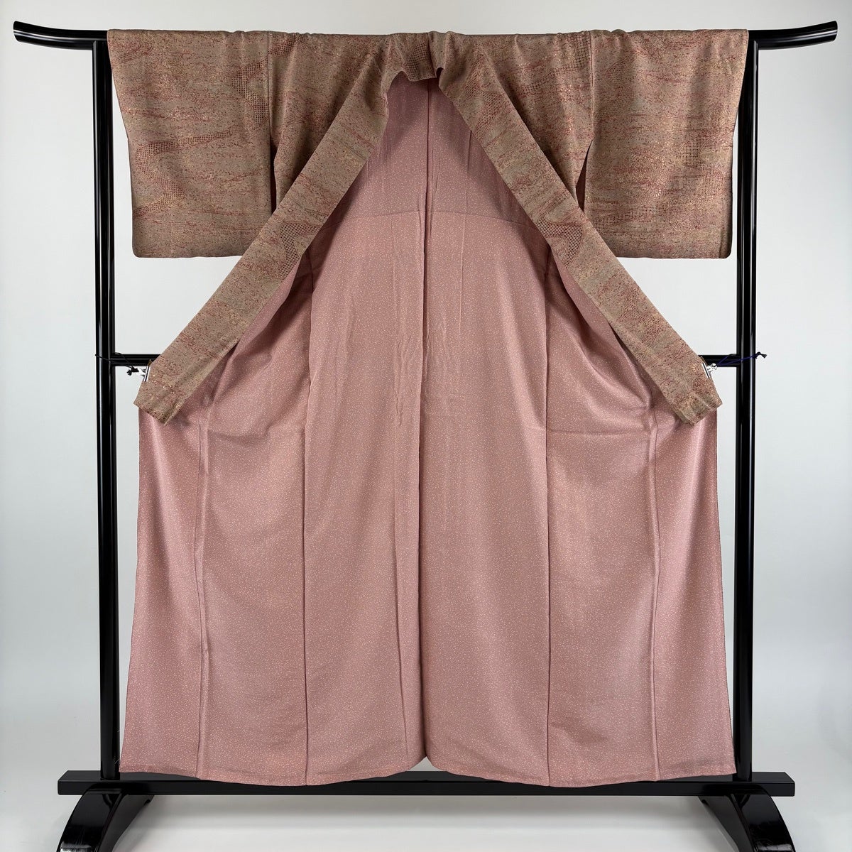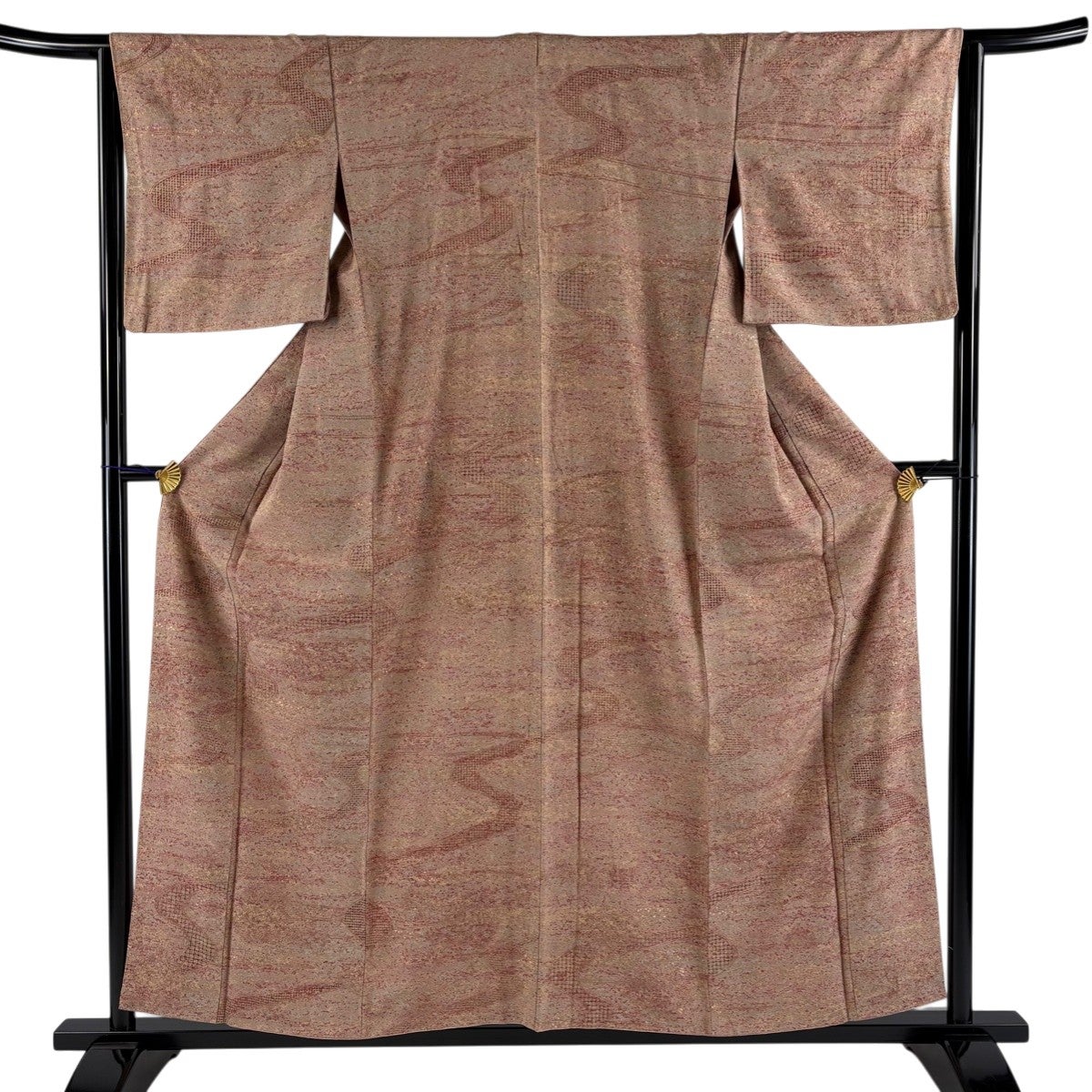 訪問着 身丈158cm 裄丈64.5cm M 薄物 夏紬地 鳥獣戯画 流水 焦茶色 正絹 逸品