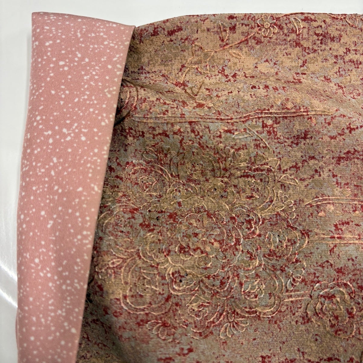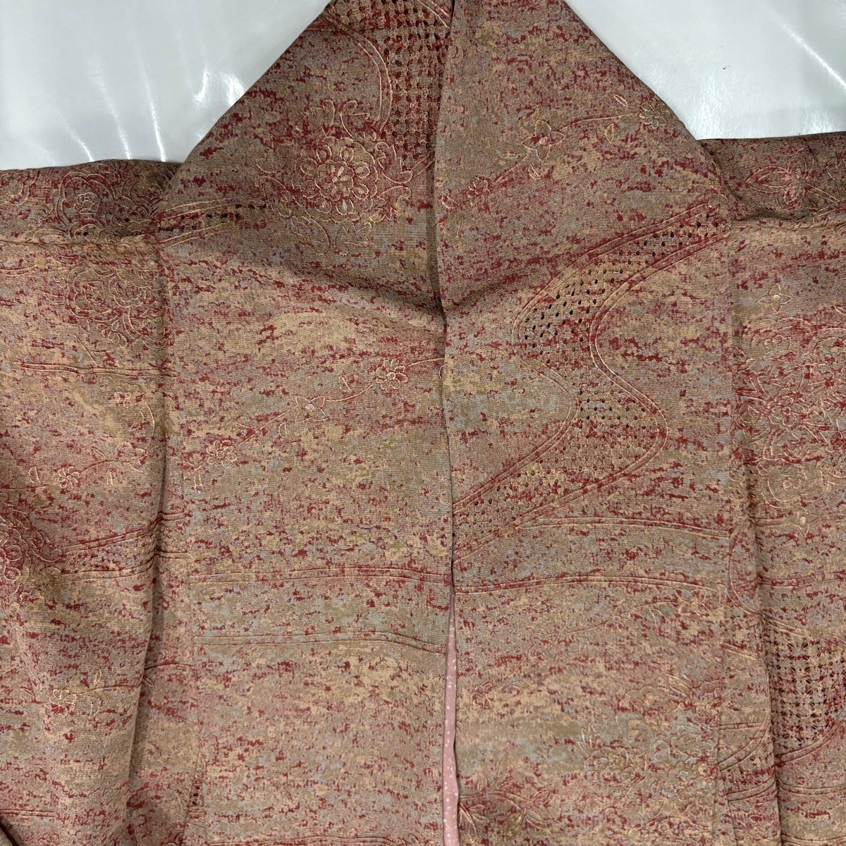 道中着 身丈99cm 裄丈66cm M 和装コート 着物衿 草花 変わり市松 灰紫 正絹 逸品