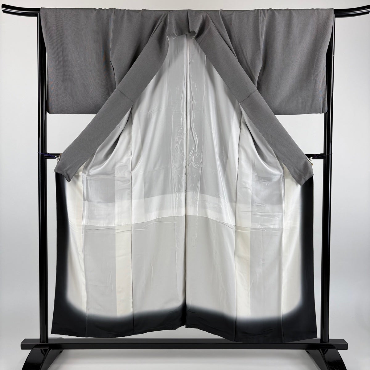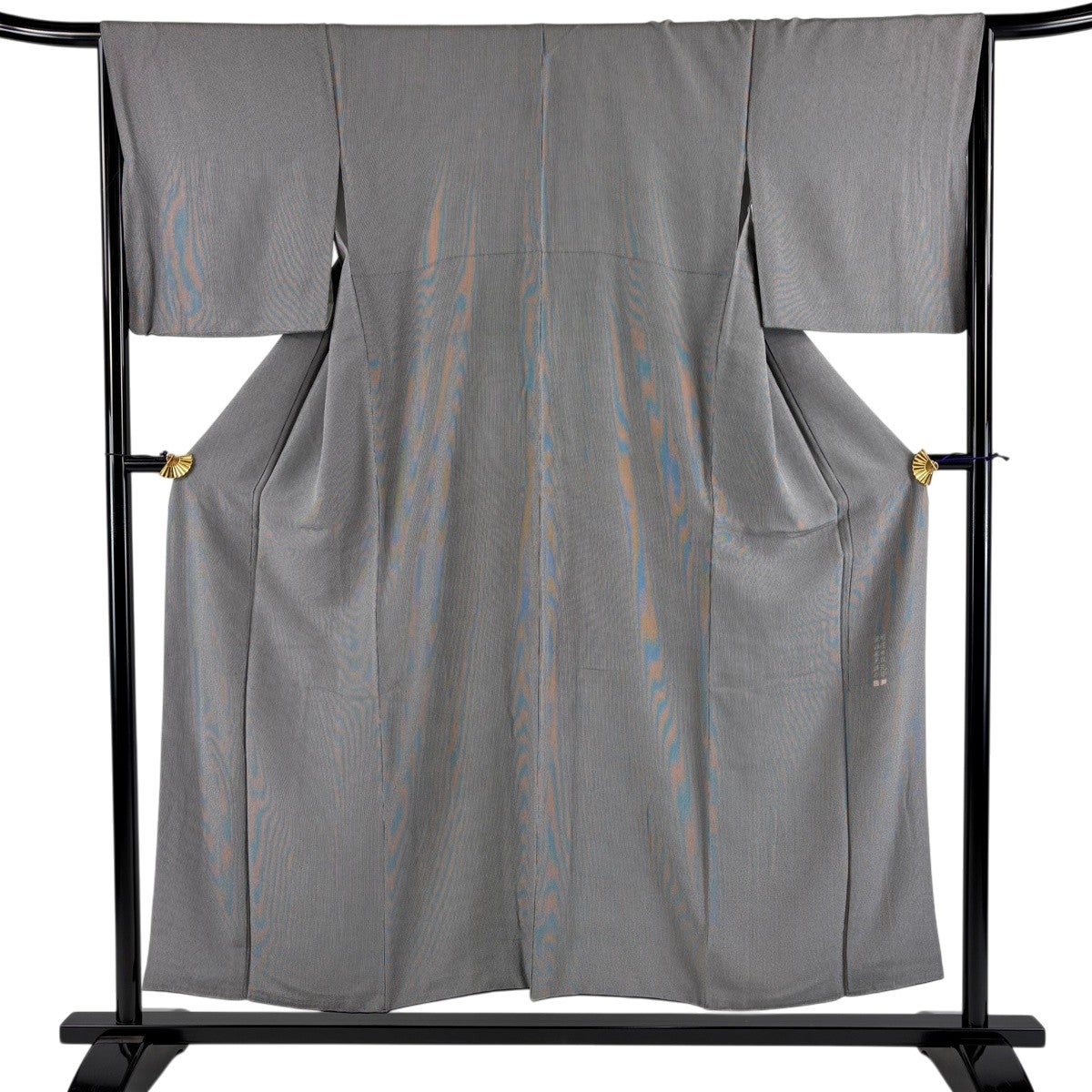 【美品】 訪問着 身丈169cm 裄丈67cm M 袷 波 松 金通し 絞り 灰色 正絹 逸品