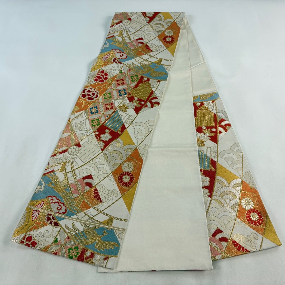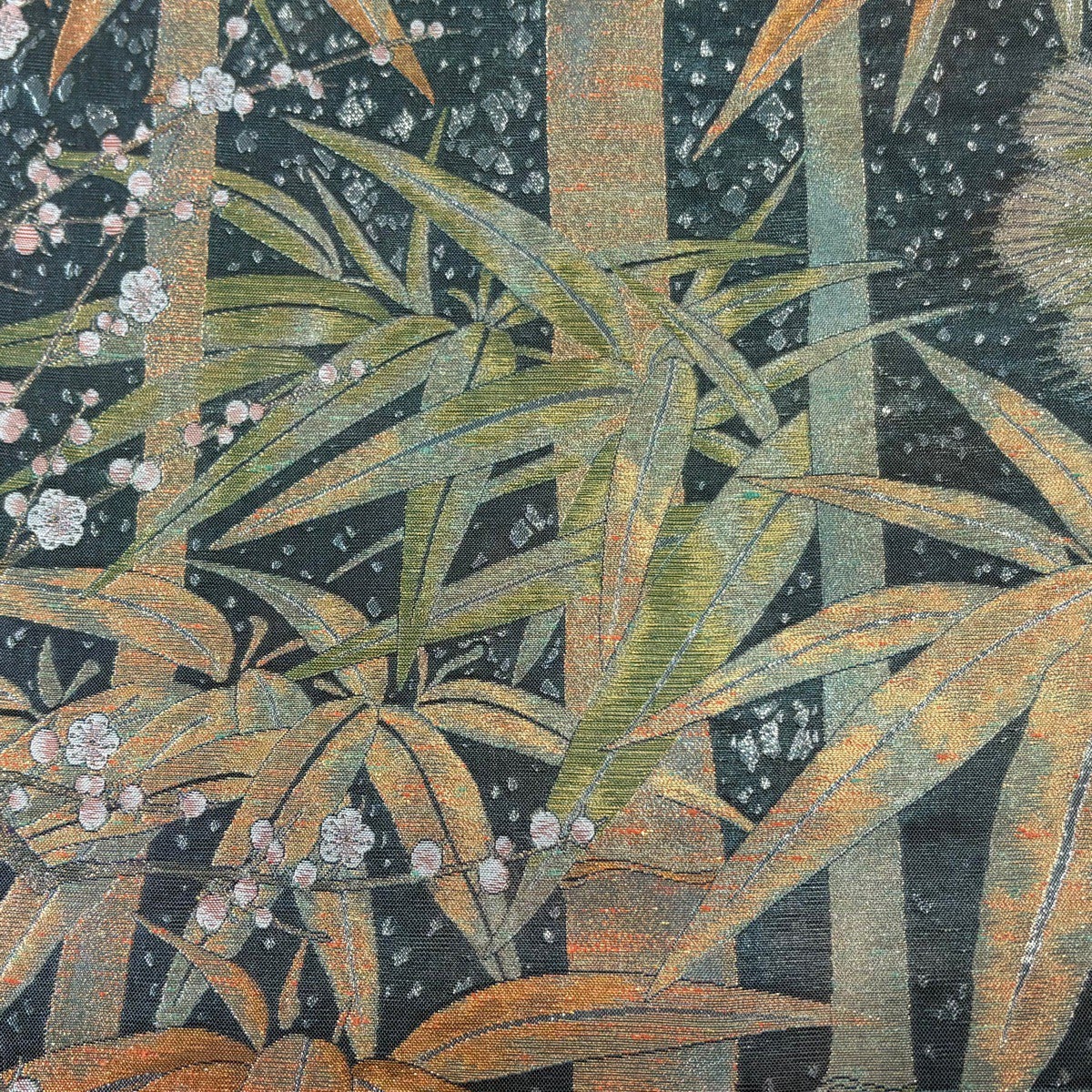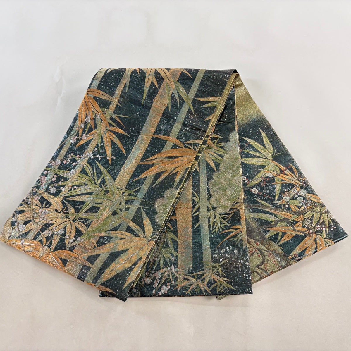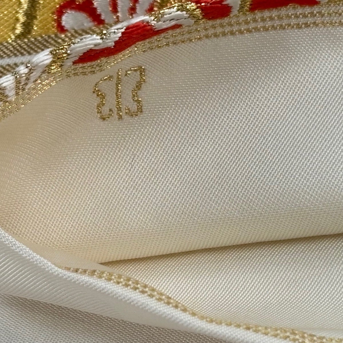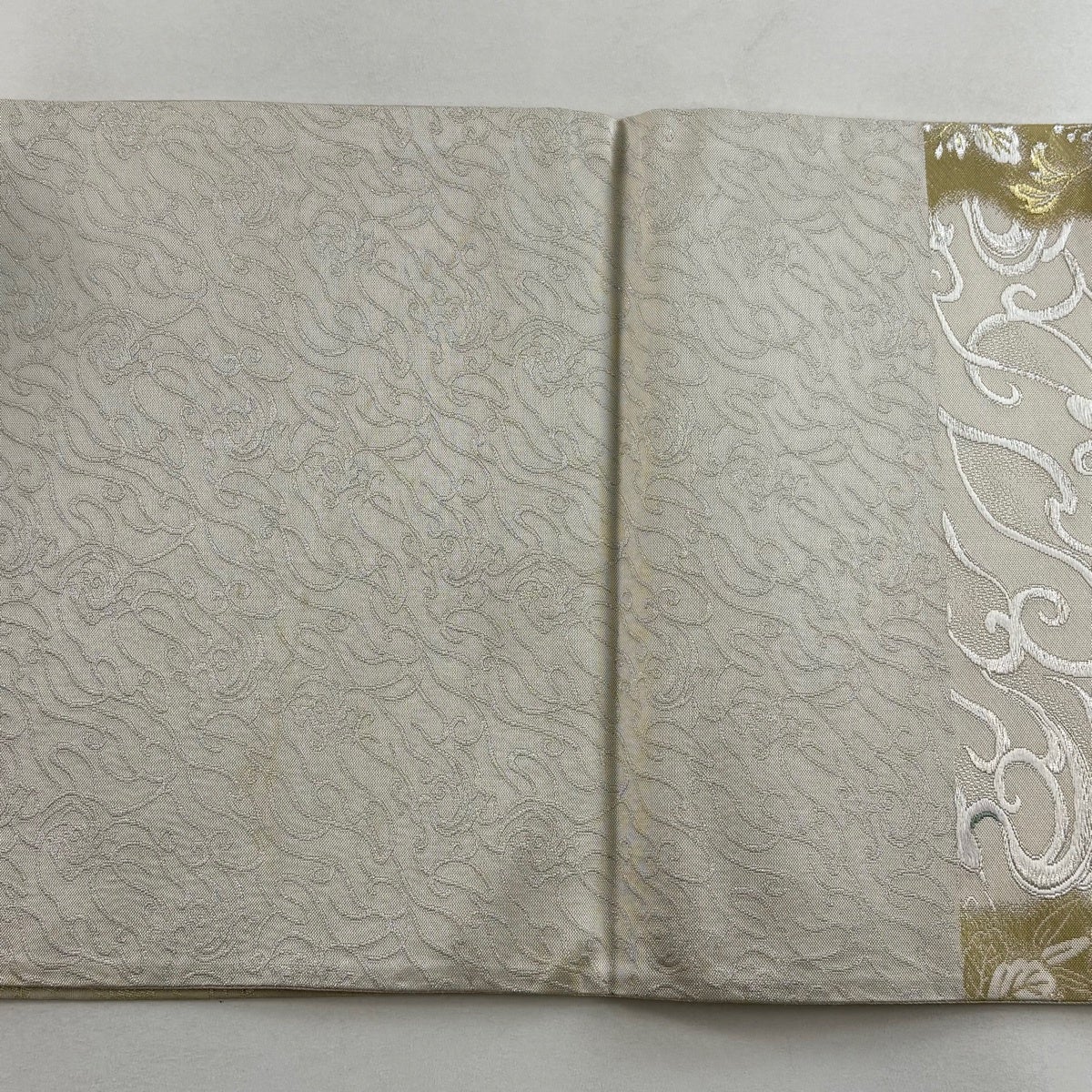 【美品】 袋帯 逸品 河村織物 落款あり 雅宴春秋絵巻 桜 流水 金銀糸 箔 金色 六通 正絹