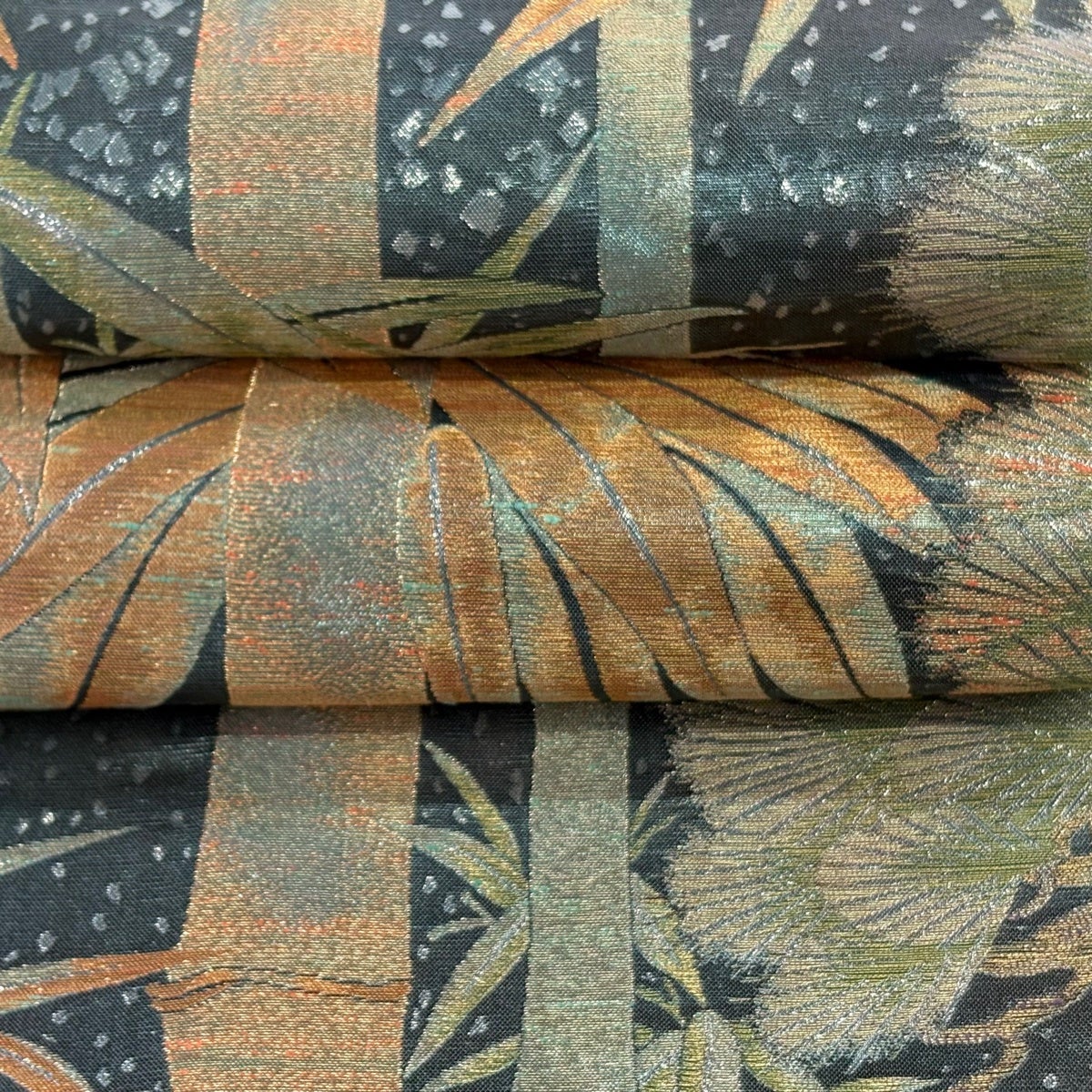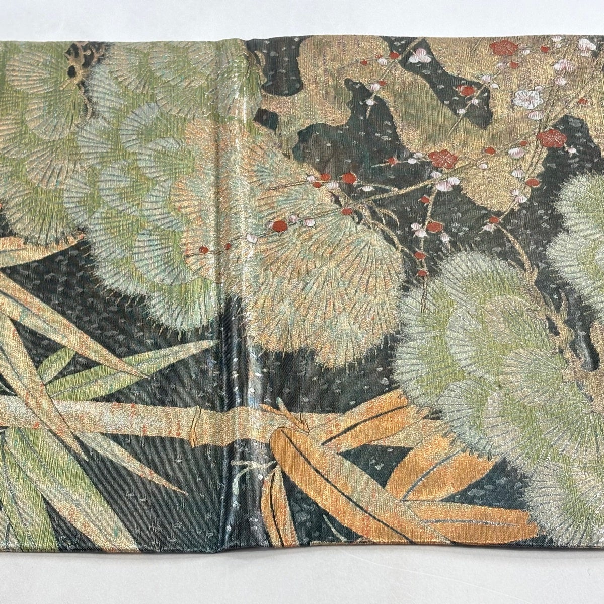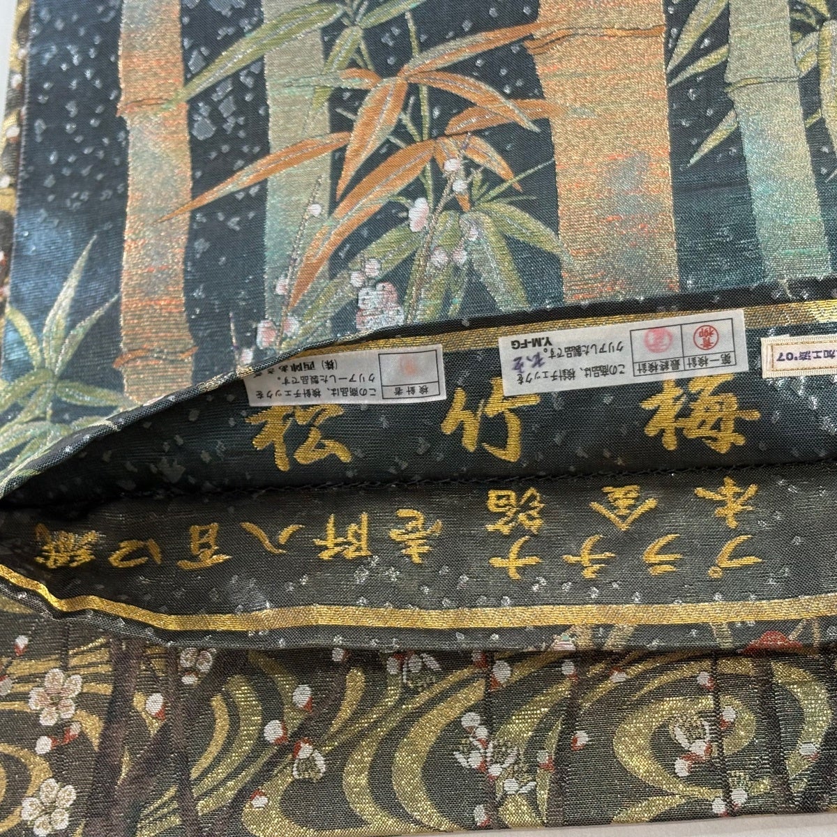 【美品】 袋帯 逸品 北出与三郎 落款あり 本袋 光琳菊流水文錦 箔 金糸 茶色 六通 正絹