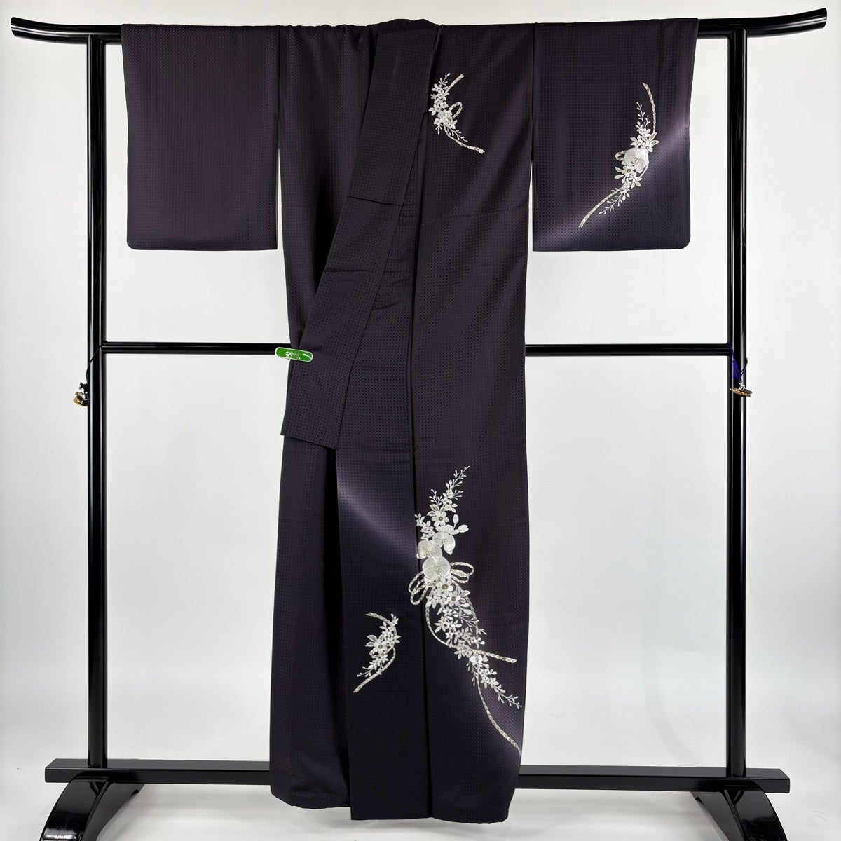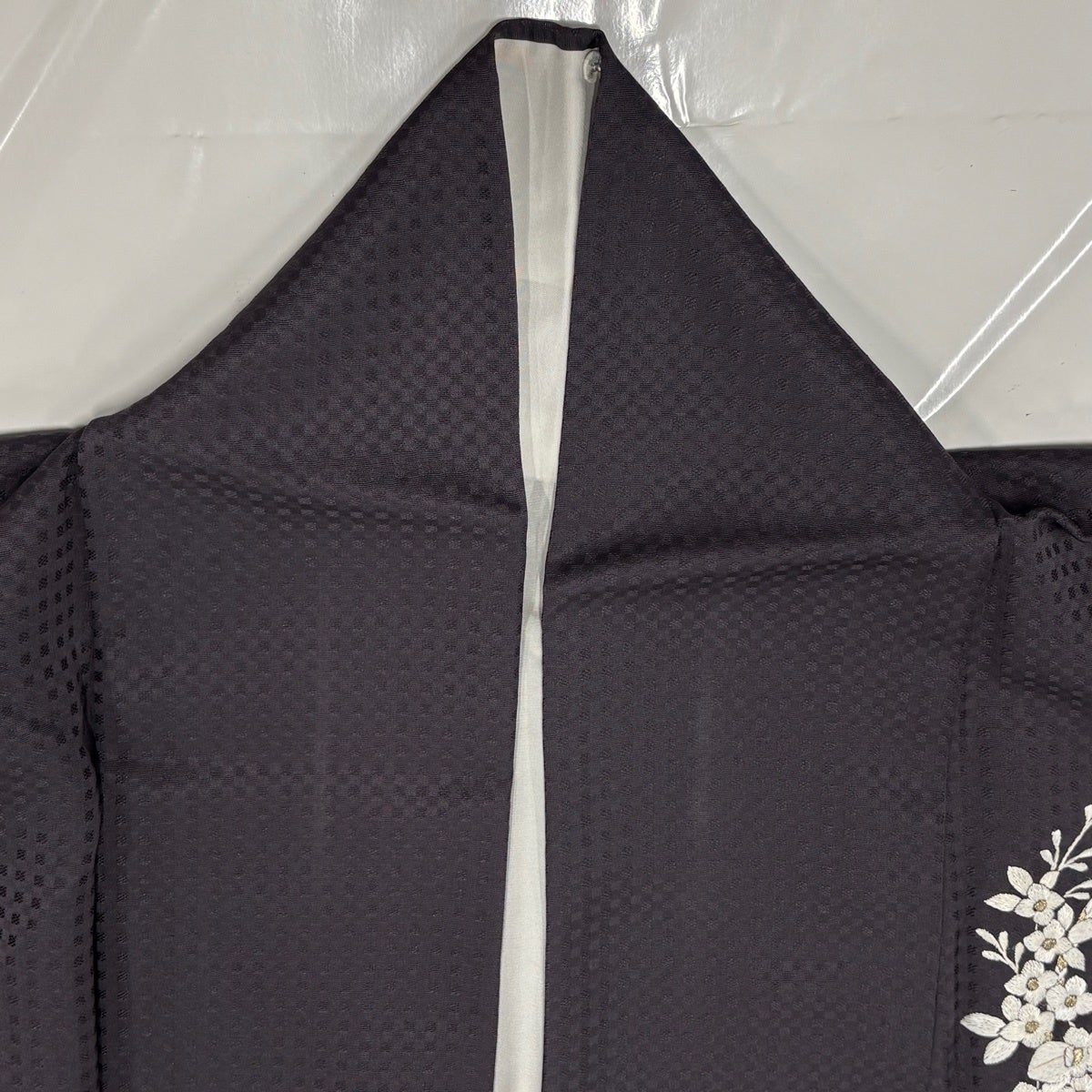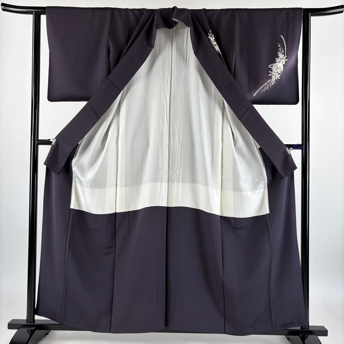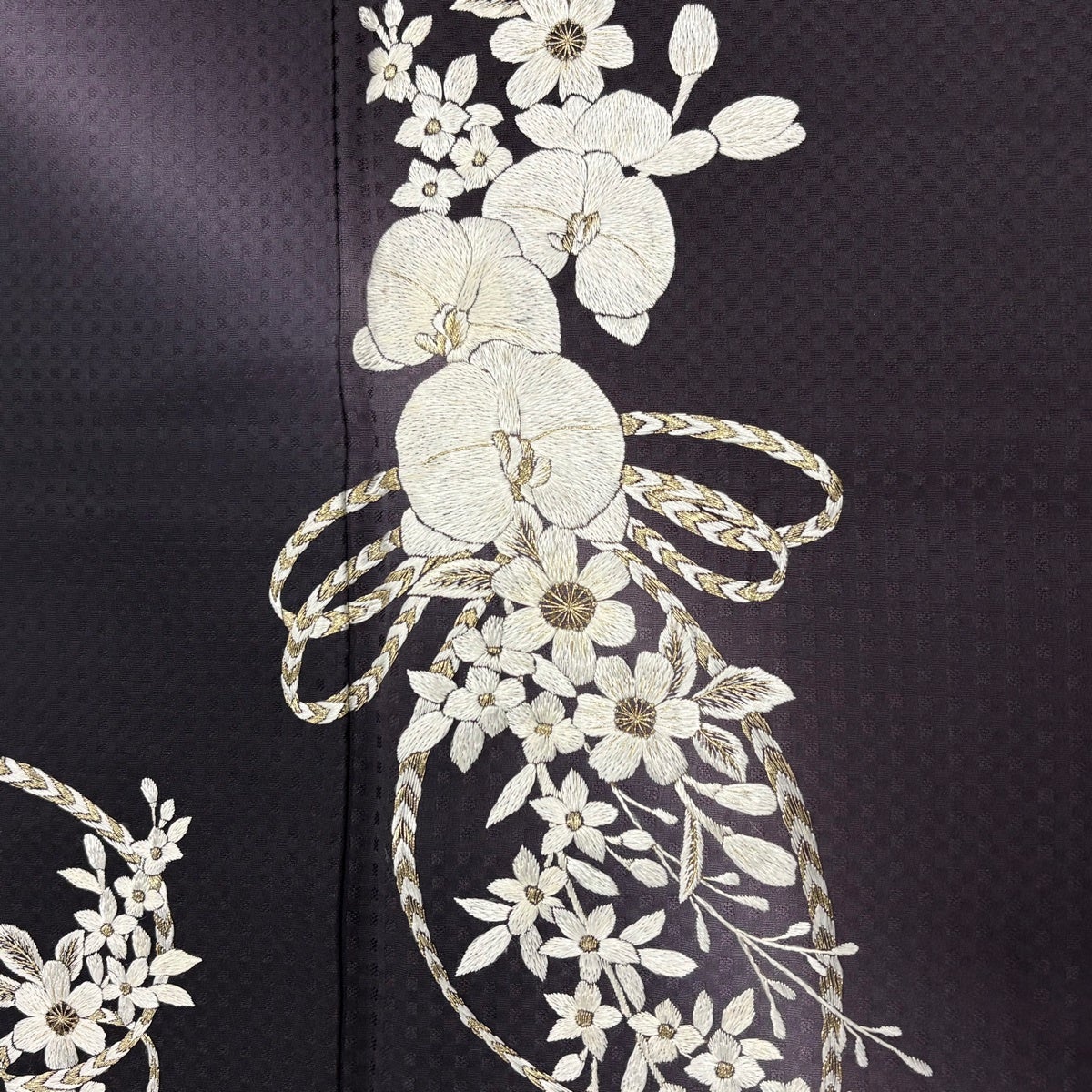 付下げ 身丈157cm 裄丈62cm S 袷 日本刺繍 胡蝶蘭 草花 刺繍 金糸 濃紫 正絹 逸品