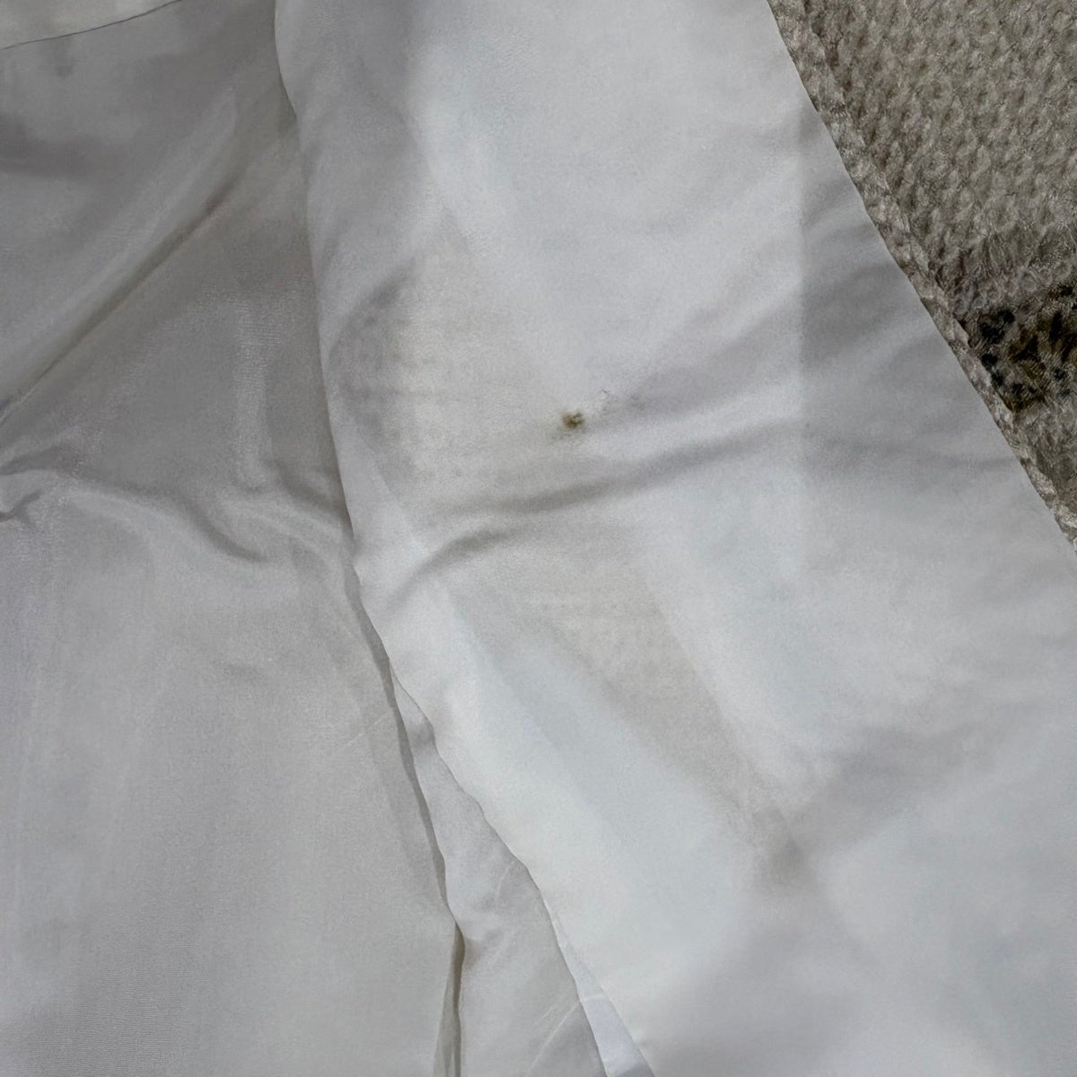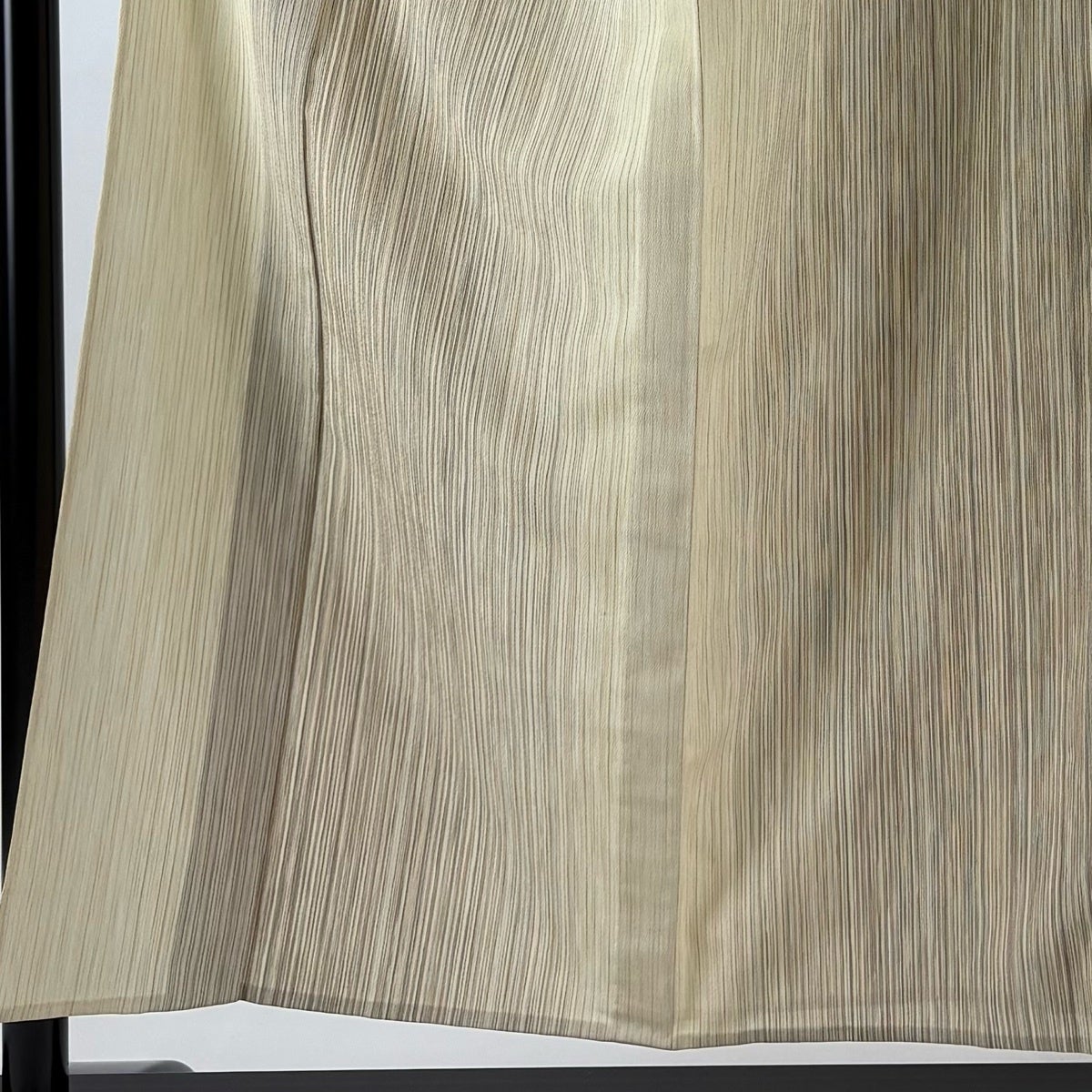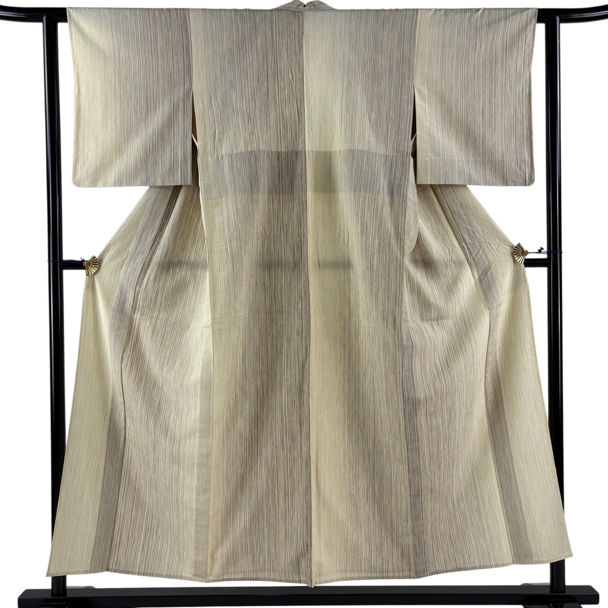 紬 身丈153cm 裄丈60.5cm S 単衣 塩沢物語 証紙あり 縦縞 ベージュ 正絹 逸品