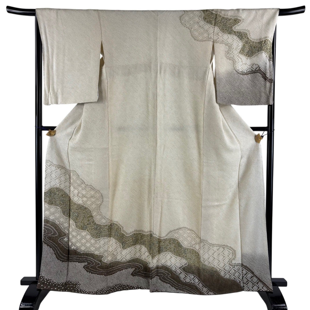 訪問着 身丈156.5cm 裄丈66cm M 袷 落款あり 竹 笹 金彩 ベージュ 正絹 逸品