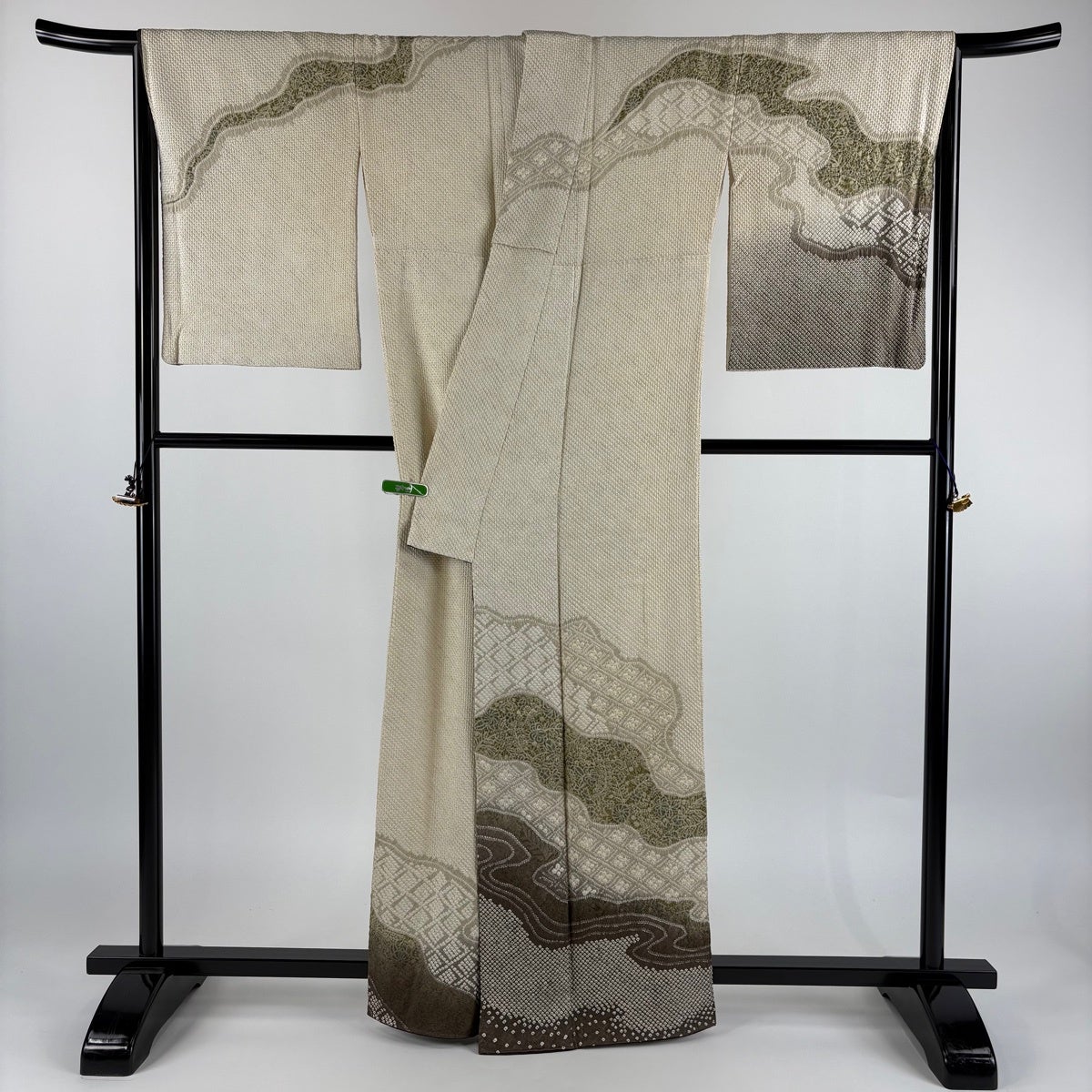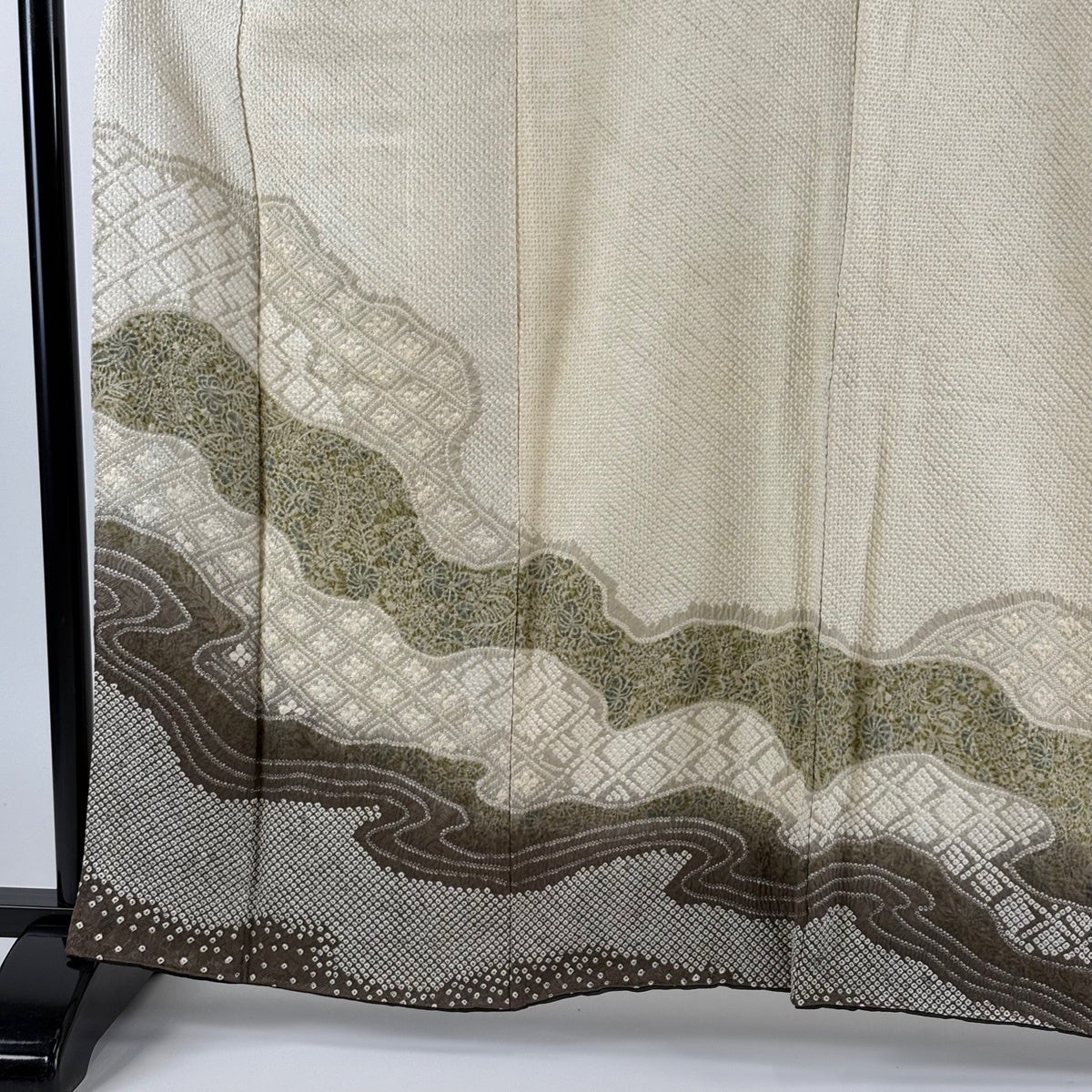 訪問着 身丈162cm 裄丈66.5cm M 袷 やまと 草花 流水 総絞り クリーム 正絹 逸品