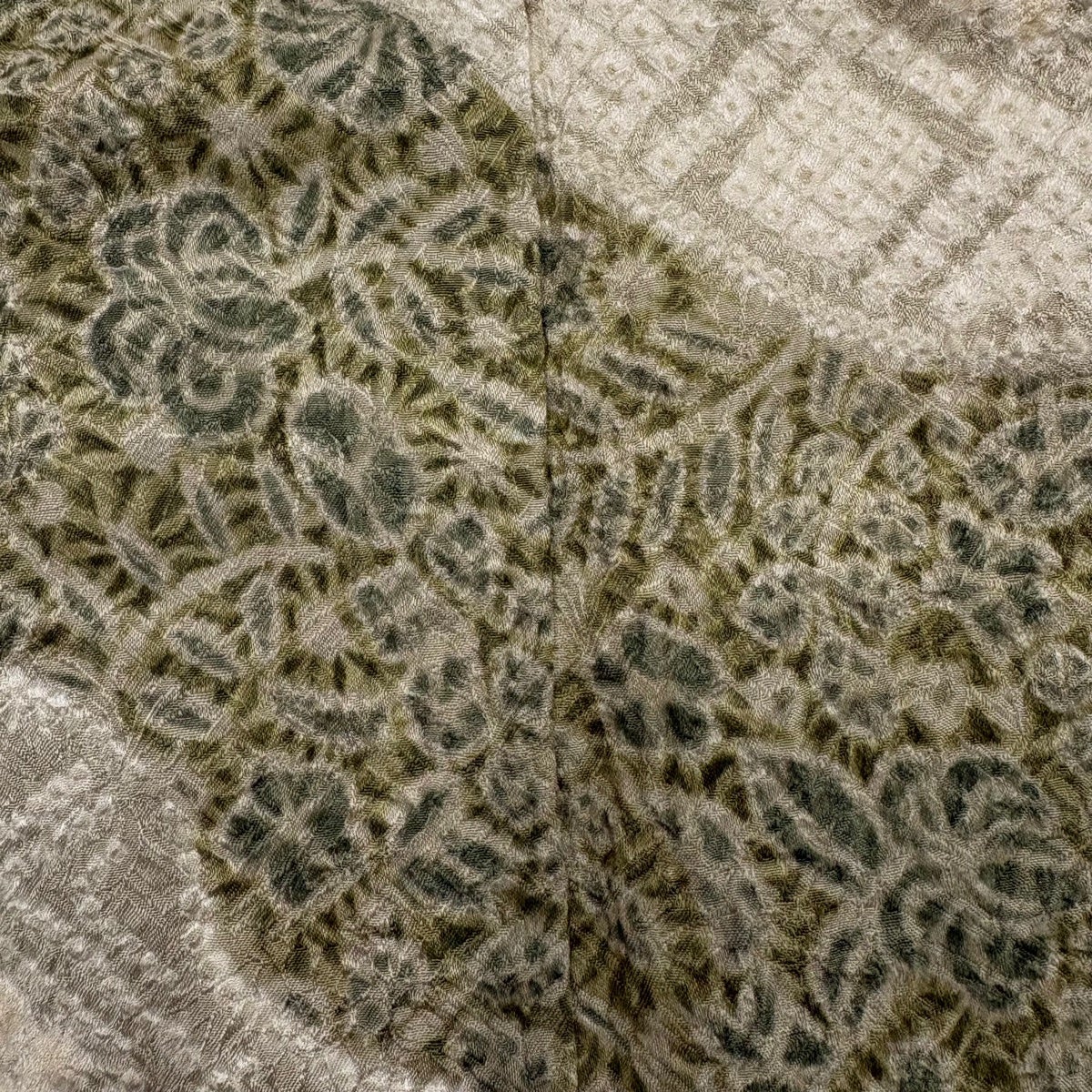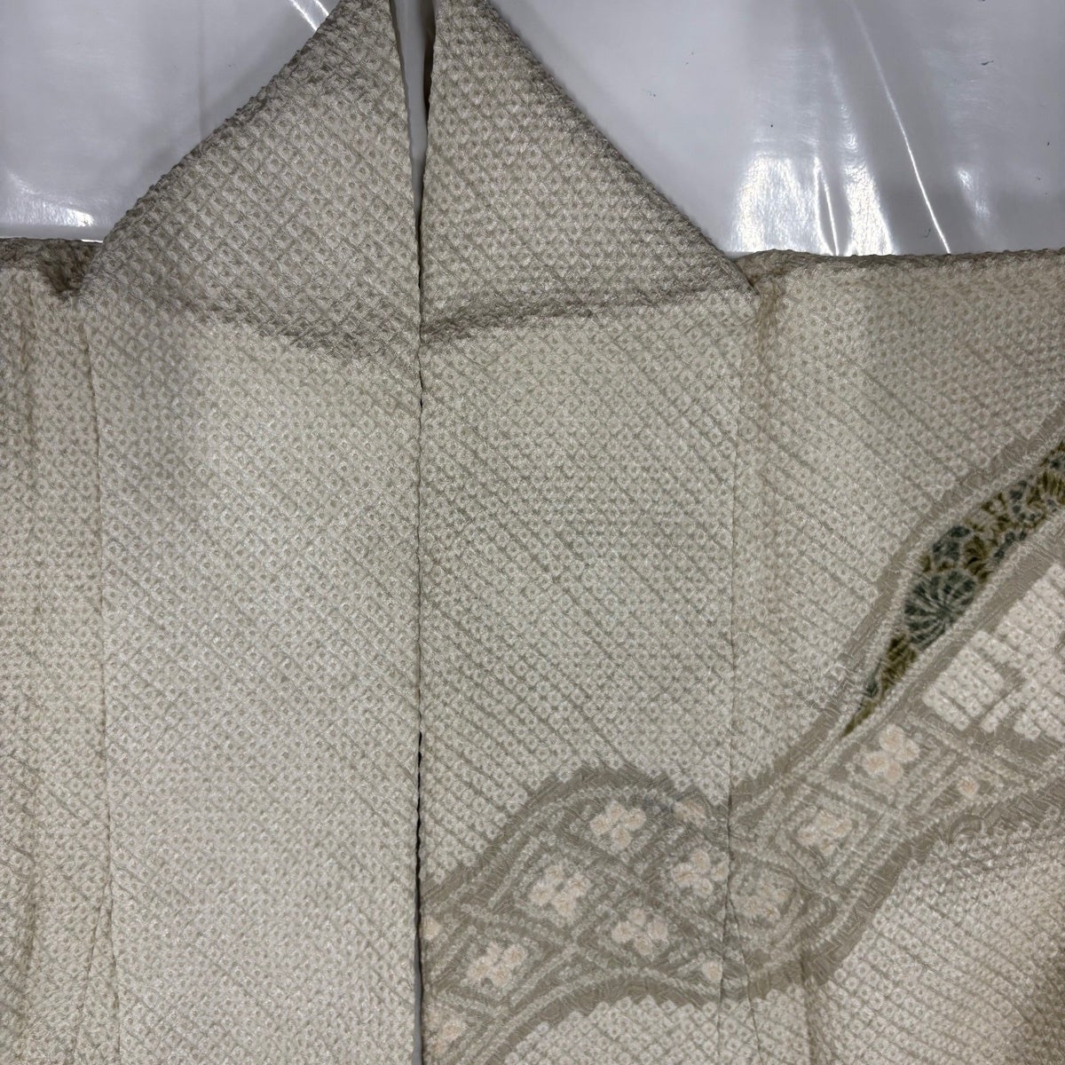 訪問着 身丈169cm 裄丈69cm L 袷 吉乃一廉 落款あり 草花 銀通 絞り 抹茶色 正絹 逸品