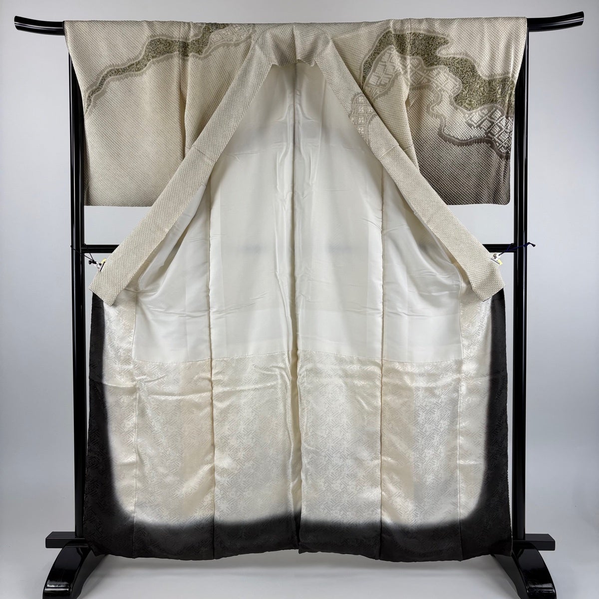 付下げ 身丈159cm 裄丈65cm M 袷 花唐草 染め分け ぼかし 薄茶色 正絹 逸品 一つ紋